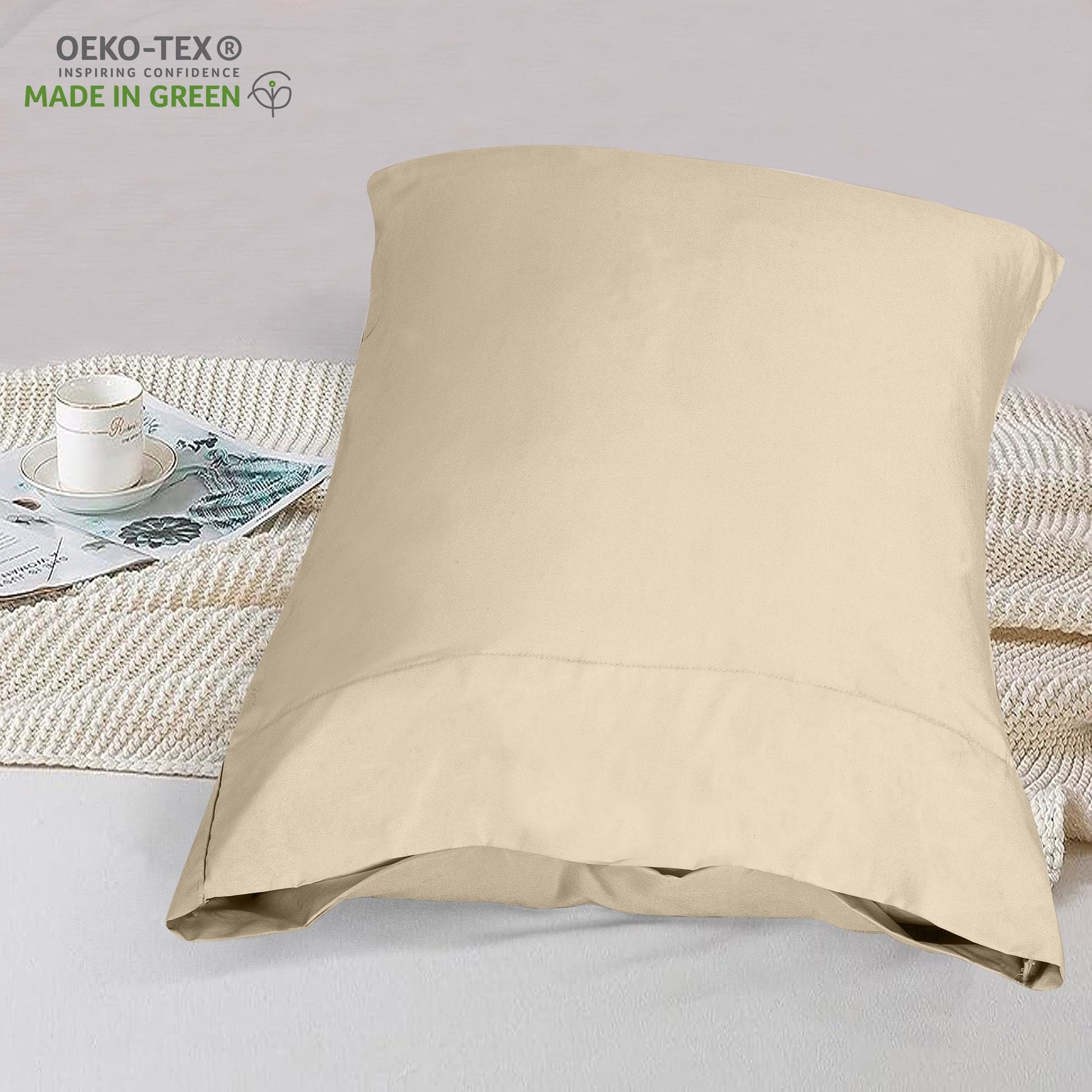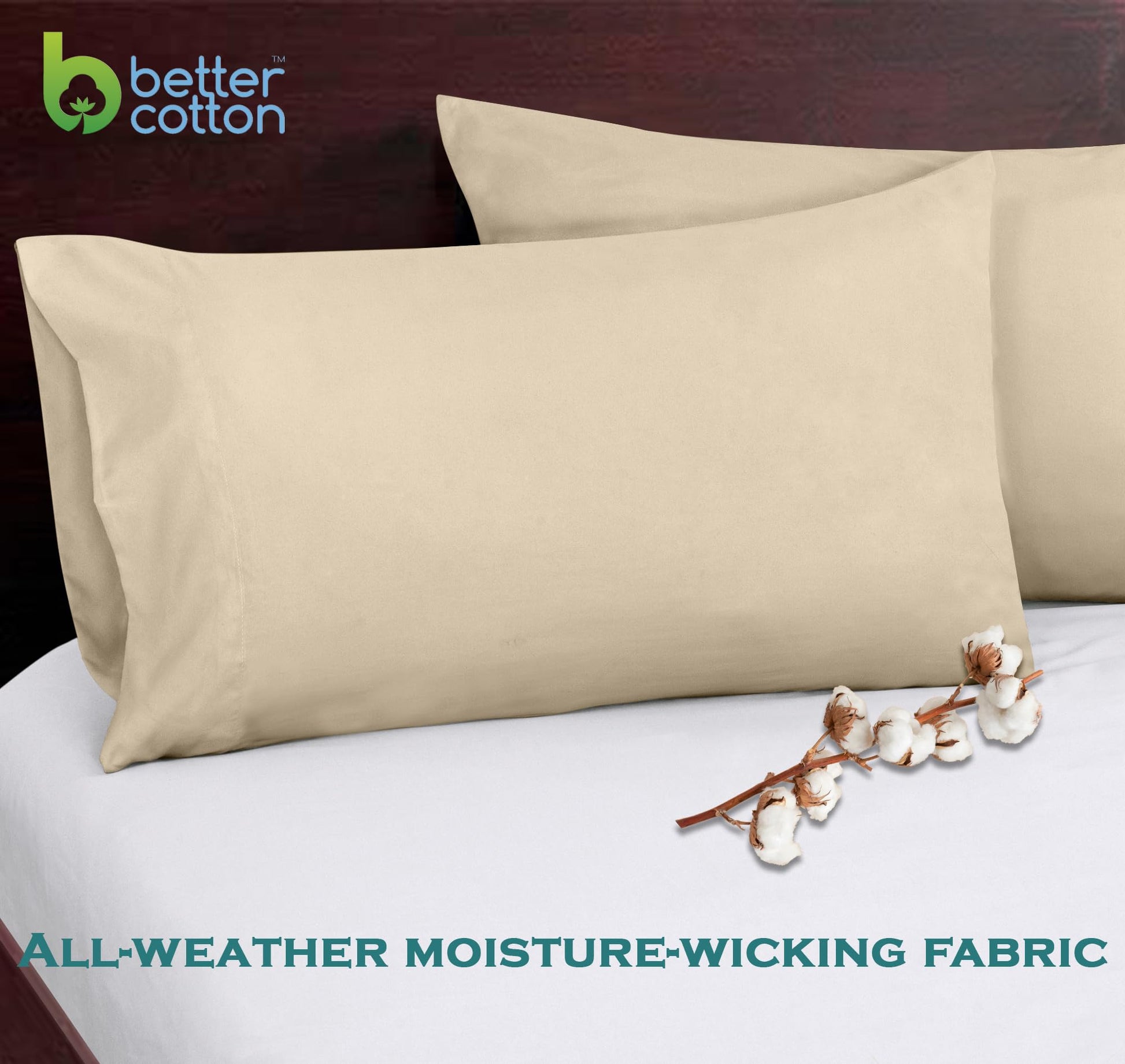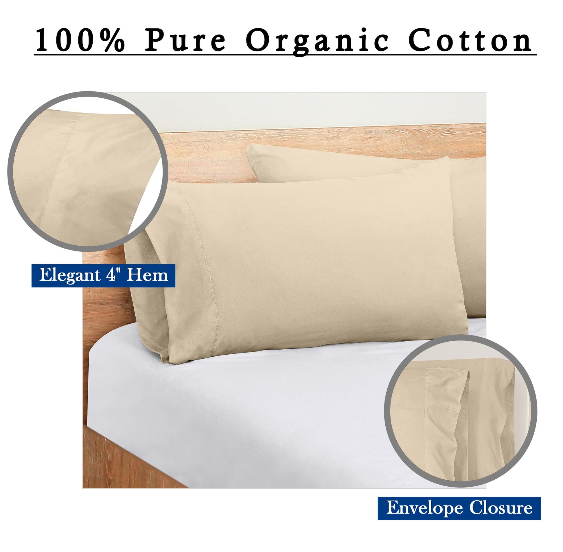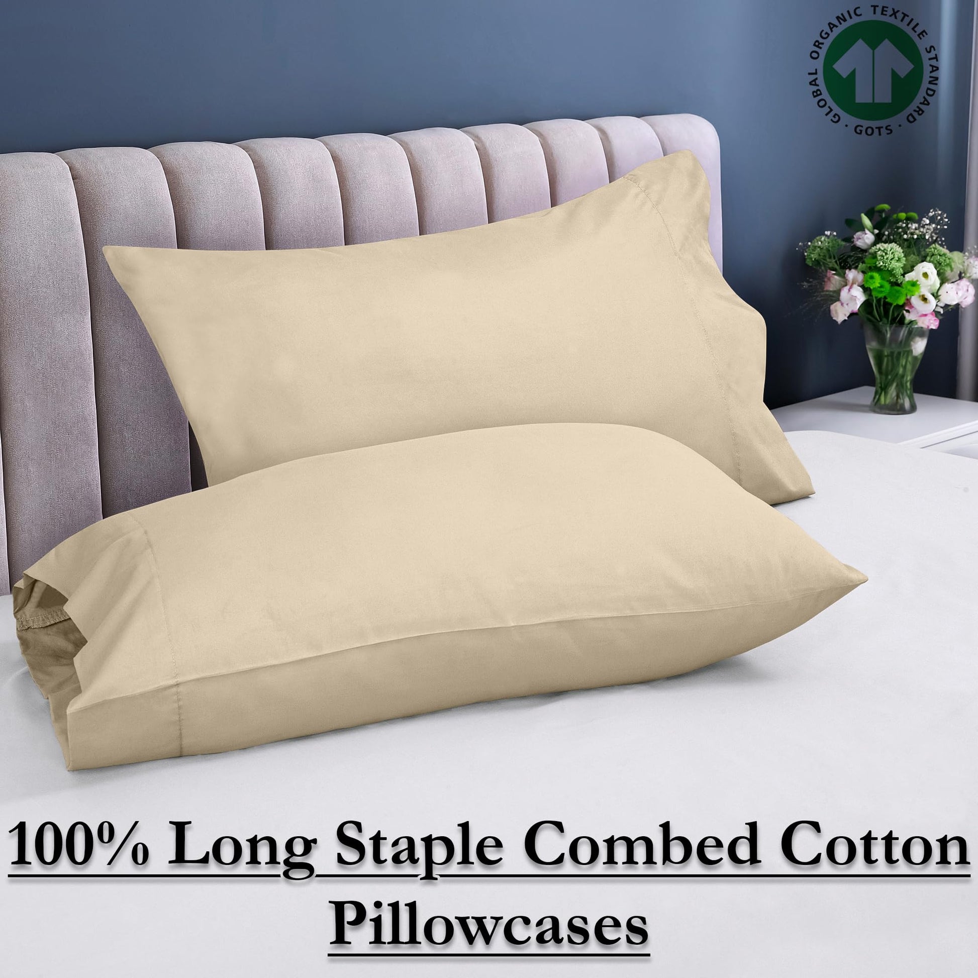 ROYALE LINENS 300 Thread Count 100% Long Staple Combed Cotton Pillowcases Set of 2 - Ultra Soft - Bed Pillow Cover - Breathable, Cool & Crisp Percale Cream Pillow Cases ( Cream)