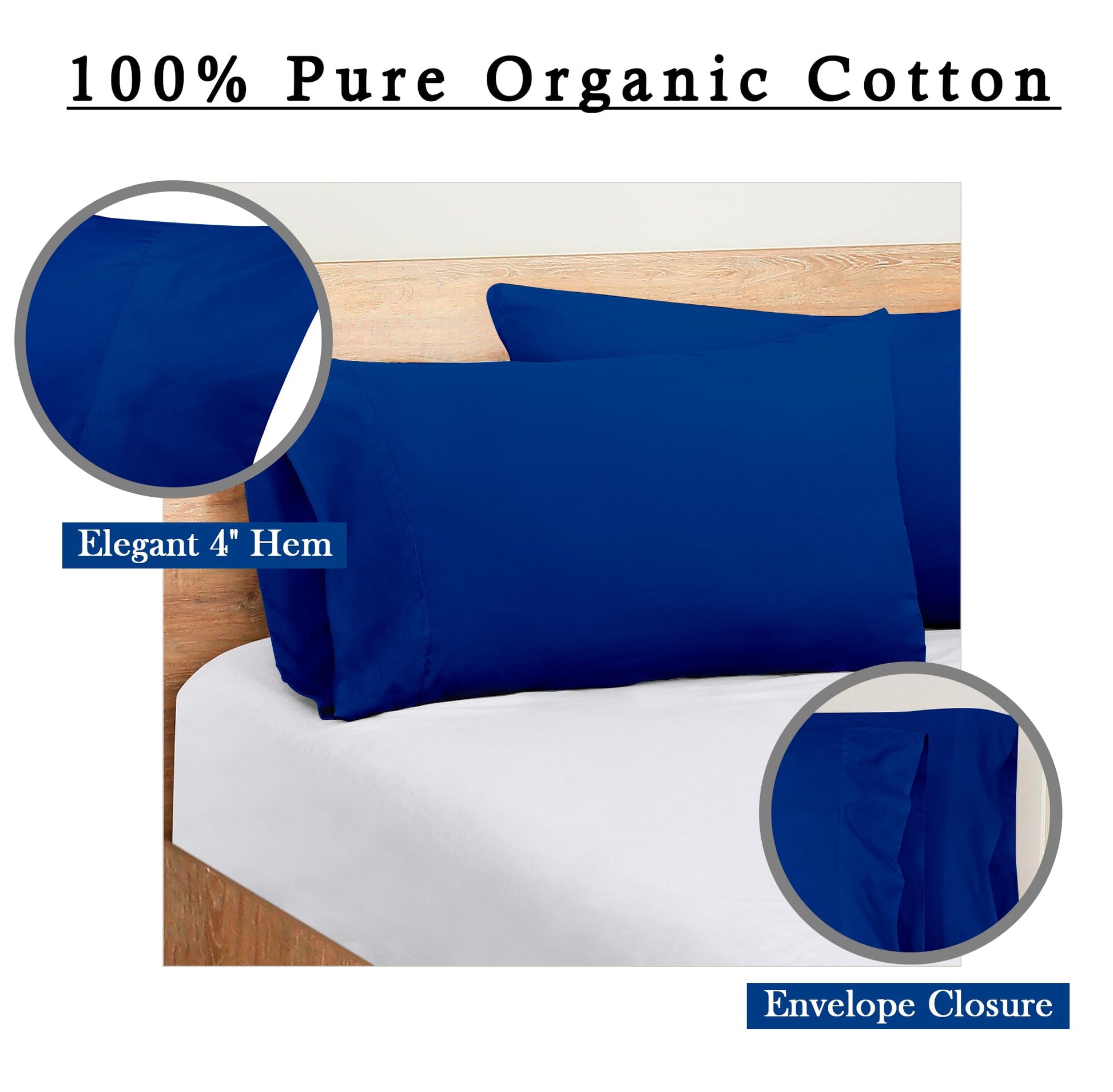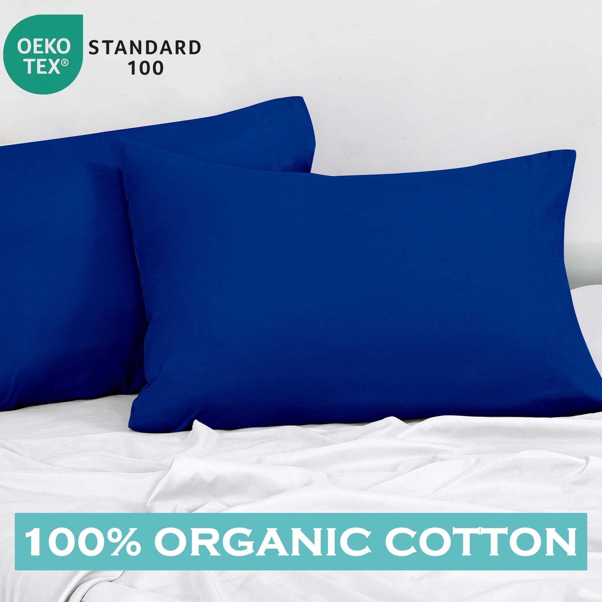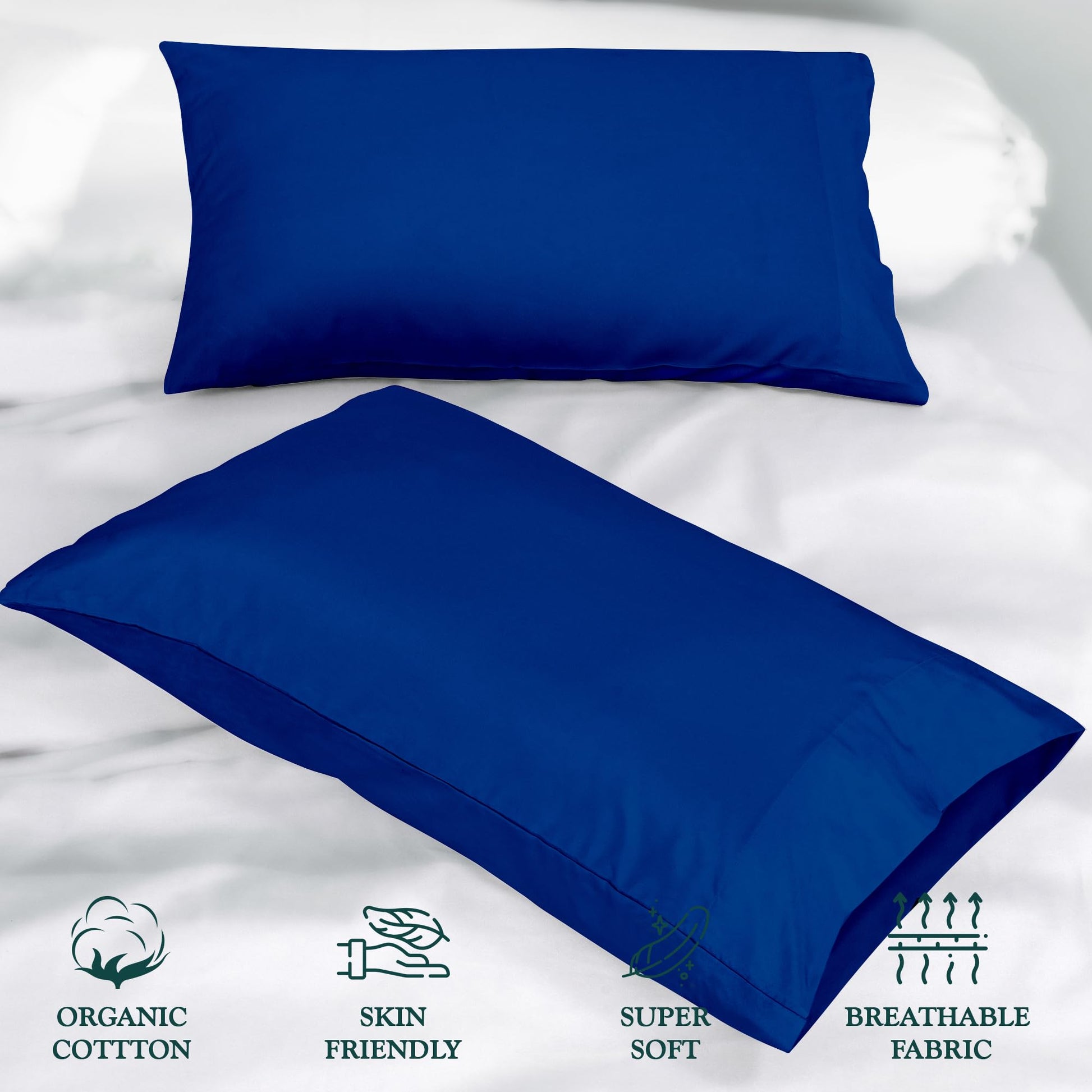 ROYALE LINENS 300 Thread Count 100% Long Staple Combed Cotton Pillowcases Set of 2 - Ultra Soft - Bed Pillow Cover - - Breathable, Cool & Crisp Percale Pillow Cases (Dark Navy)