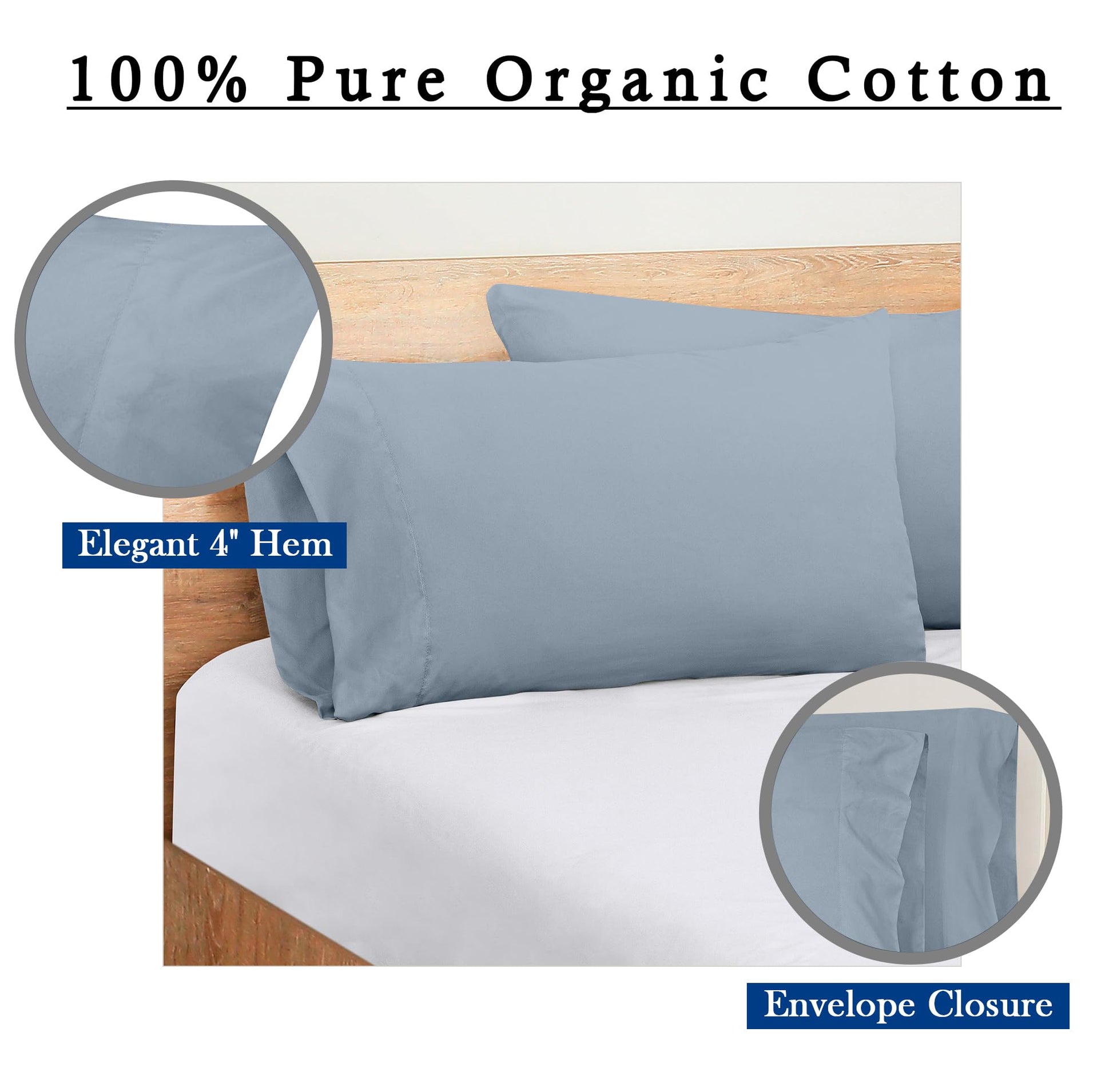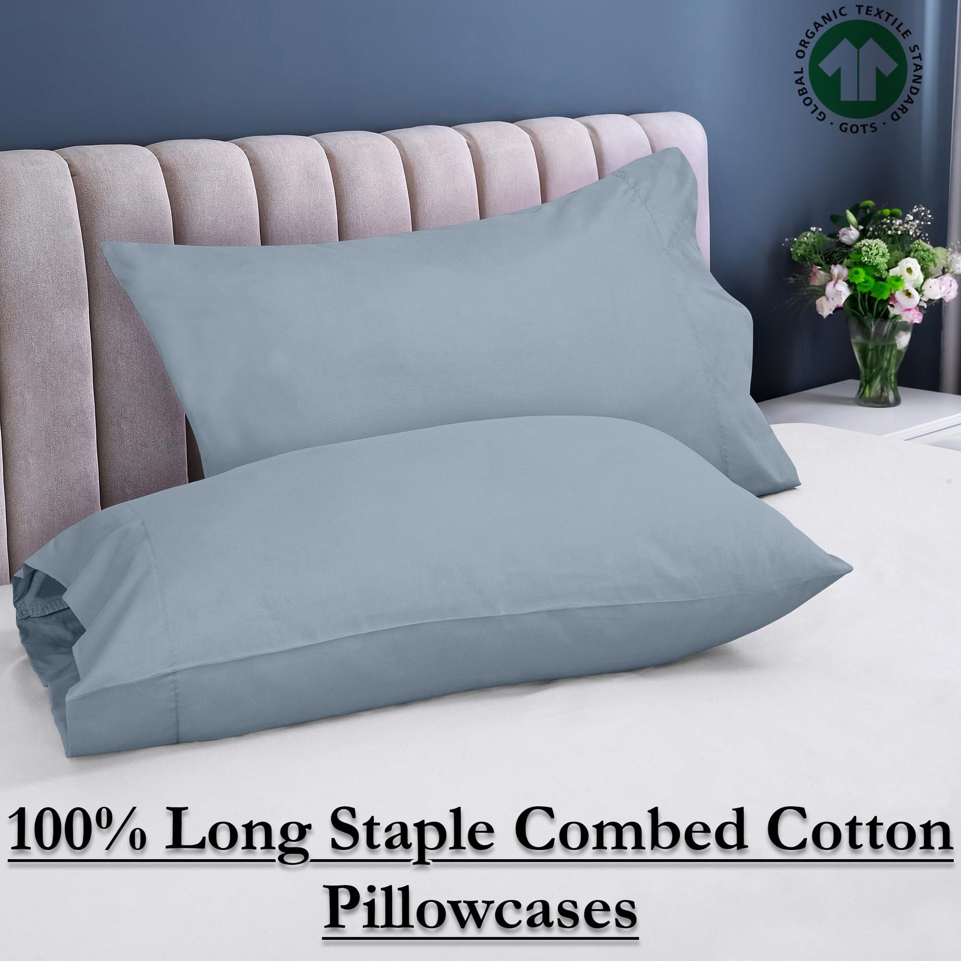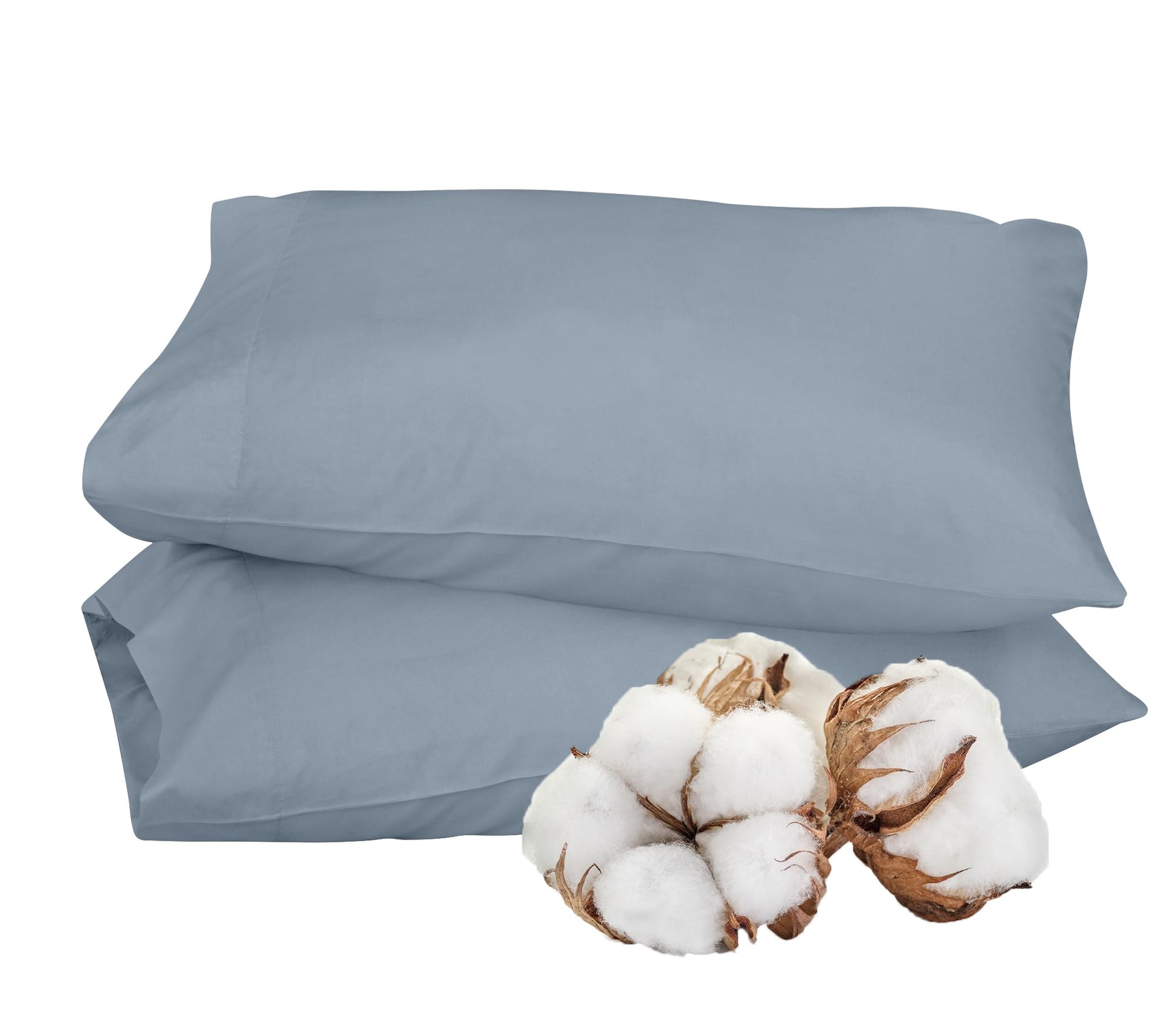 ROYALE LINENS 300 Thread Count 100% Long Staple Combed Cotton Pillowcases Set of 2 - Ultra Soft - Bed Pillow Cover - Breathable, Cool & Crisp Percale Pillow Cases ( Lake Blue)