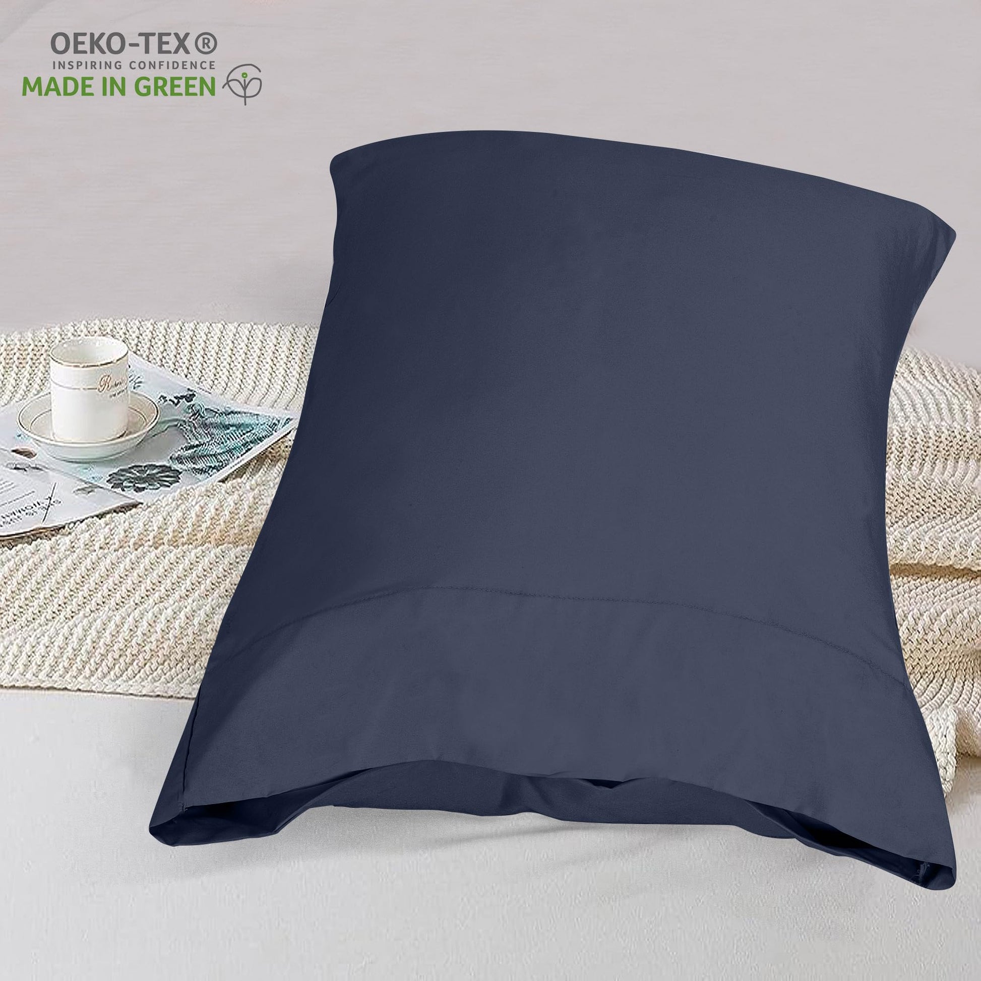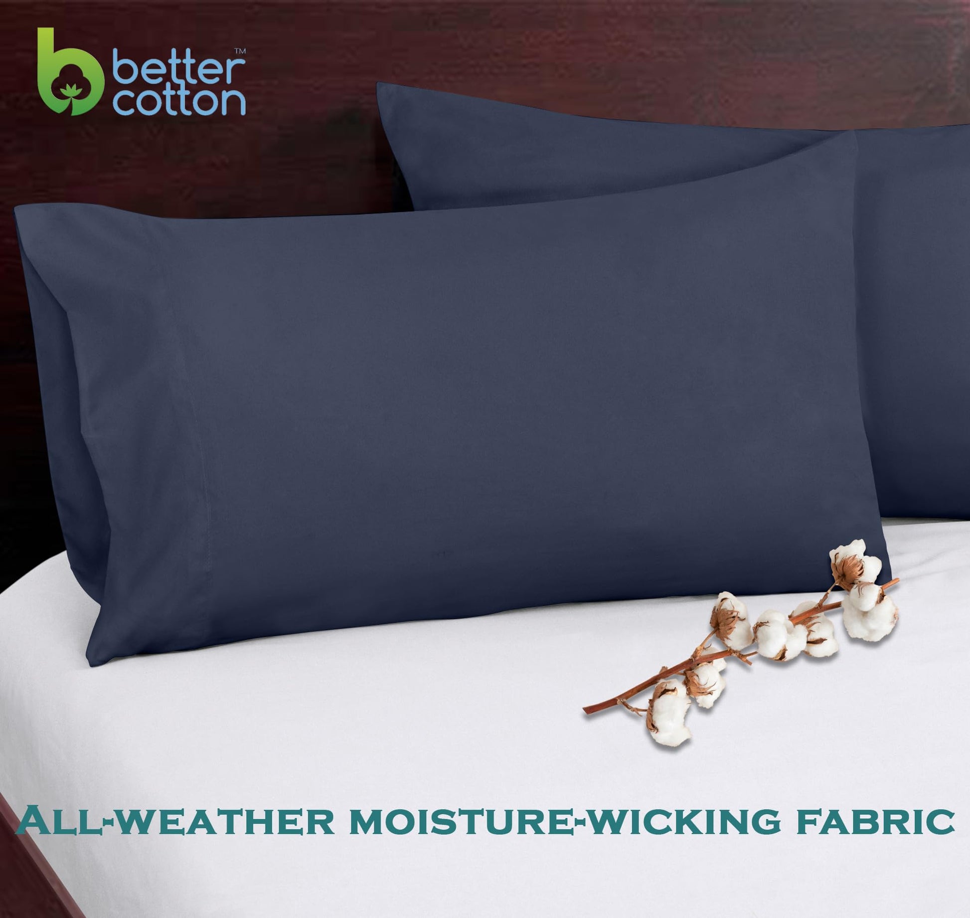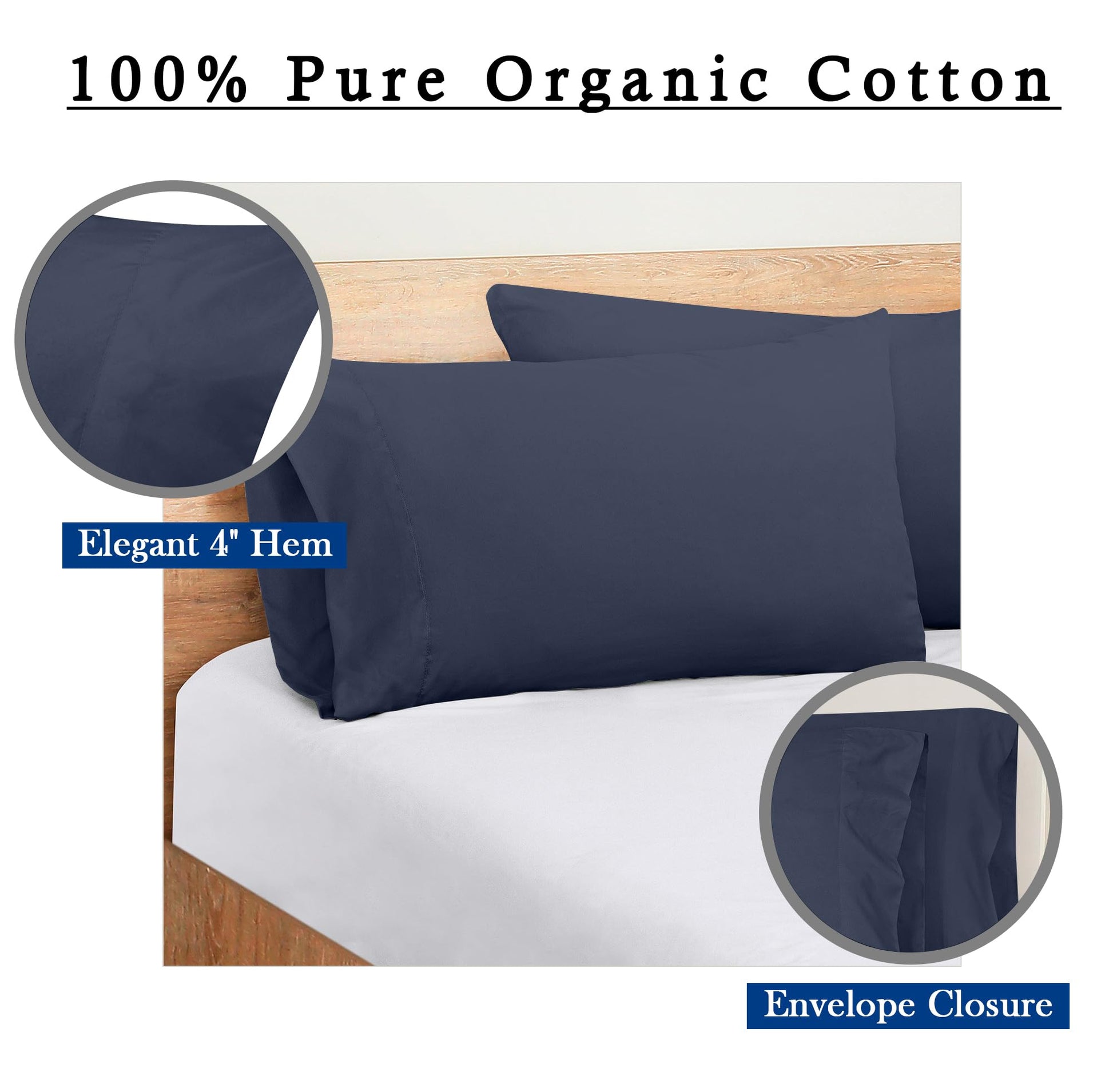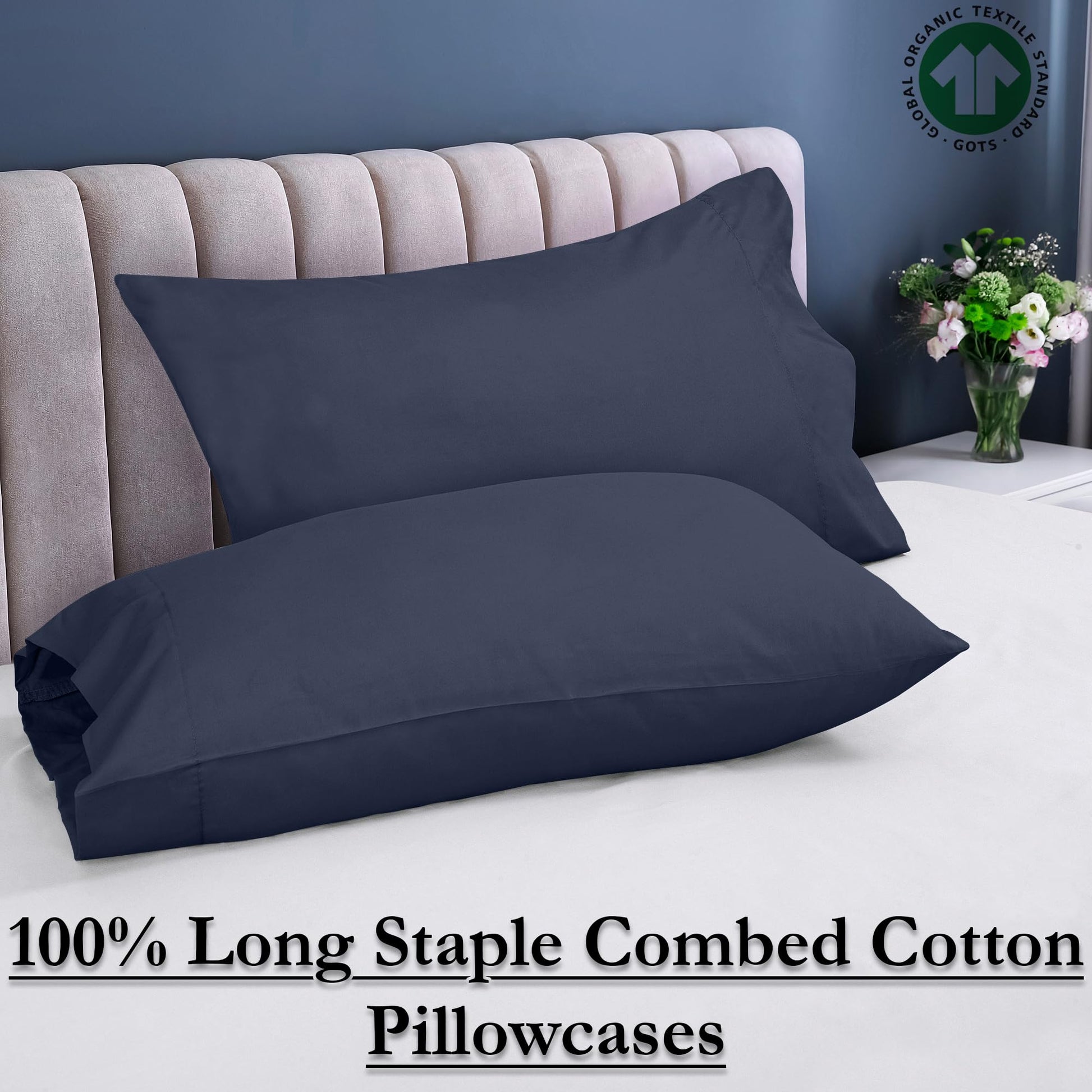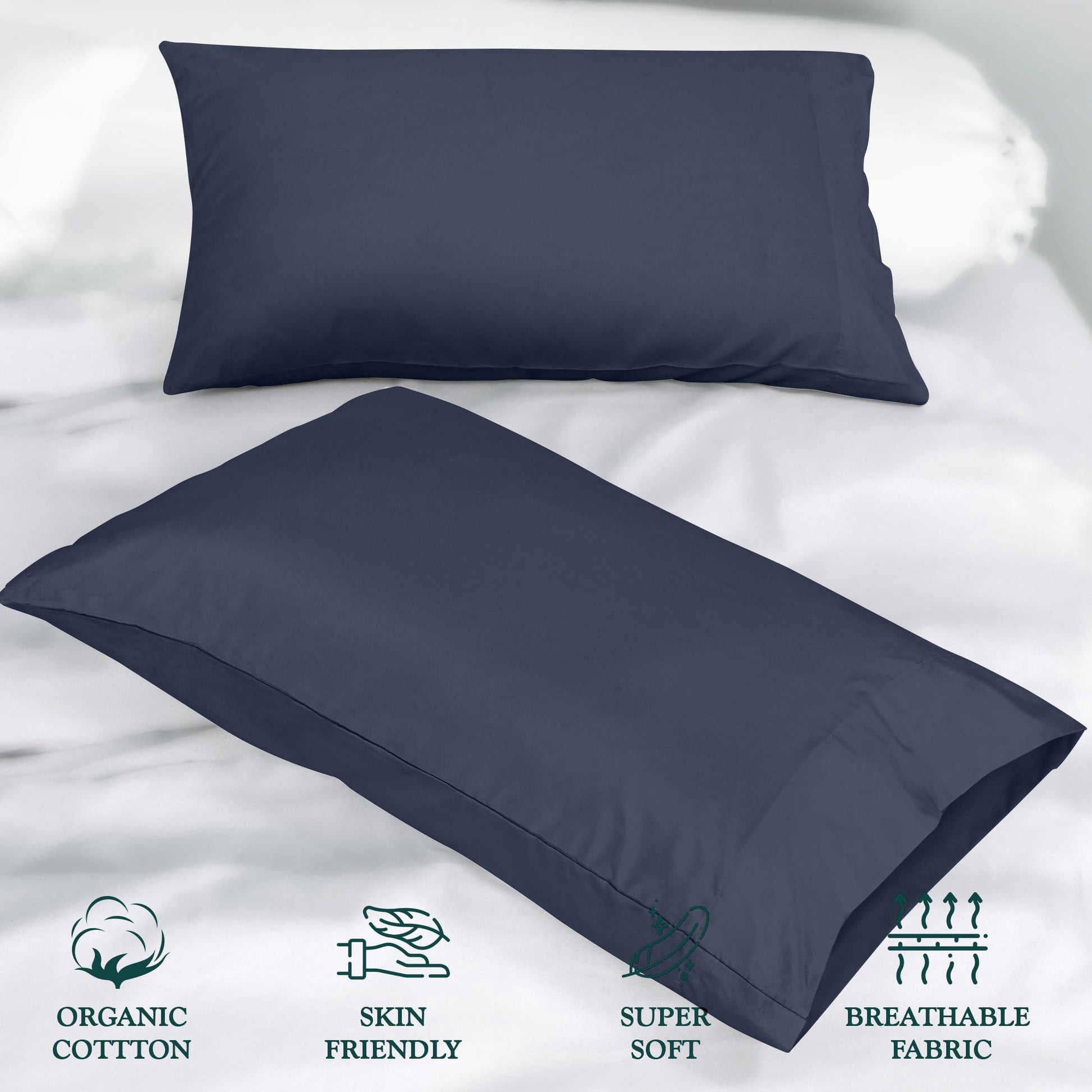 ROYALE LINENS 300 Thread Count 100% Long Staple Combed Cotton Pillowcases Set of 2 - Ultra Soft - Bed Pillow Cover - Breathable, Cool & Crisp Percale Navy Pillow Cases ( Navy)