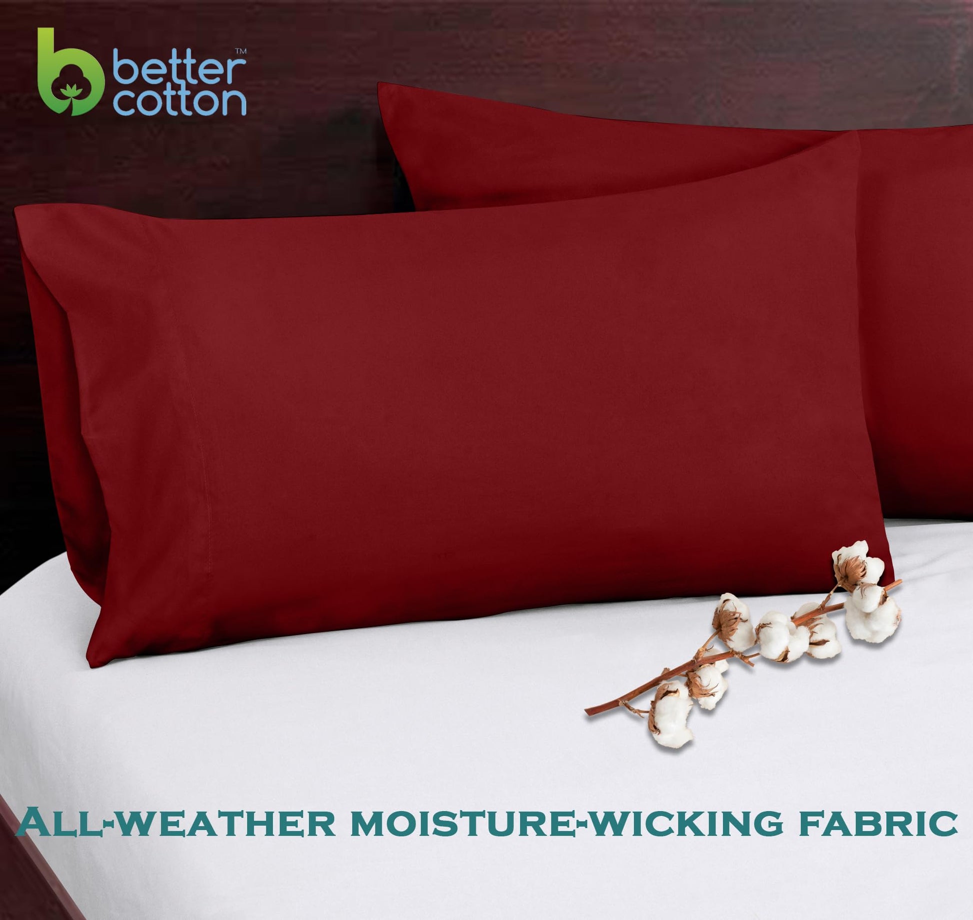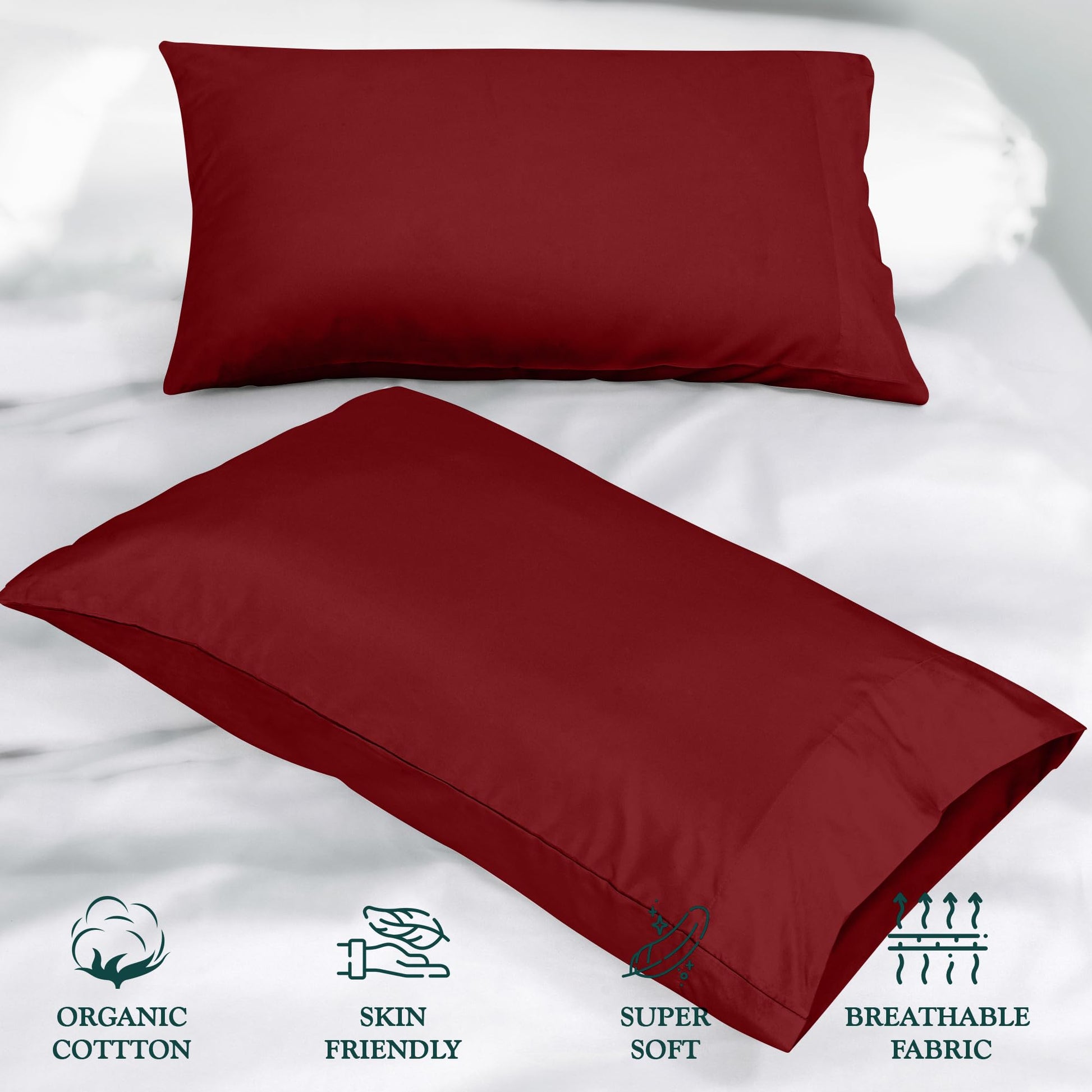 ROYALE LINENS 300 Thread Count 100% Long Staple Combed Cotton Pillowcases Set of 2 - Ultra Soft - Bed Pillow Cover - Breathable, Cool & Crisp Percale Red Pillow Cases ( Red)