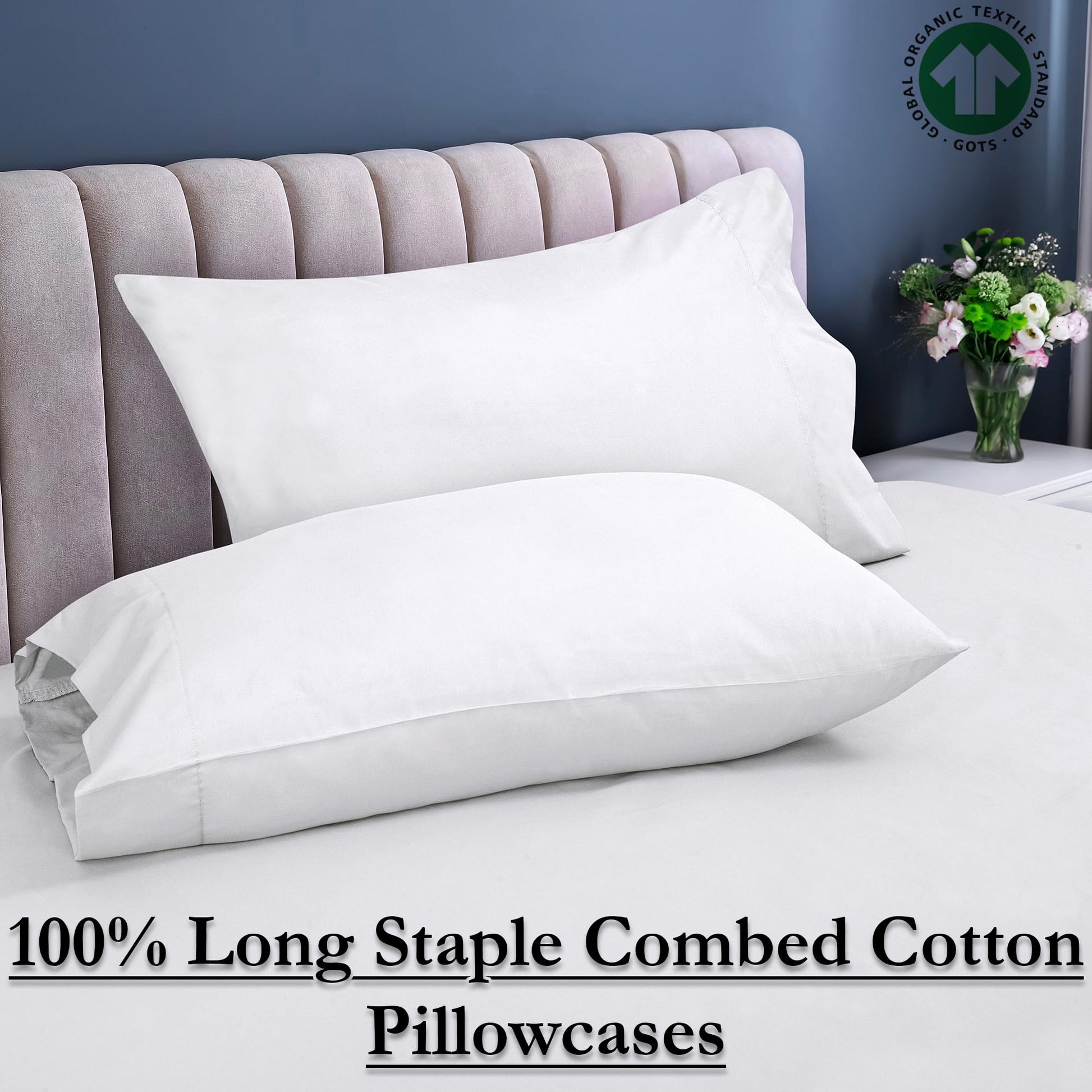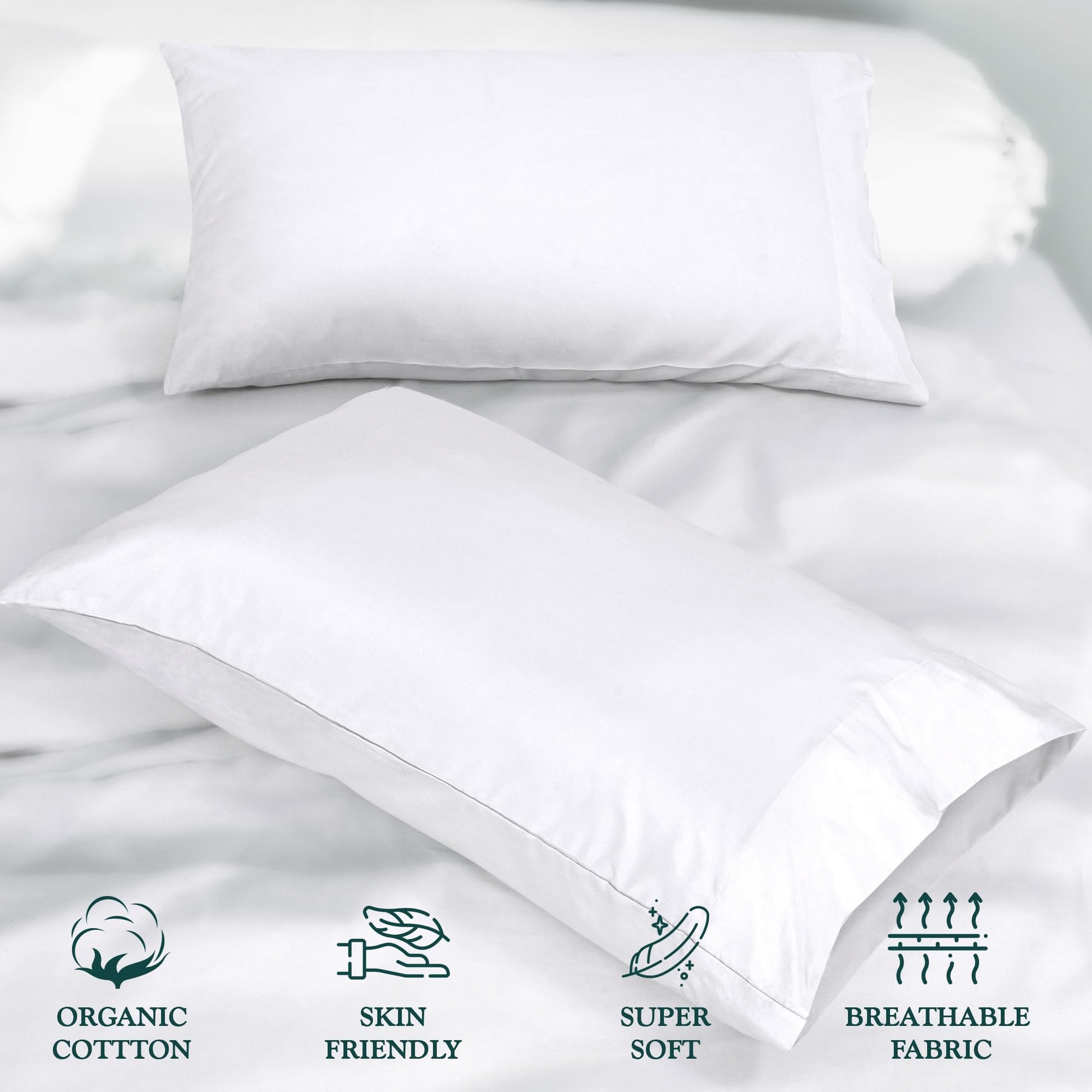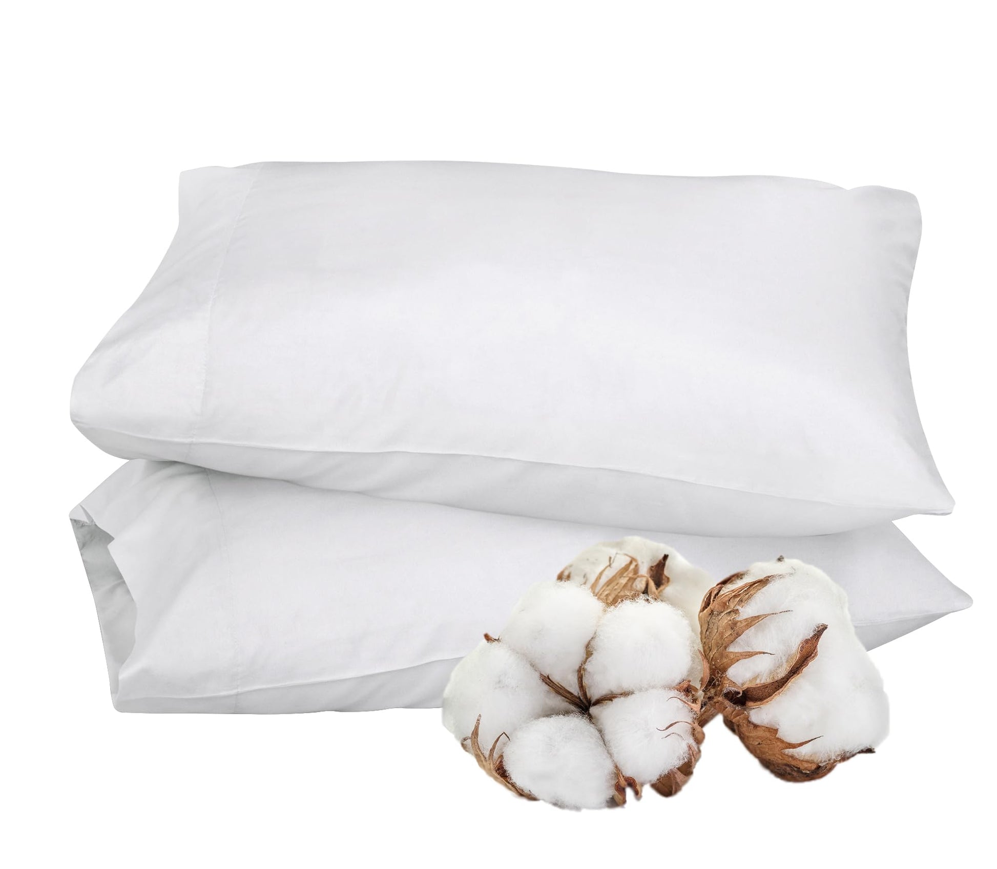 ROYALE LINENS 300 Thread Count 100% Long Staple Combed Cotton Pillowcases Set of 2 - Ultra Soft - Bed Pillow Cover - - Breathable, Cool & Crisp Percale White Pillow Cases ( White)