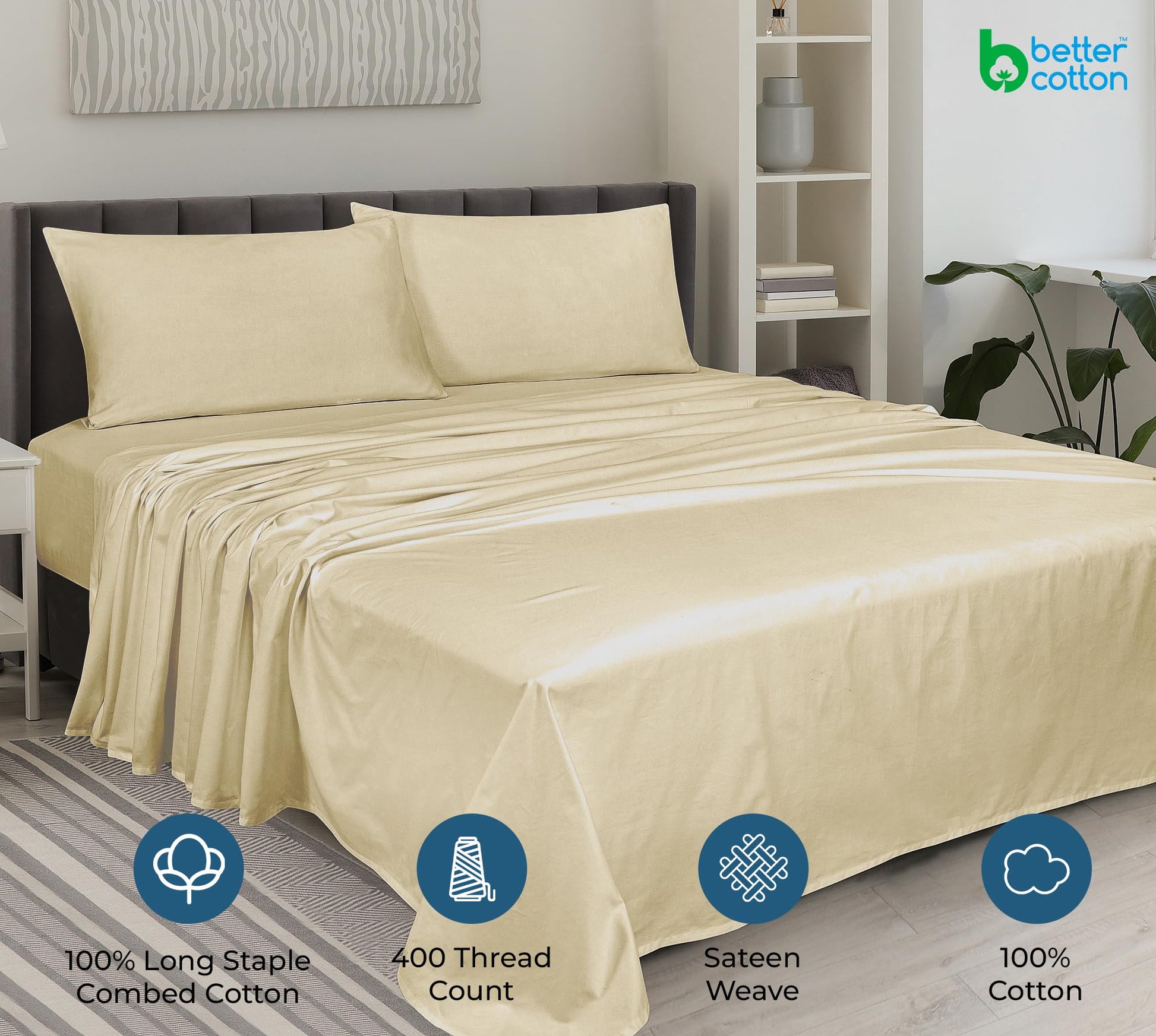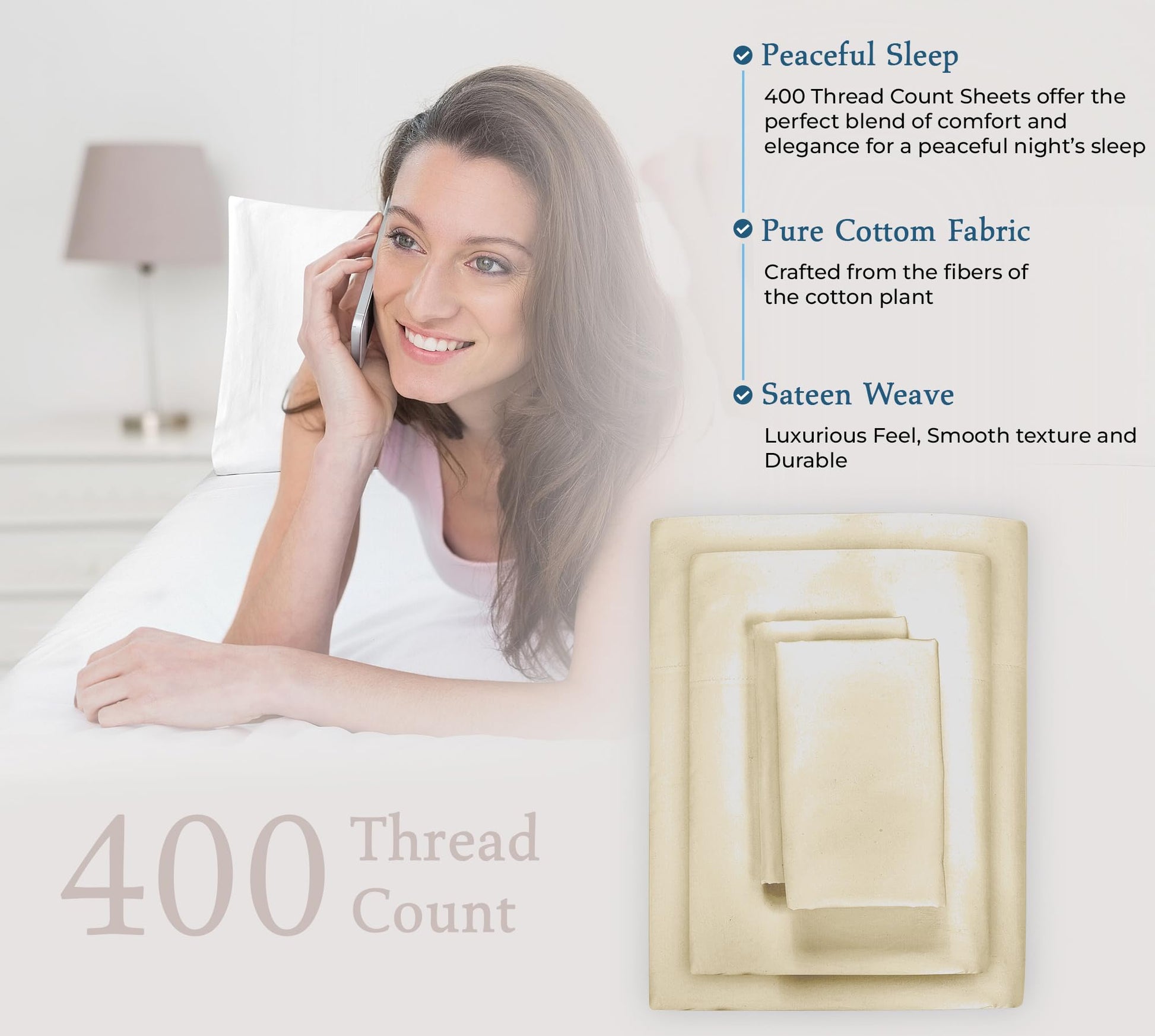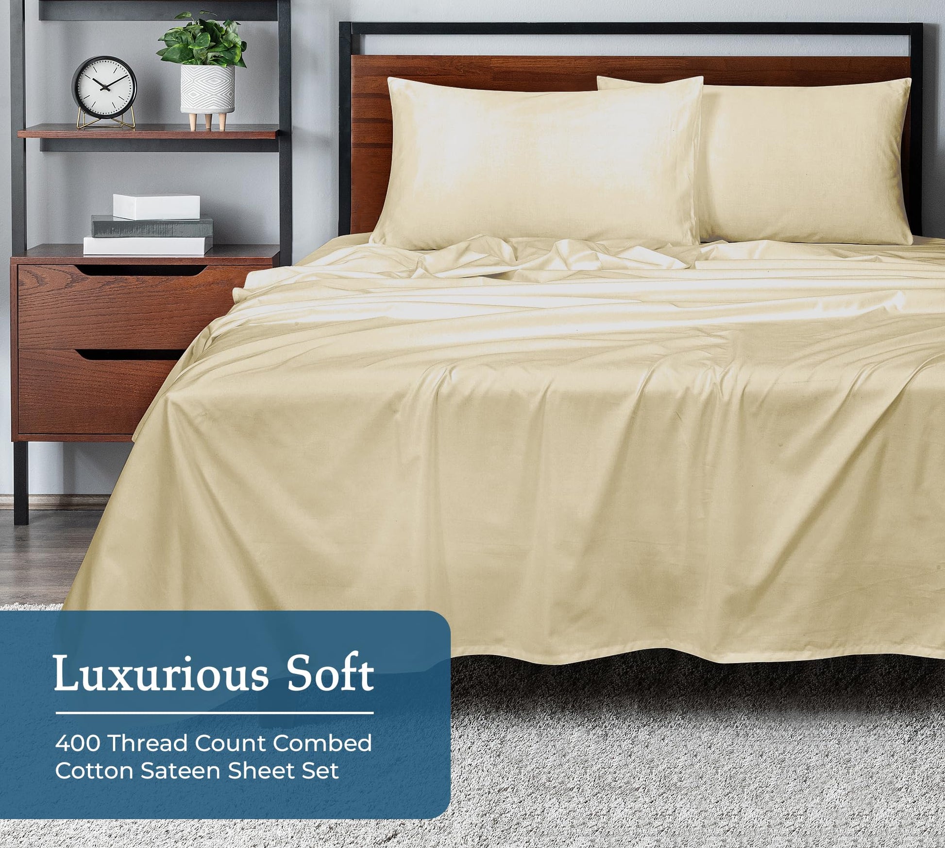 """A Good Night Sleep Is Just A Moment Away"" Royale Linens 400 Thread Count Sateen Bed Sheet Sets Are Manufactured Using Finest Quality 100% American Grown Cotton. Making Them Breathable, Comfortable And Cozy. Royale Linen Sheet Set Comes In 4 Different Sizes Twin Full Queen King Queen Sheet Set Include: 1 Flat Sheet 90X102 Inches, 1 Fitted Sheet 60x80 Inches With 14 Inch Drop 2 Pillow Case 20X30 Inches With 4 Inch Hem And Envelop Closure. Royale Linens Queen Size Sateen Bed Sheets Are Breathable, Cool And Super Silky Soft. Fabric Is Processed To Make It Shrink And Fade Resistant. Perfect For Bedroom, Guest Room, Kids Room, Hotels. Great Gift Idea For Men And Women On Valentine's Day - Mother's Day- Father's Day And Christmas. Our 400 Thread Count Bed Sheet Sets Are Certified Standard 100 By Oeko?Tex. According To The Guidelines, These Products Are Tested For Harmful Substances And Produced In An Environment Friendly And Socially Responsible Manner. Also Sustainable In Accordance With Oeko-tex Guidelines. Care Instruction: Machine Wash Or Hand Wash Using Cold Water Along With A Mild Detergent Is Recommended For Extending The Life Of The Set Along With Retaining Its Comfortability. Washing At High Temperatures Causes Microfiber To Expand Which Results In The Trapped Dirt And Other Tiny Particles Being Released. If You Want To Hand Wash The Set, Then Consider Using A Soft-haired Brush To Rinse Thoroughly."