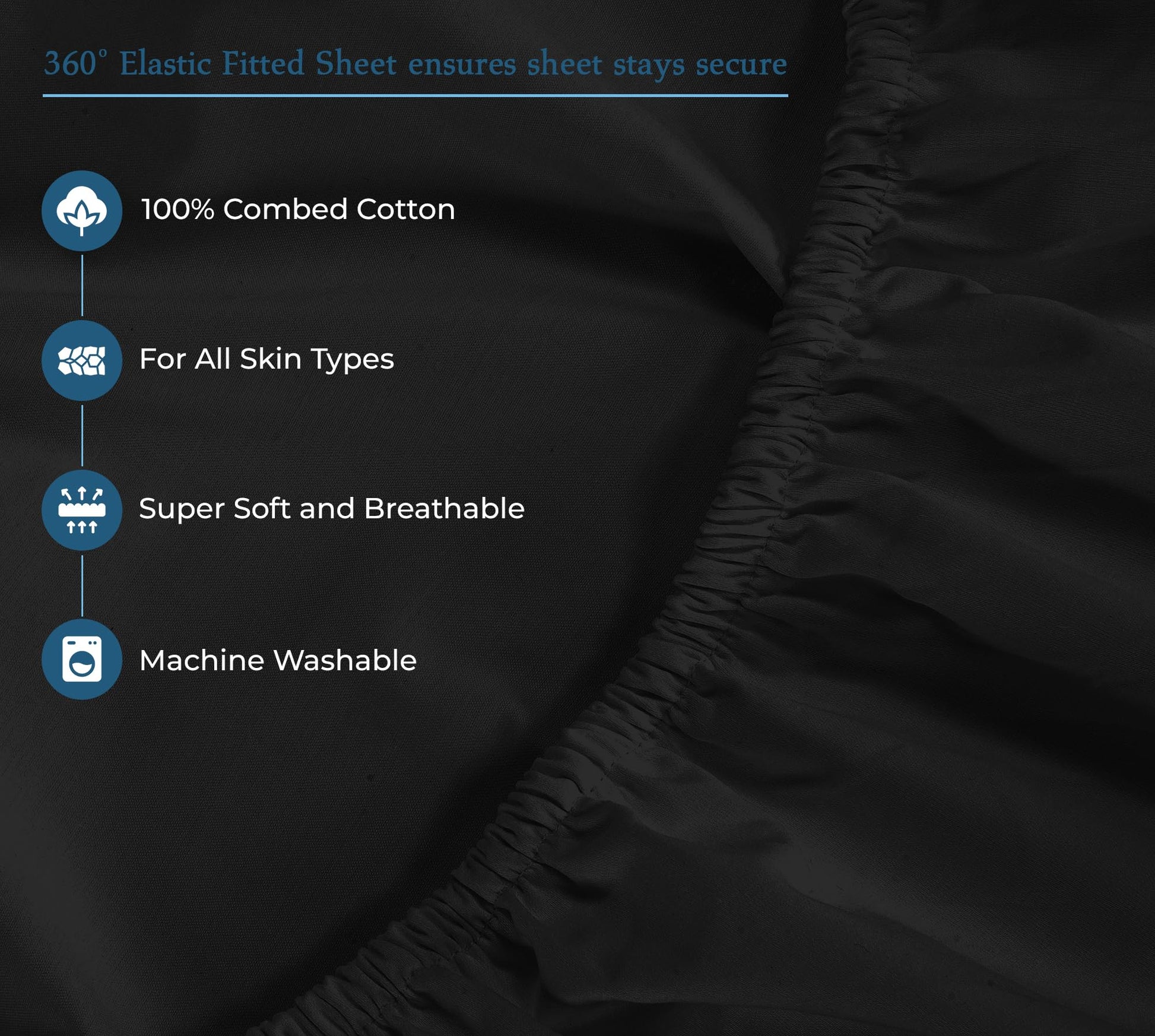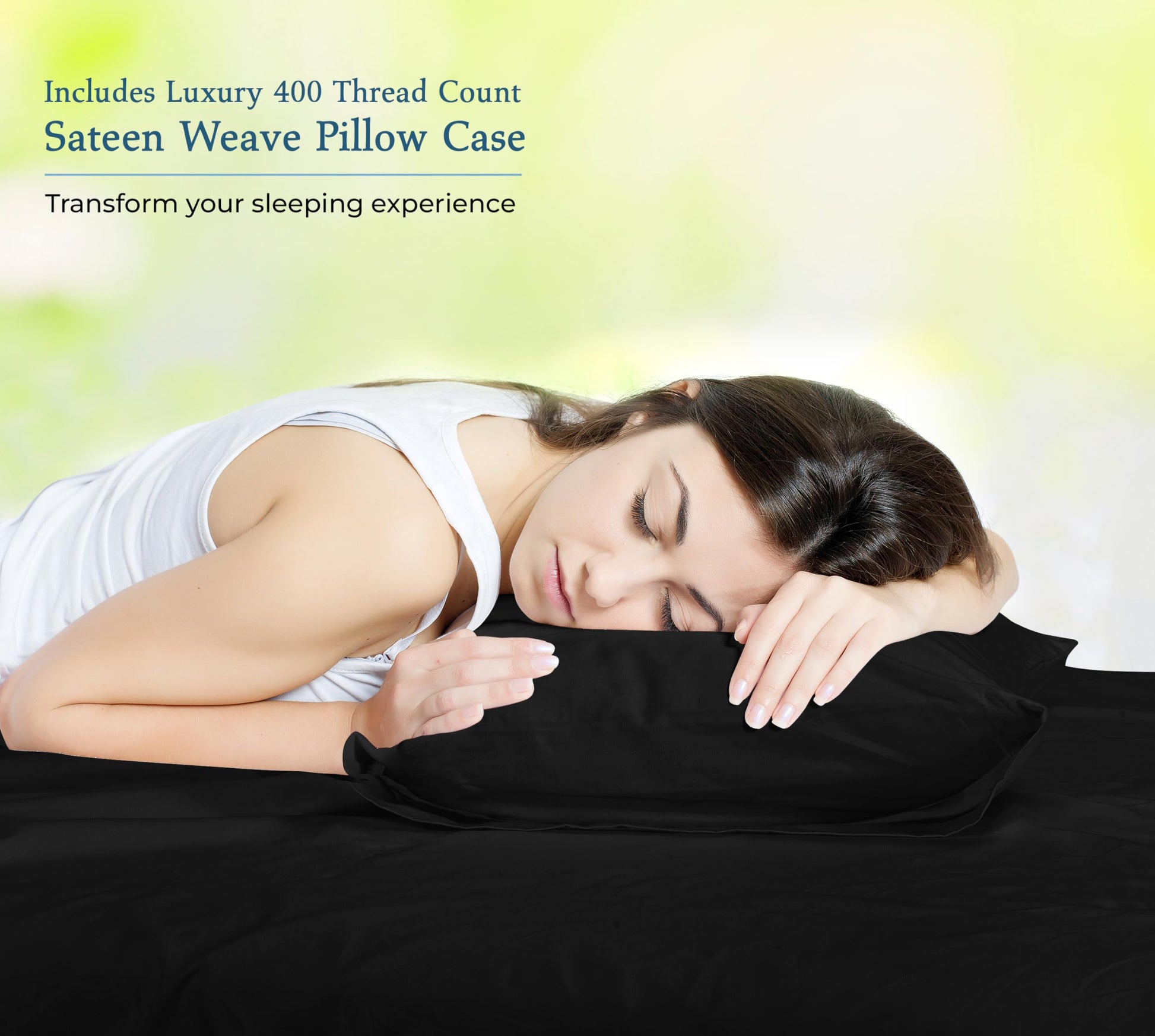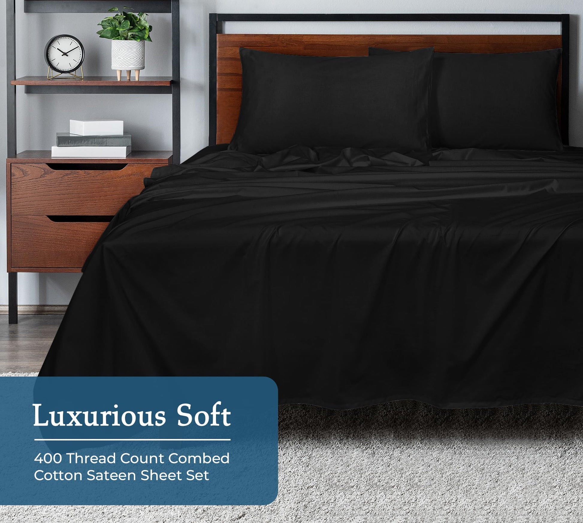 ROYALE LINENS 400 Thread Count 100% American Grown Cotton 4 Piece Sateen Sheet Set - 1 Fitted Sheet, 1 Flat Sheet, 2 Pillow case - Black Bedsheet - Cotton Sheets - ( Night Black)