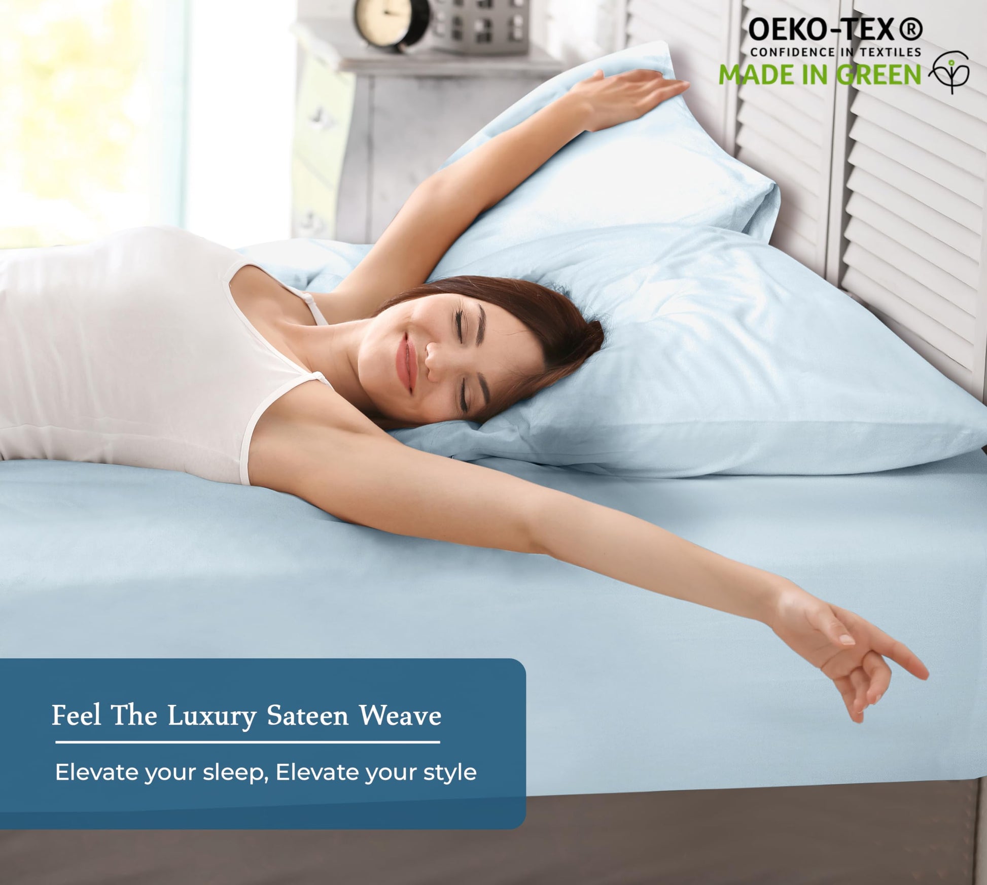 """A Good Night Sleep Is Just A Moment Away"" Royale Linens 400 Thread Count Sateen Bed Sheet Sets Are Manufactured Using Finest Quality 100% American Grown Cotton. Making Them Breathable, Comfortable And Cozy. Royale Linen Sheet Set Comes In 4 Different Sizes Twin Full Queen King Queen Sheet Set Include: 1 Flat Sheet 90X102 Inches, 1 Fitted Sheet 60x80 Inches With 14 Inch Drop 2 Pillow Case 20X30 Inches With 4 Inch Hem And Envelop Closure. Royale Linens Queen Size Sateen Bed Sheets Are Breathable, Cool And Super Silky Soft. Fabric Is Processed To Make It Shrink And Fade Resistant. Perfect For Bedroom, Guest Room, Kids Room, Hotels. Great Gift Idea For Men And Women On Valentine's Day - Mother's Day- Father's Day And Christmas. Our 400 Thread Count Bed Sheet Sets Are Certified Standard 100 By Oeko?Tex. According To The Guidelines, These Products Are Tested For Harmful Substances And Produced In An Environment Friendly And Socially Responsible Manner. Also Sustainable In Accordance With Oeko-tex Guidelines. Care Instruction: Machine Wash Or Hand Wash Using Cold Water Along With A Mild Detergent Is Recommended For Extending The Life Of The Set Along With Retaining Its Comfortability. Washing At High Temperatures Causes Microfiber To Expand Which Results In The Trapped Dirt And Other Tiny Particles Being Released. If You Want To Hand Wash The Set, Then Consider Using A Soft-haired Brush To Rinse Thoroughly."