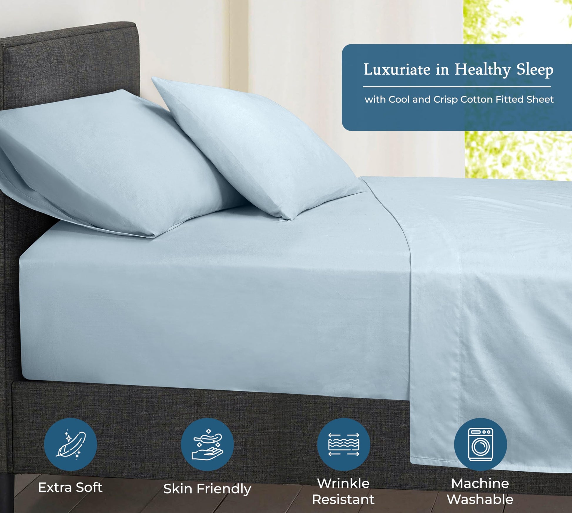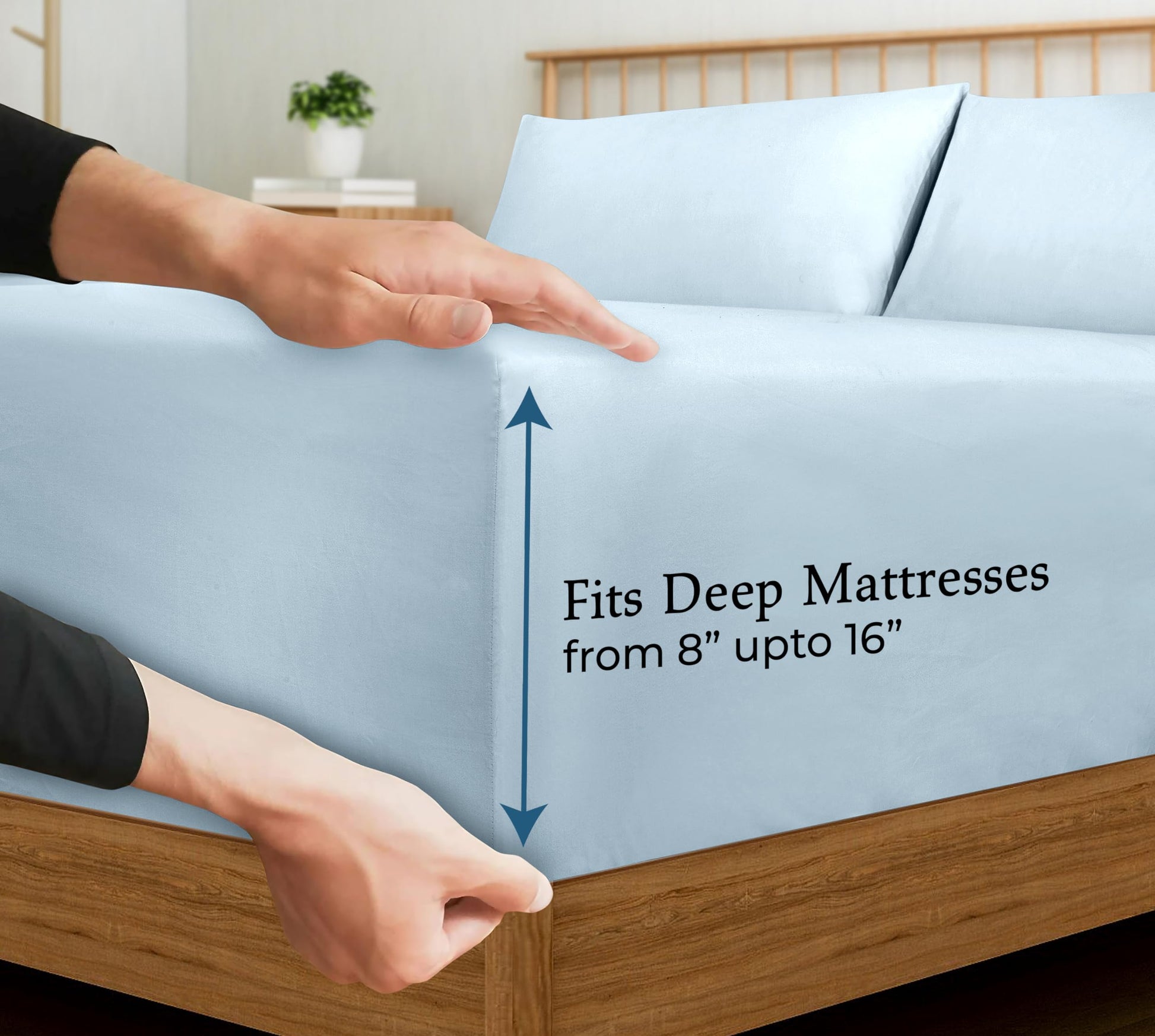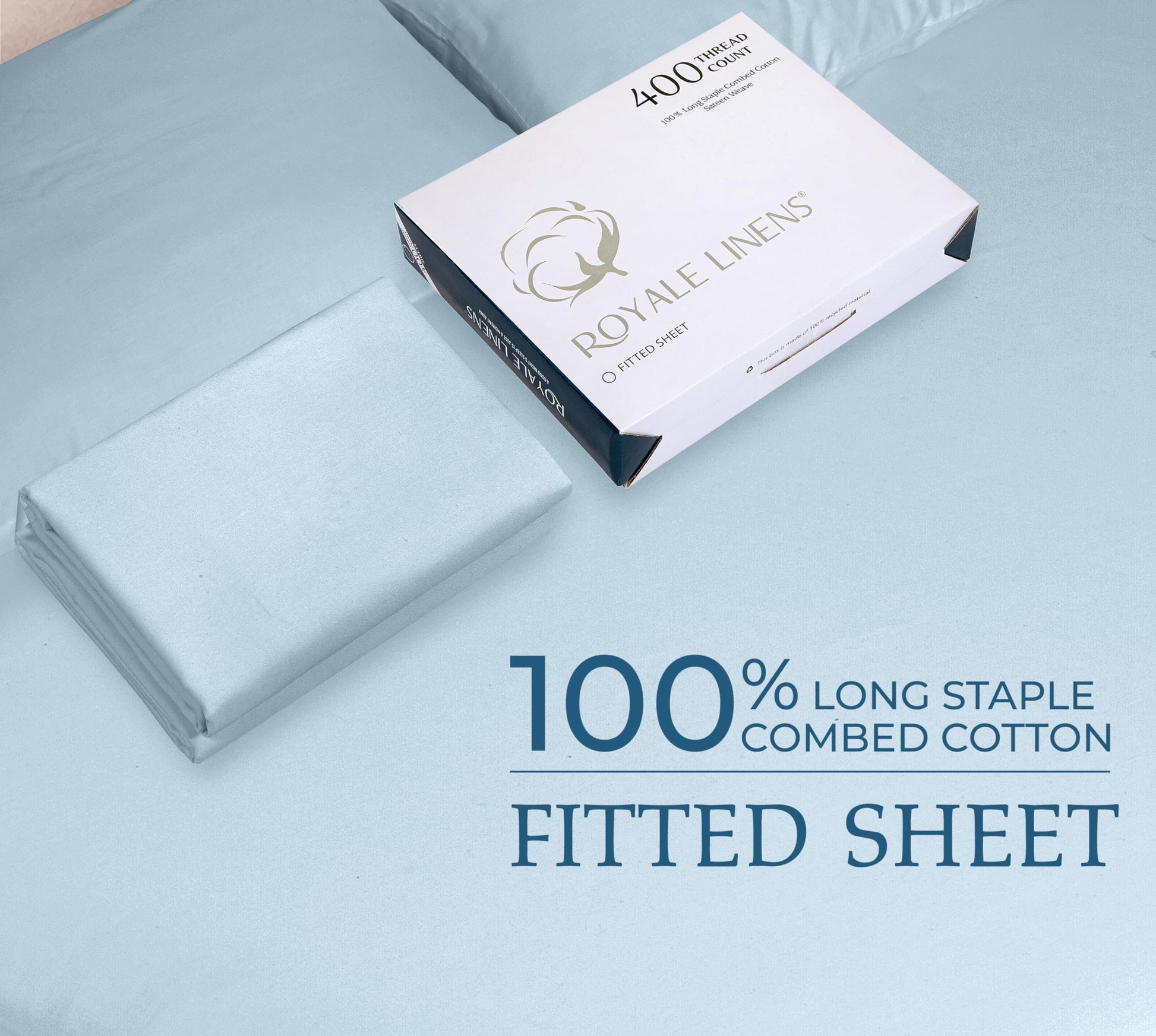 Royale Linens 400 Thread Count 100% American Grown Cotton Fitted Sheet - All Around Elastic Fitted Sheet - Luxury Sateen Weave - Snug Fit Bottom Sheet Fit Up To 16" ( Caribbean Blue)