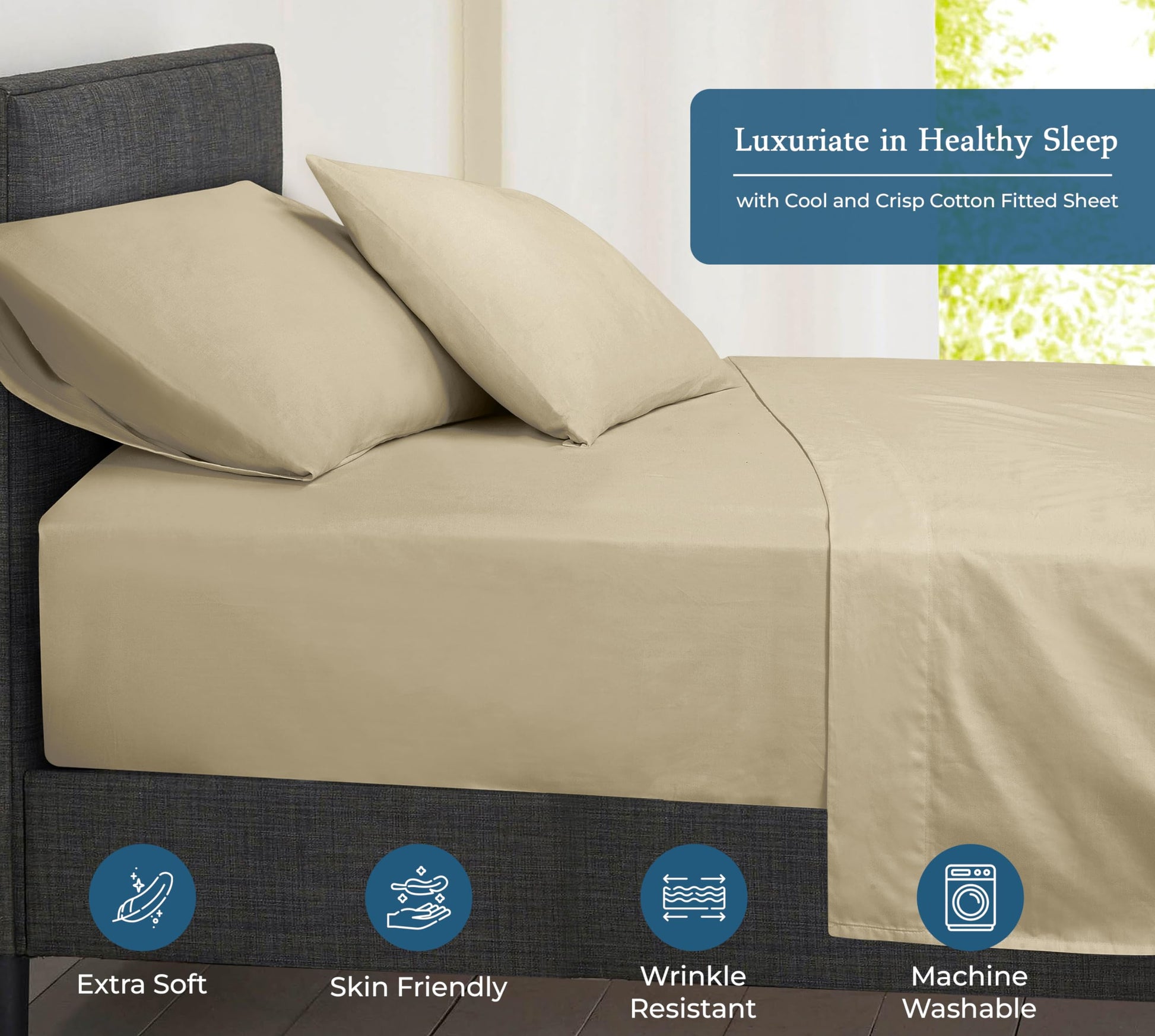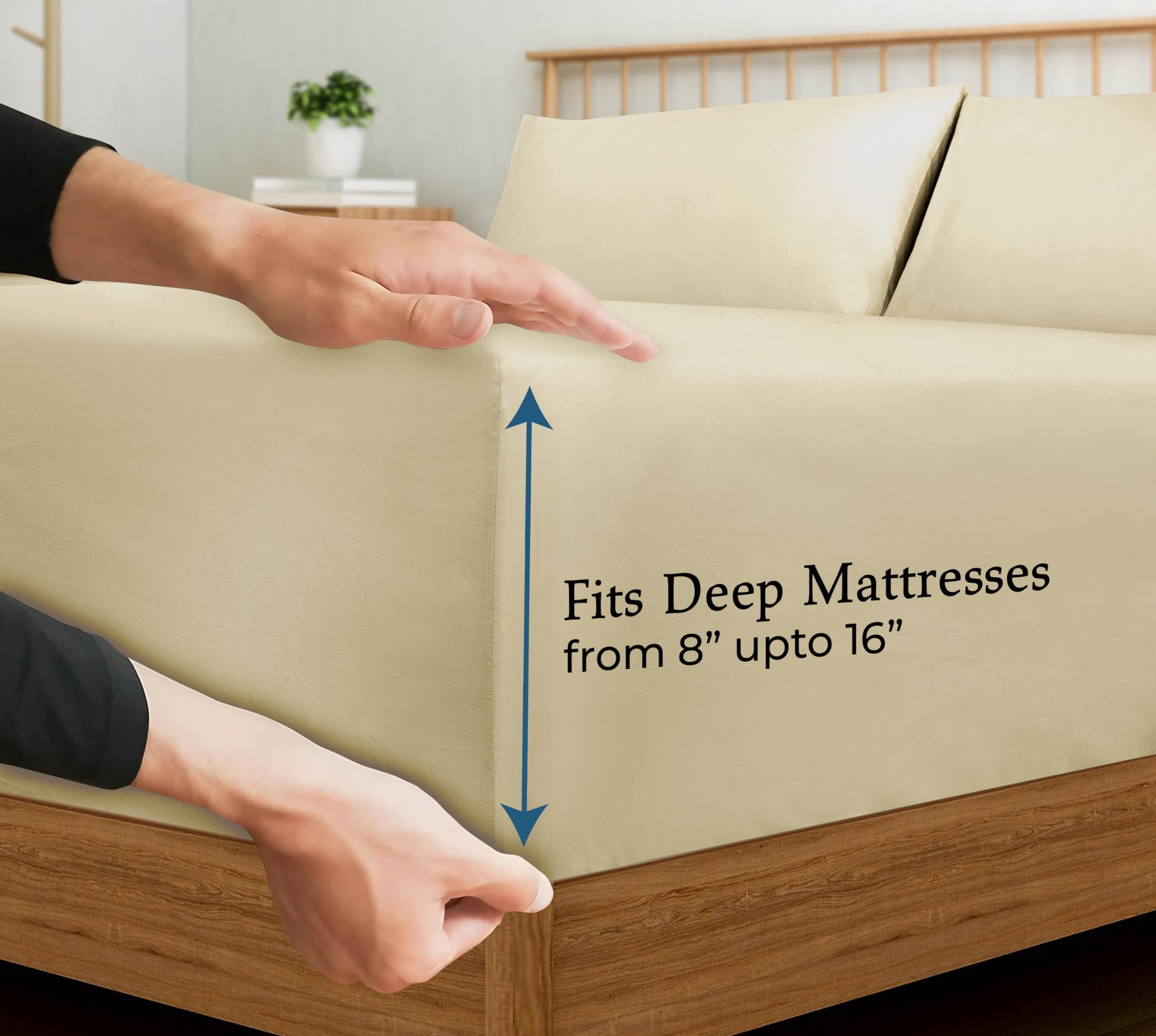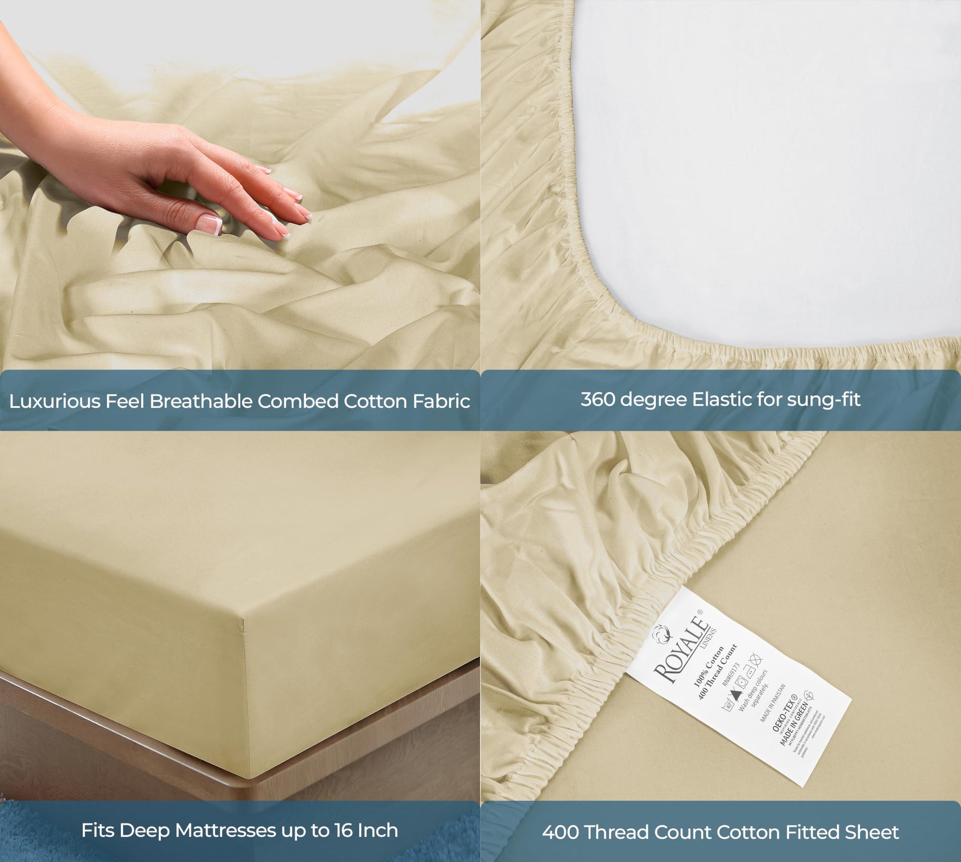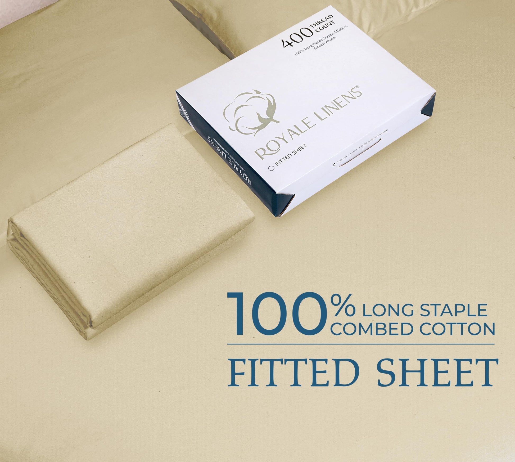 ROYALE LINENS 400 Thread Count 100% American Grown Cotton Fitted Sheet - All Around Elastic Fitted Sheet - Luxury Sateen Weave - Snug Fit Bottom Sheet Fit Up to 16" (Moroccan Sand)