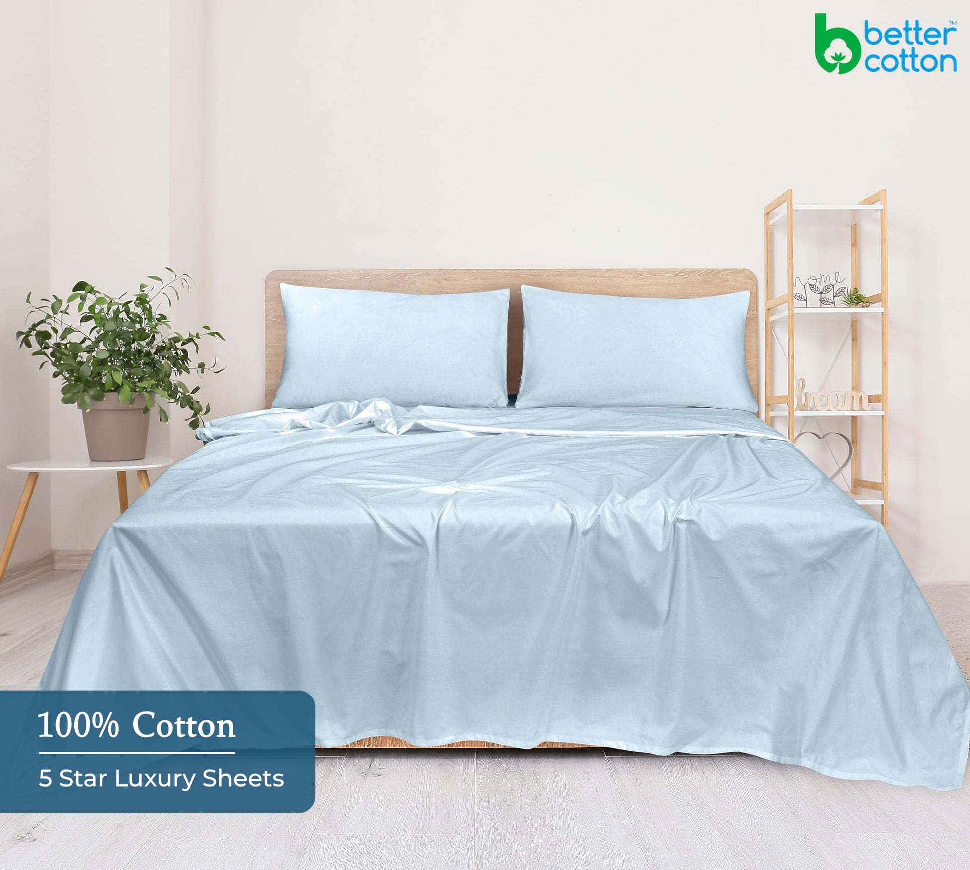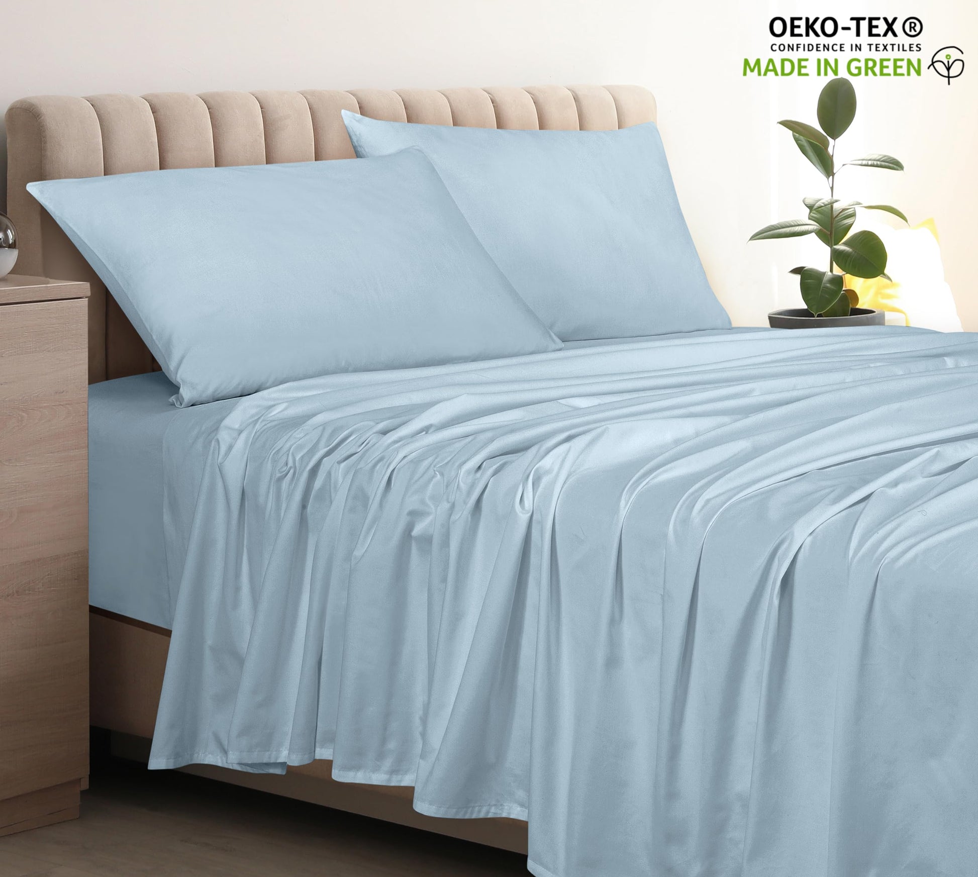 400 Thread Count 100% American Grown Cotton Flat Sheet - Cooling Sheets - Sheets - Luxury Sateen Weave - Flat Sheet Sold Separately - Soft Blue Flat Sheet Only (Caribbean Blue)
