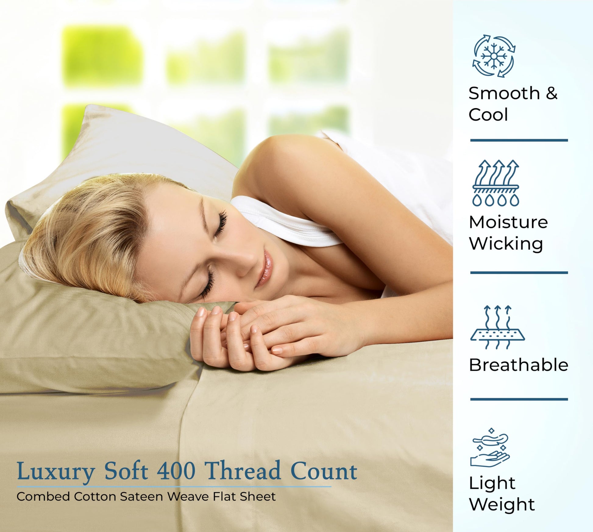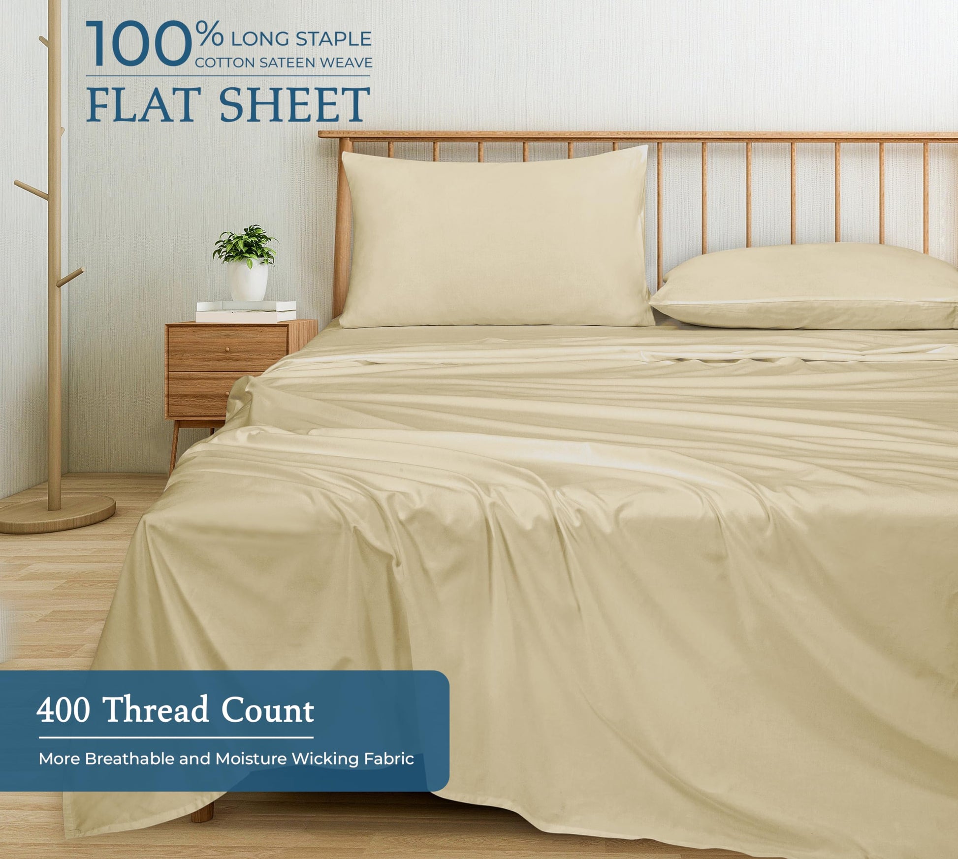 400 Thread Count 100% American Grown Cotton Flat Sheet - Cooling Sheets - Sheets - Luxury Sateen Weave - Flat Sheet Sold Separately - Sand Flat Sheet Only (Moroccan Sand)