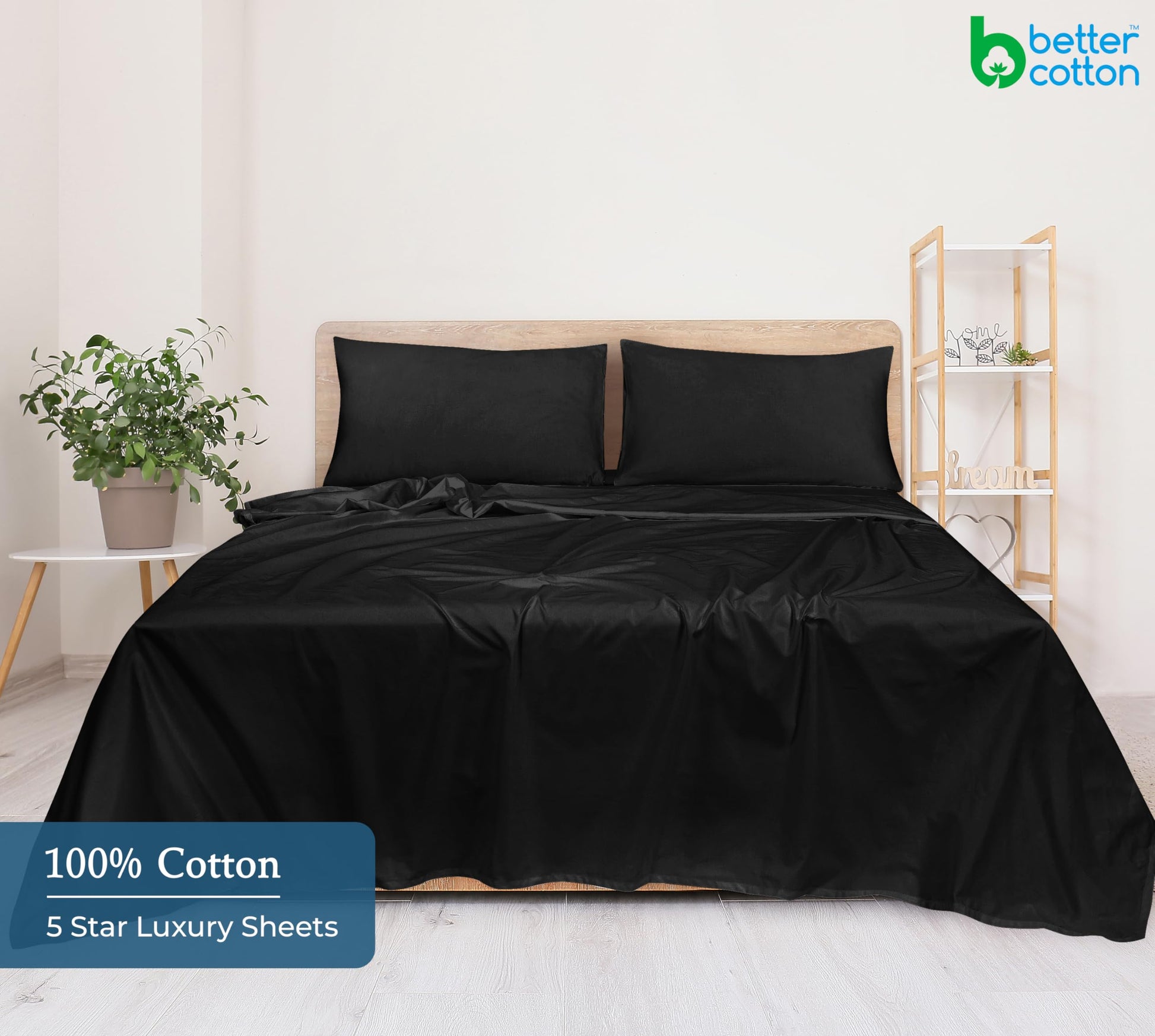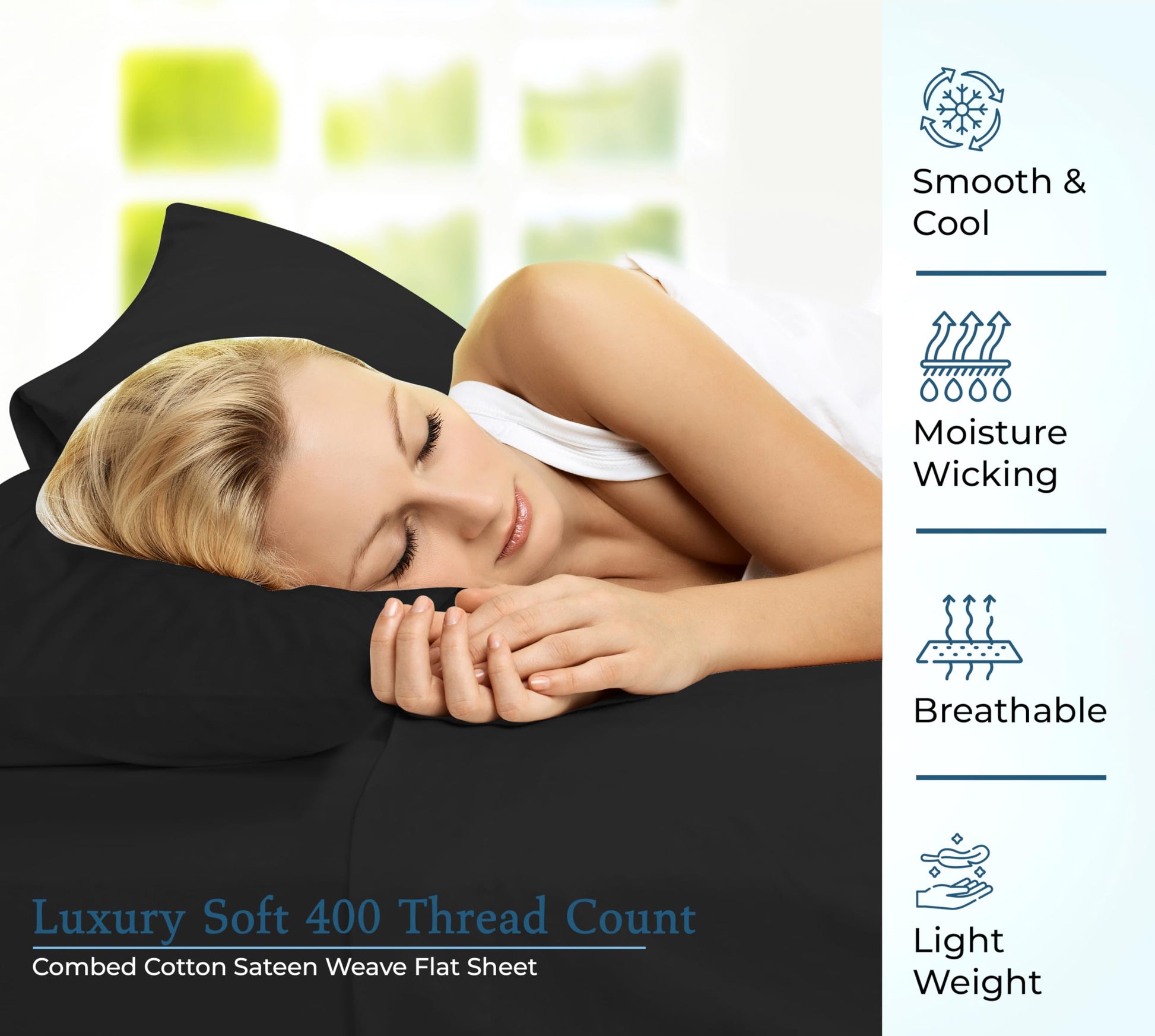 400 Thread Count 100% American Grown Cotton Flat Sheet - Cooling Sheets - Sheets - Luxury Sateen Weave - Flat Sheet Sold Separately - Soft Black Flat Sheet Only ( Night Black)