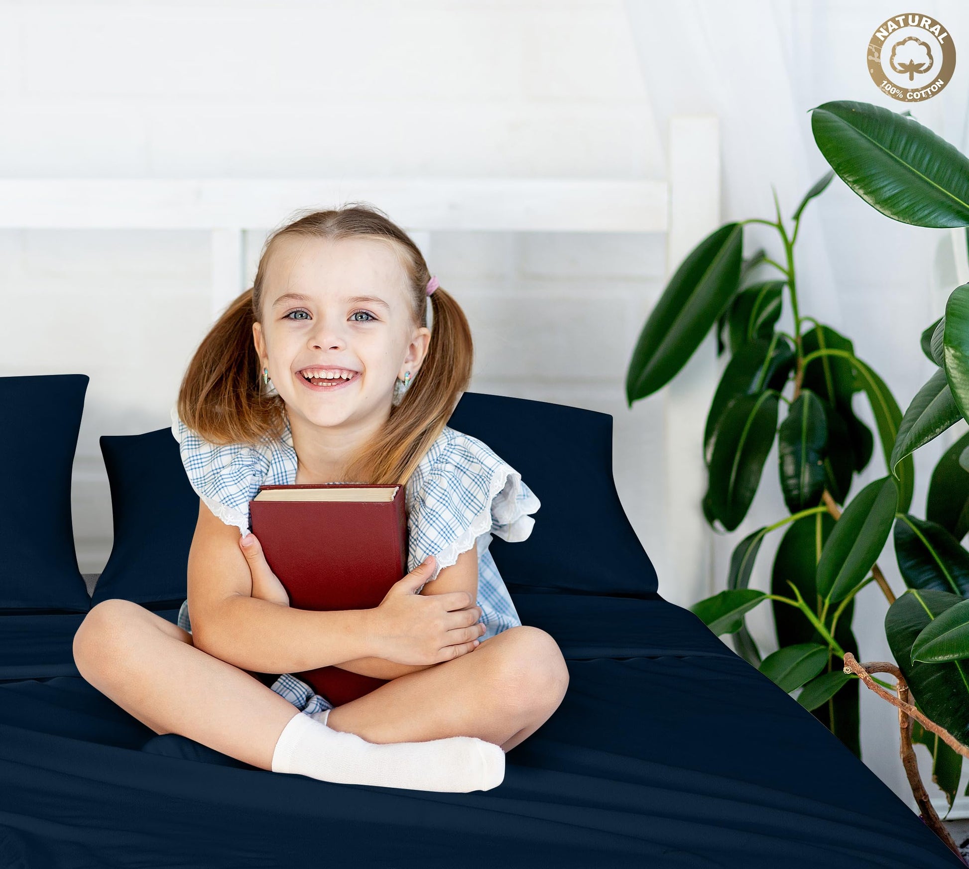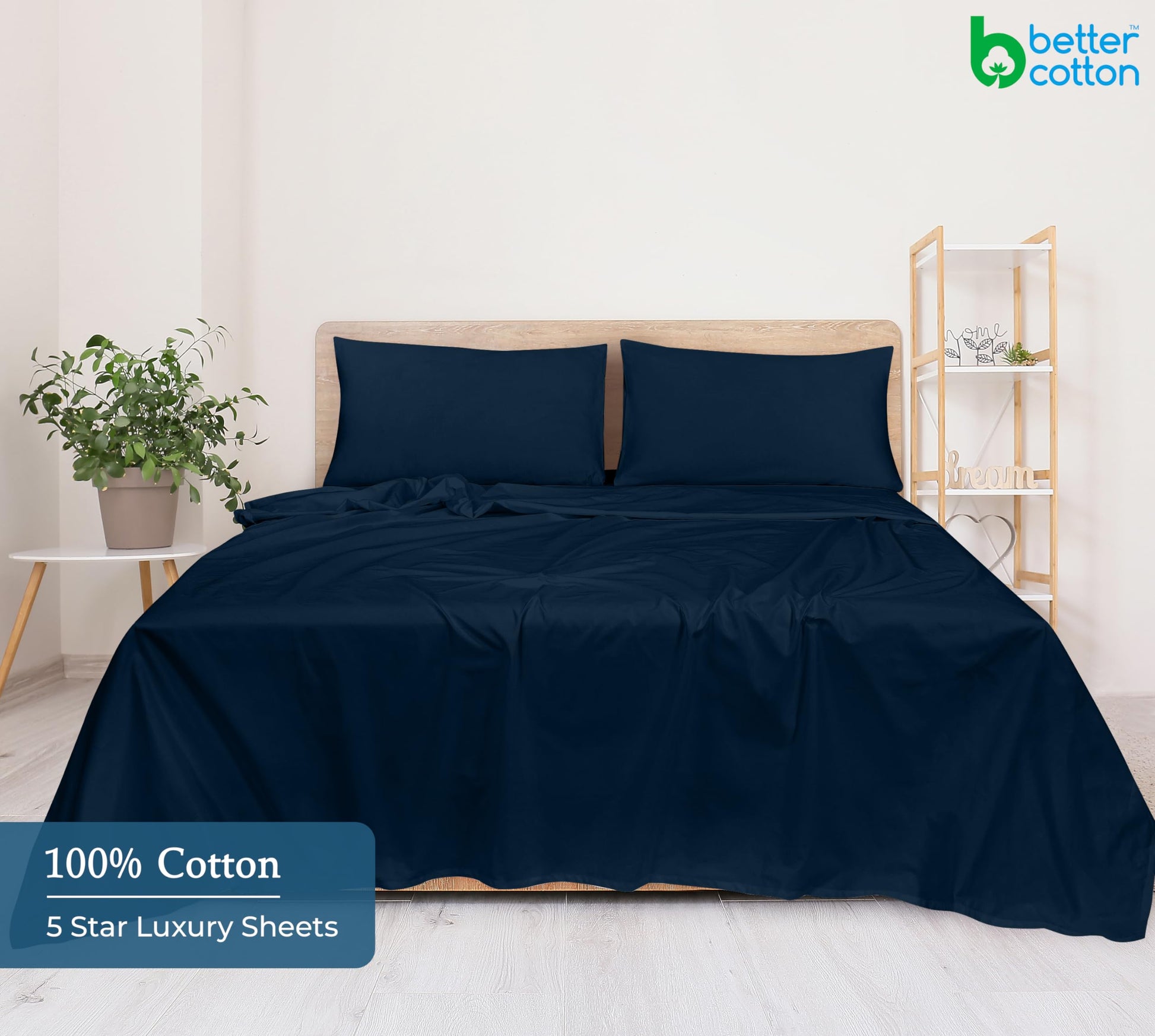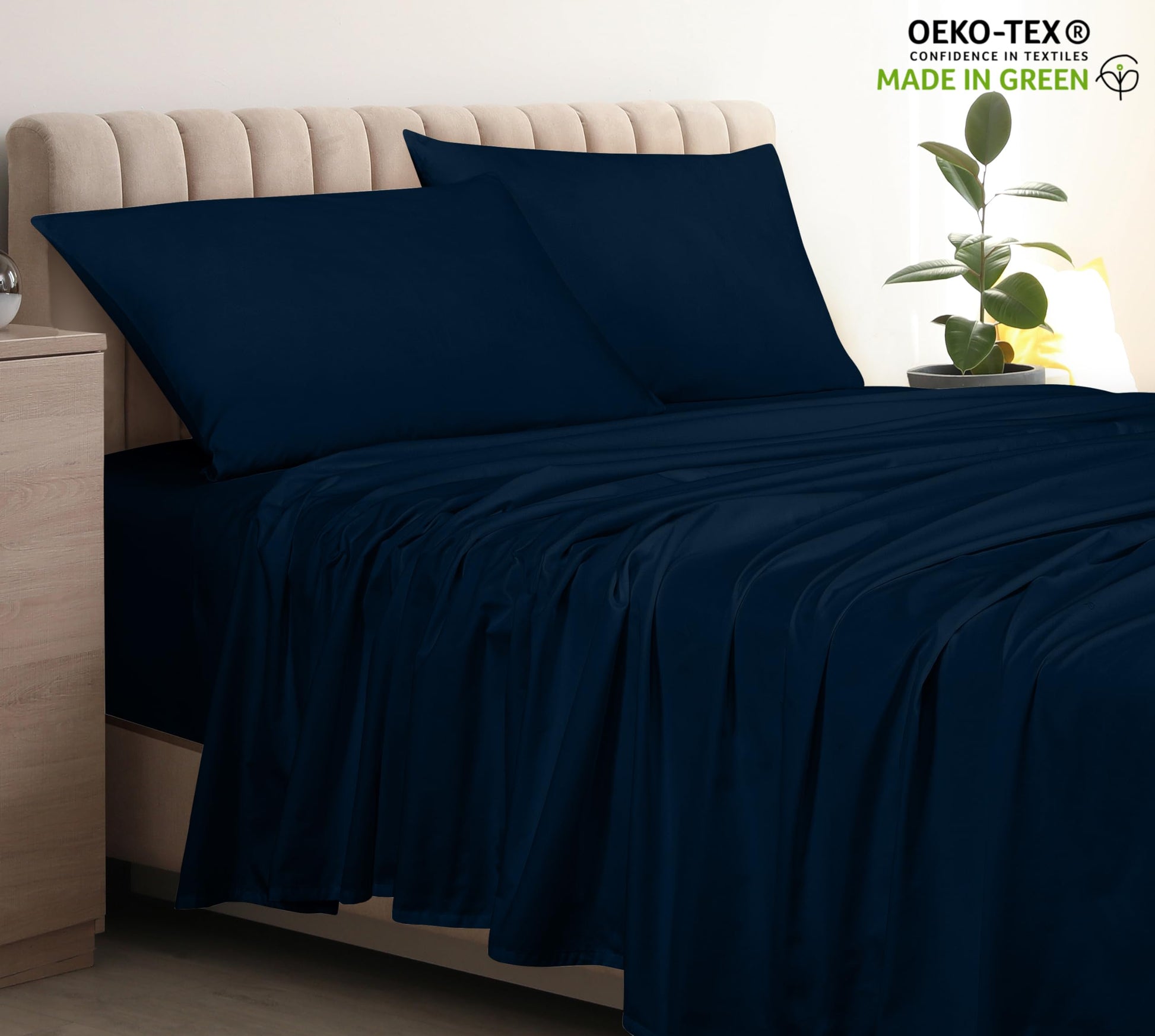400 Thread Count 100% American Grown Cotton Flat Sheet - Cooling Sheets - Sheets - Luxury Sateen Weave - Flat Sheet Sold Separately - Navy Flat Sheet Only ( Rivera Navy)