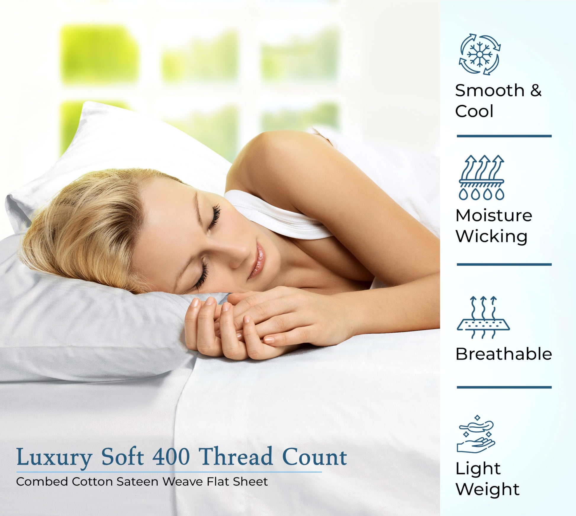 400 Thread Count 100% American Grown Cotton Flat Sheet - Cooling Sheets - Sheets - Luxury Sateen Weave - Flat Sheet Sold Separately - Soft White Flat Sheet Only ( Signature White)
