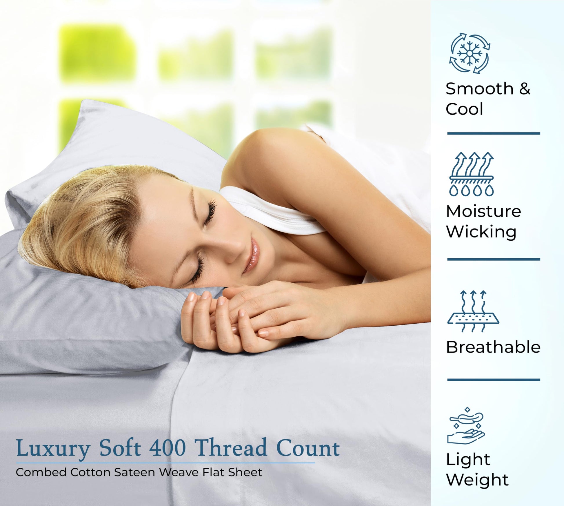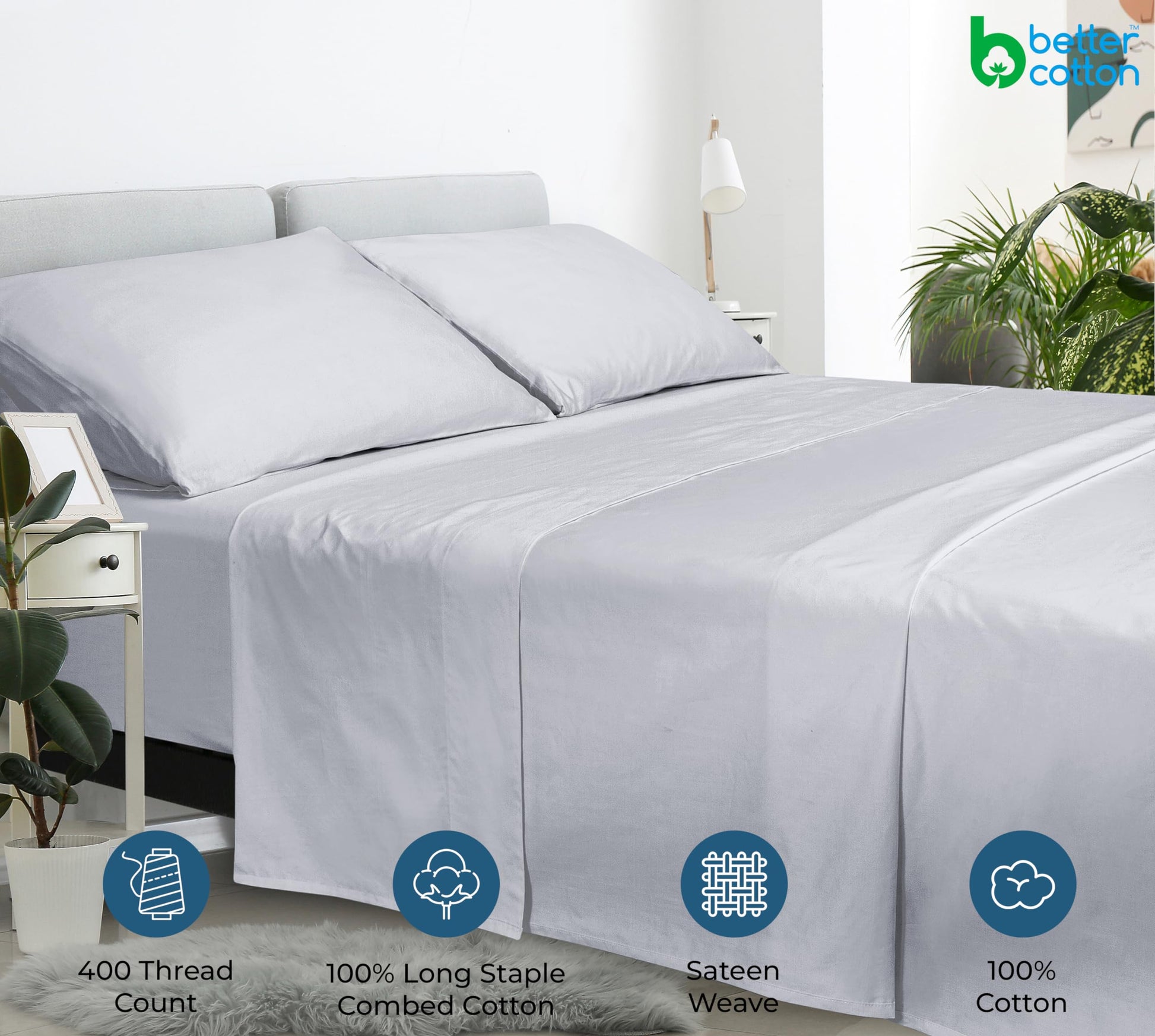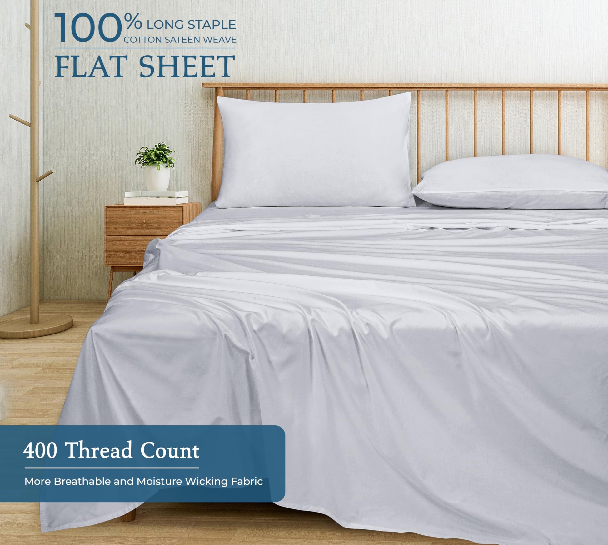 400 Thread Count 100% American Grown Cotton Flat Sheet - Cooling Sheets - Sheets - Luxury Sateen Weave - Flat Sheet Sold Separately - Silver Flat Sheet Only ( Spanish Silver)