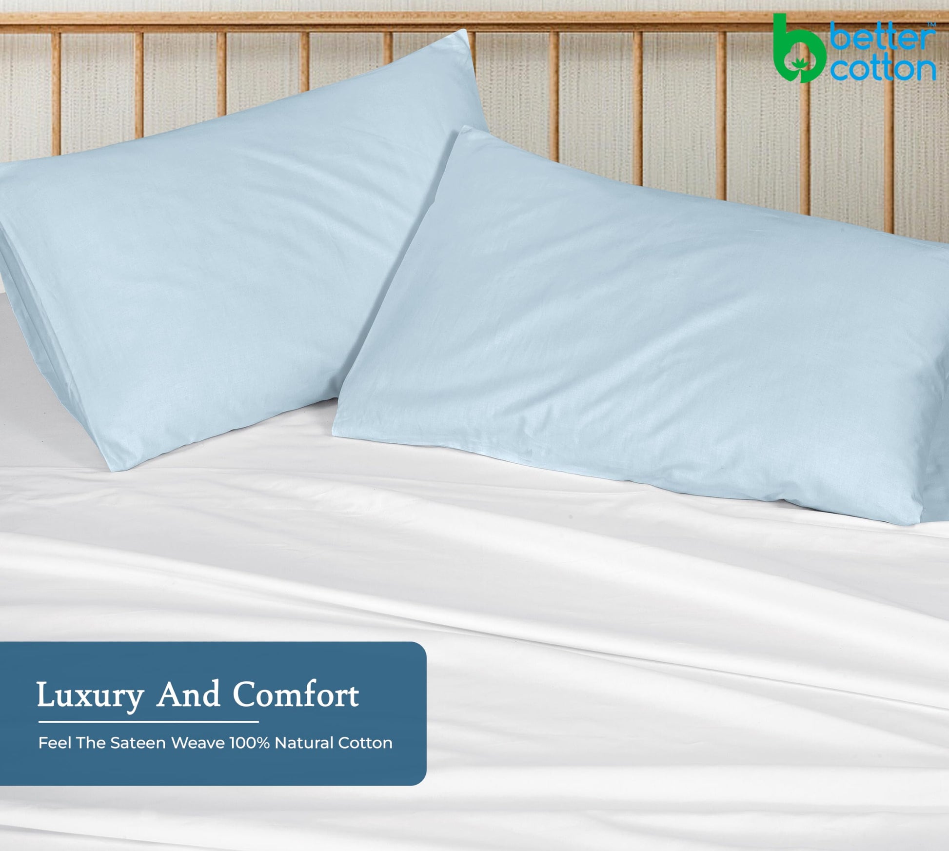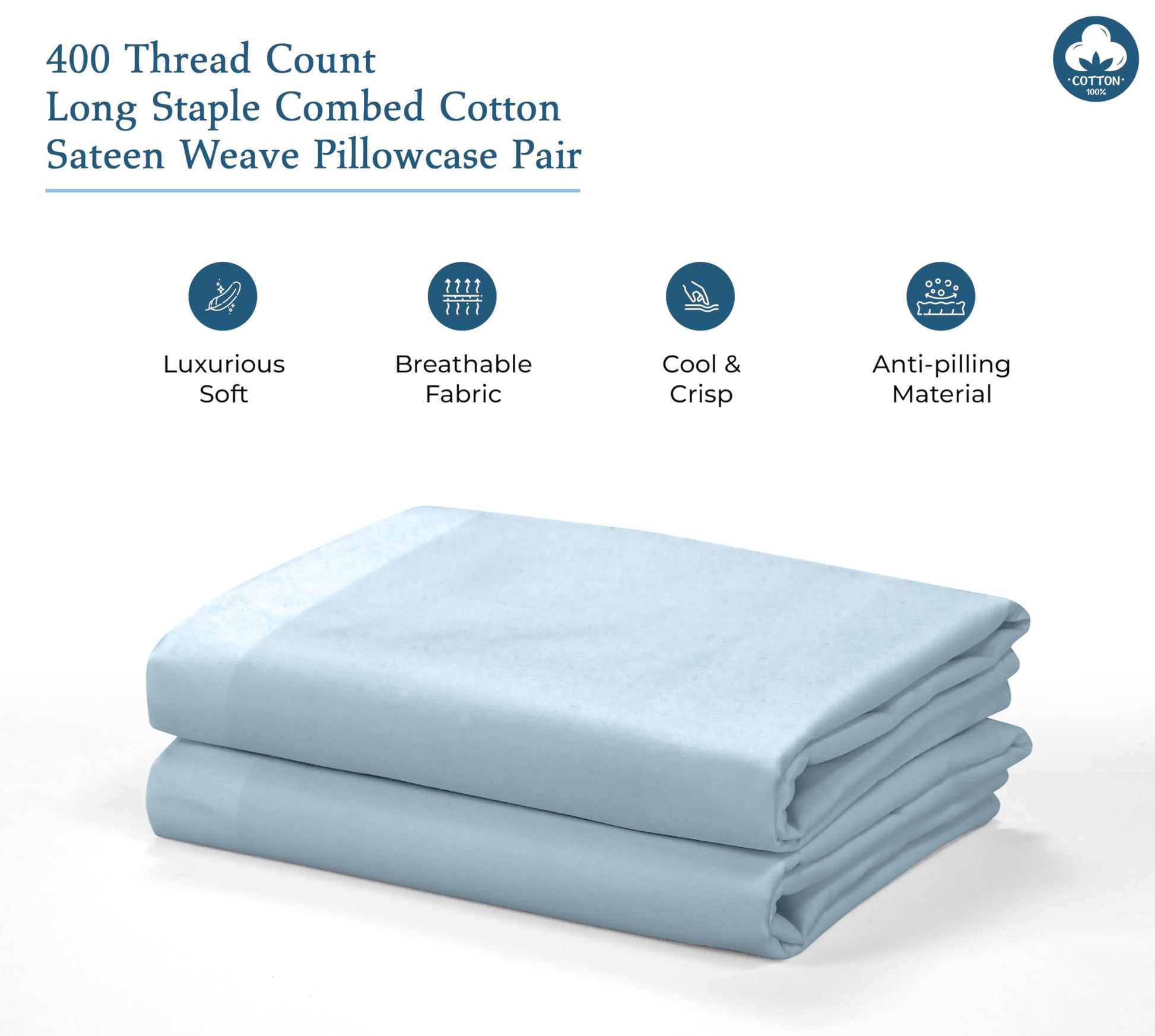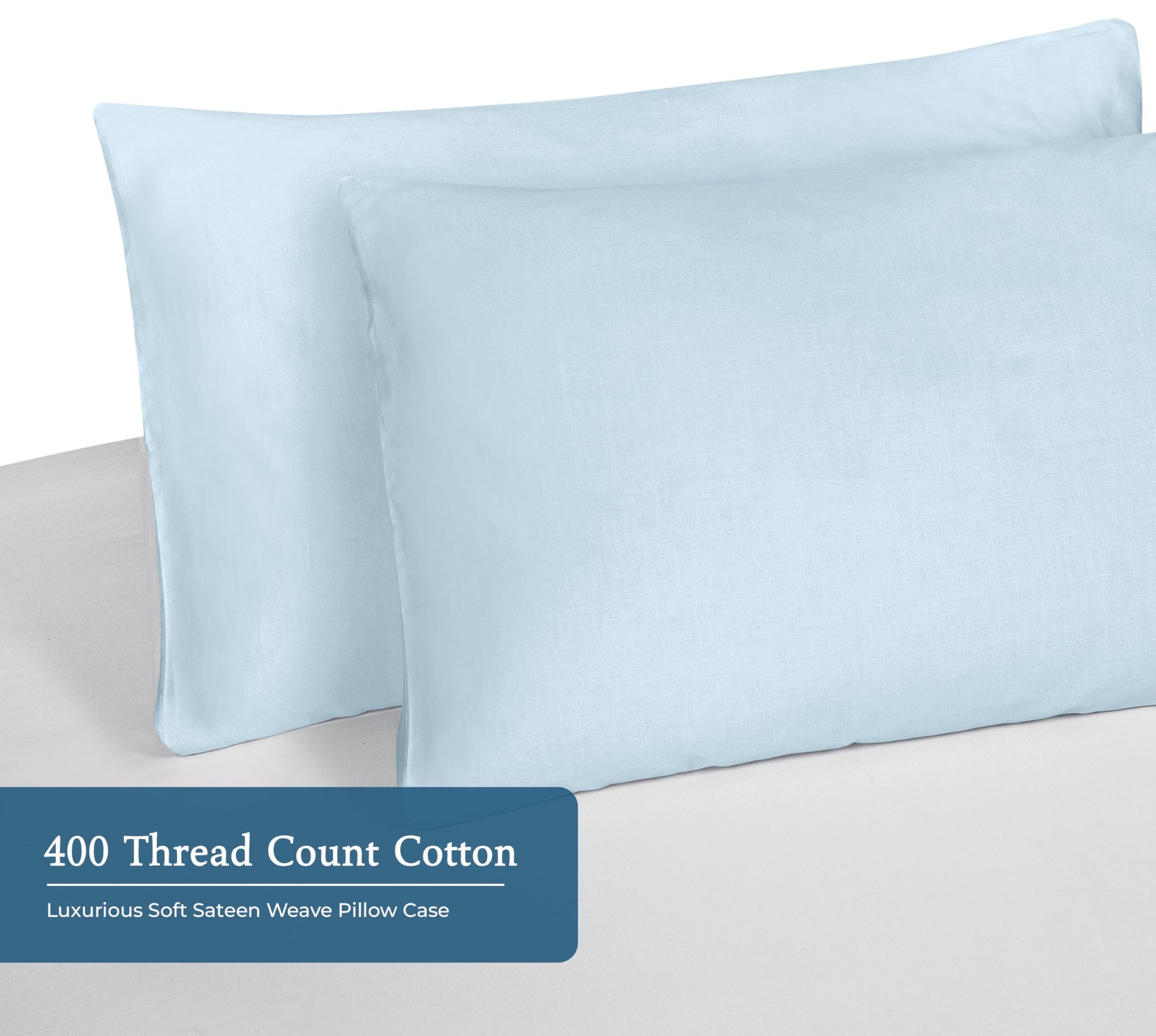 Royale Linens 400 Thread Count 100% American Grown Cotton Pillowcase Set - Luxury Sateen Pillow case - 20"x30" Inch - Soft & Smooth Set of 2 Blue Pillowcases - ( Caribbean Blue)