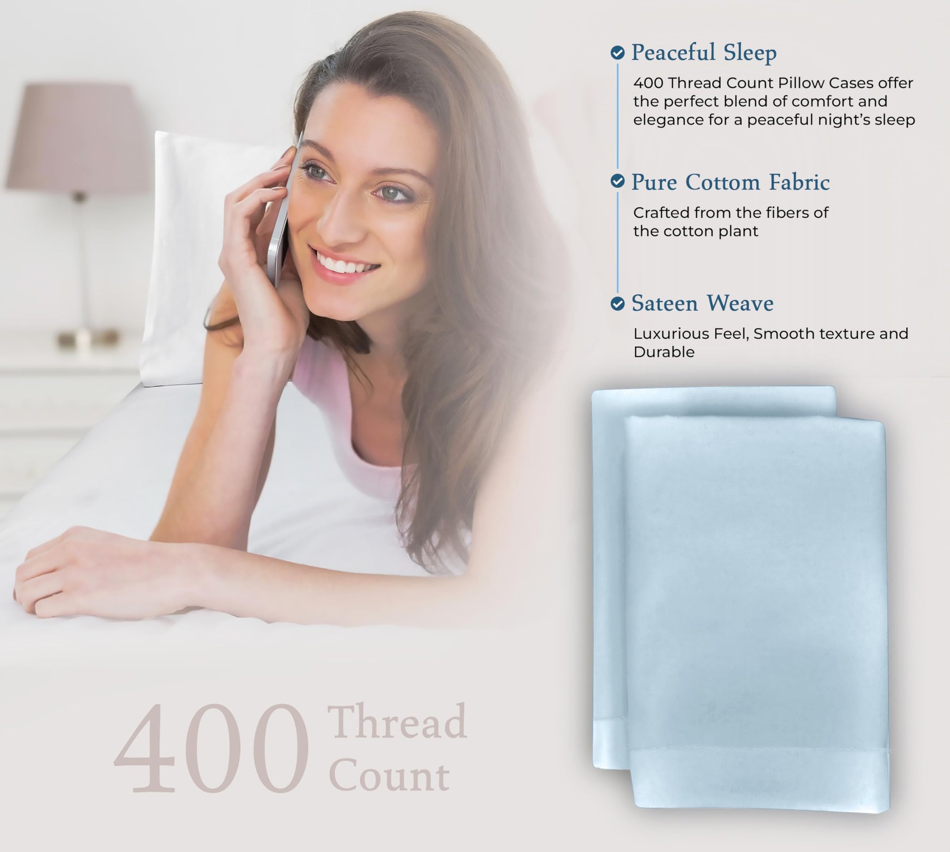 """A Good Night Sleep Is Just A Moment Away"" Royale Linens 400 Thread Count Sateen Bed Sheet Sets Are Manufactured Using Finest Quality 100% American Grown Cotton. Making Them Breathable, Comfortable And Cozy. Royale Linen Sheet Set Comes In 4 Different Sizes Twin Full Queen King Queen Sheet Set Include: 1 Flat Sheet 90X102 Inches, 1 Fitted Sheet 60x80 Inches With 14 Inch Drop 2 Pillow Case 20X30 Inches With 4 Inch Hem And Envelop Closure. Royale Linens Queen Size Sateen Bed Sheets Are Breathable, Cool And Super Silky Soft. Fabric Is Processed To Make It Shrink And Fade Resistant. Perfect For Bedroom, Guest Room, Kids Room, Hotels. Great Gift Idea For Men And Women On Valentine's Day - Mother's Day- Father's Day And Christmas. Our 400 Thread Count Bed Sheet Sets Are Certified Standard 100 By Oeko?Tex. According To The Guidelines, These Products Are Tested For Harmful Substances And Produced In An Environment Friendly And Socially Responsible Manner. Also Sustainable In Accordance With Oeko-tex Guidelines. Care Instruction: Machine Wash Or Hand Wash Using Cold Water Along With A Mild Detergent Is Recommended For Extending The Life Of The Set Along With Retaining Its Comfortability. Washing At High Temperatures Causes Microfiber To Expand Which Results In The Trapped Dirt And Other Tiny Particles Being Released. If You Want To Hand Wash The Set, Then Consider Using A Soft-haired Brush To Rinse Thoroughly."