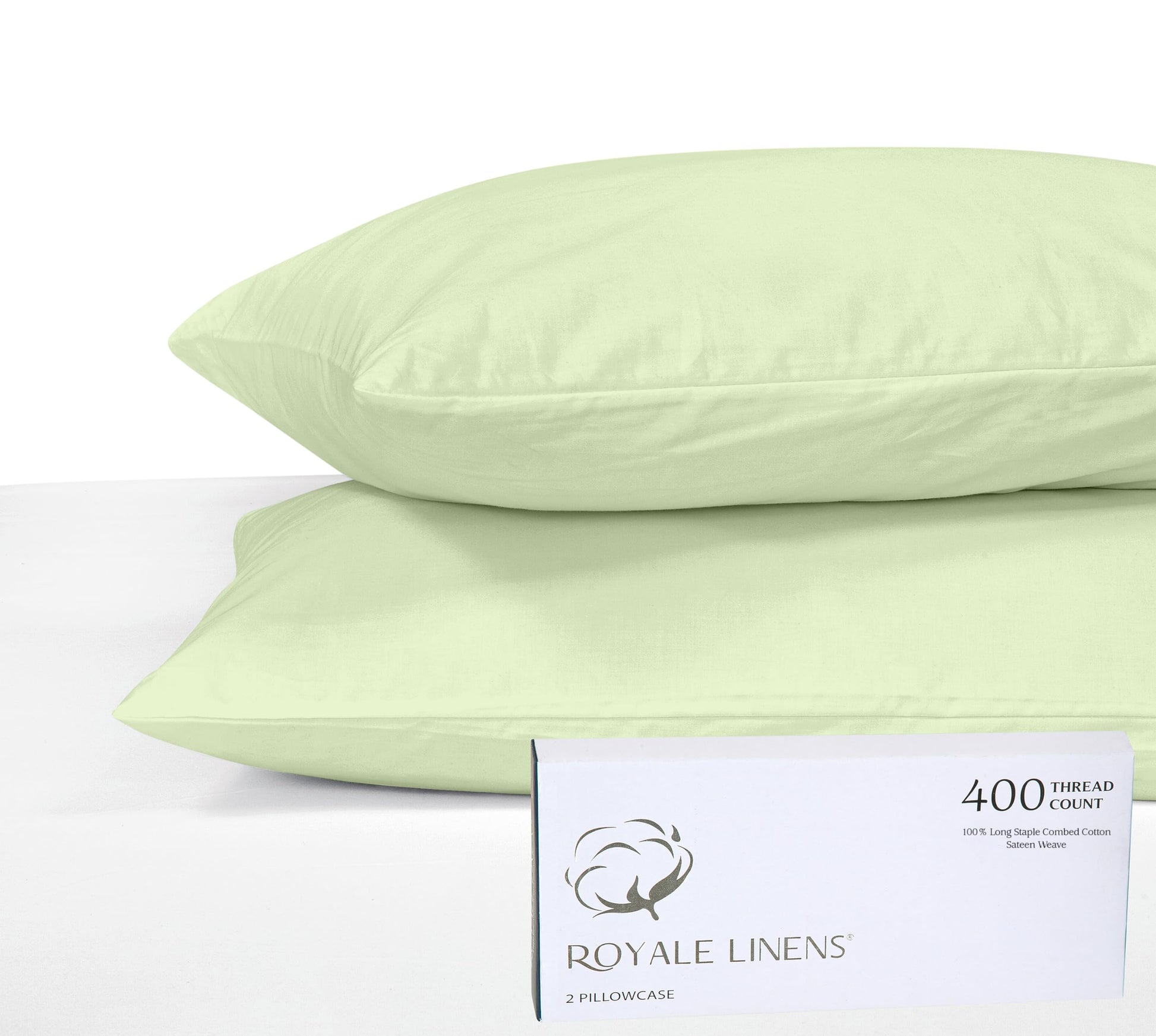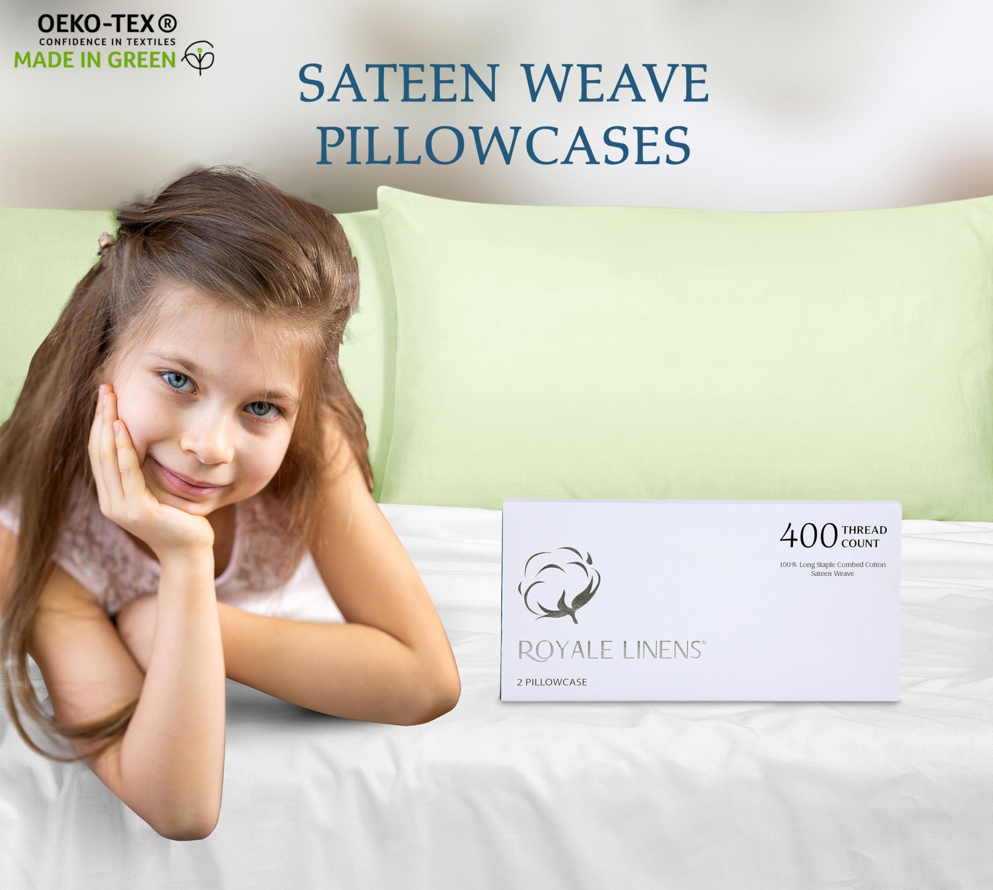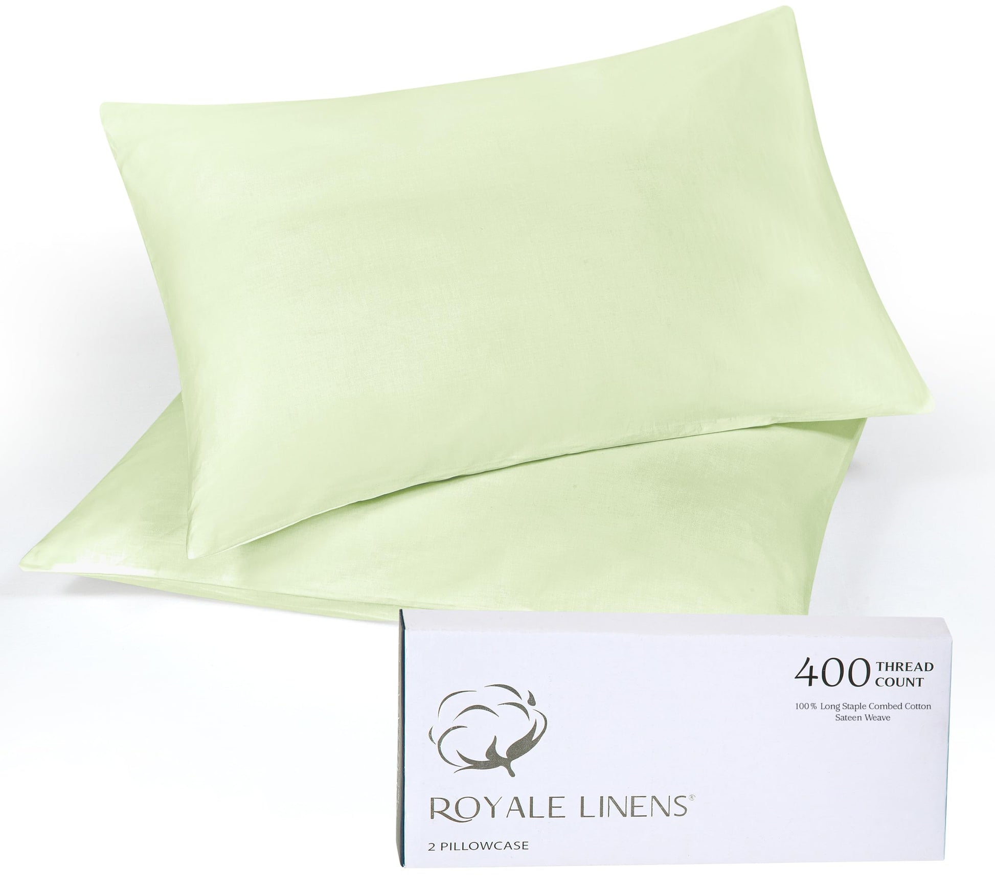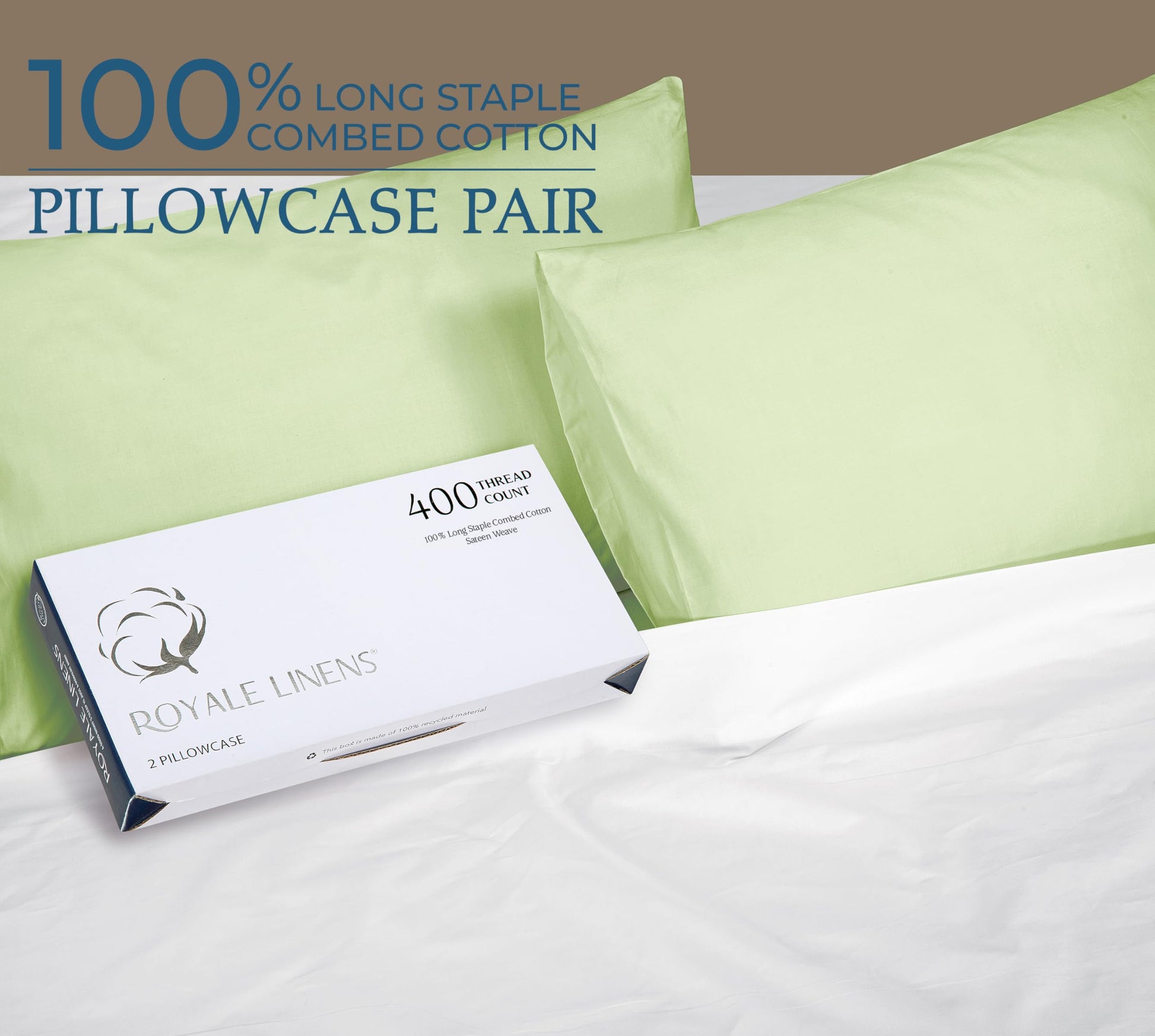 Royale Linens 400 Thread Count 100% American Grown Cotton Pillowcase Set - Luxury Sateen Pillow case - 20"x30" Inch - Soft & Smooth Set of 2 Green Pillowcases - ( Florentine Sage)