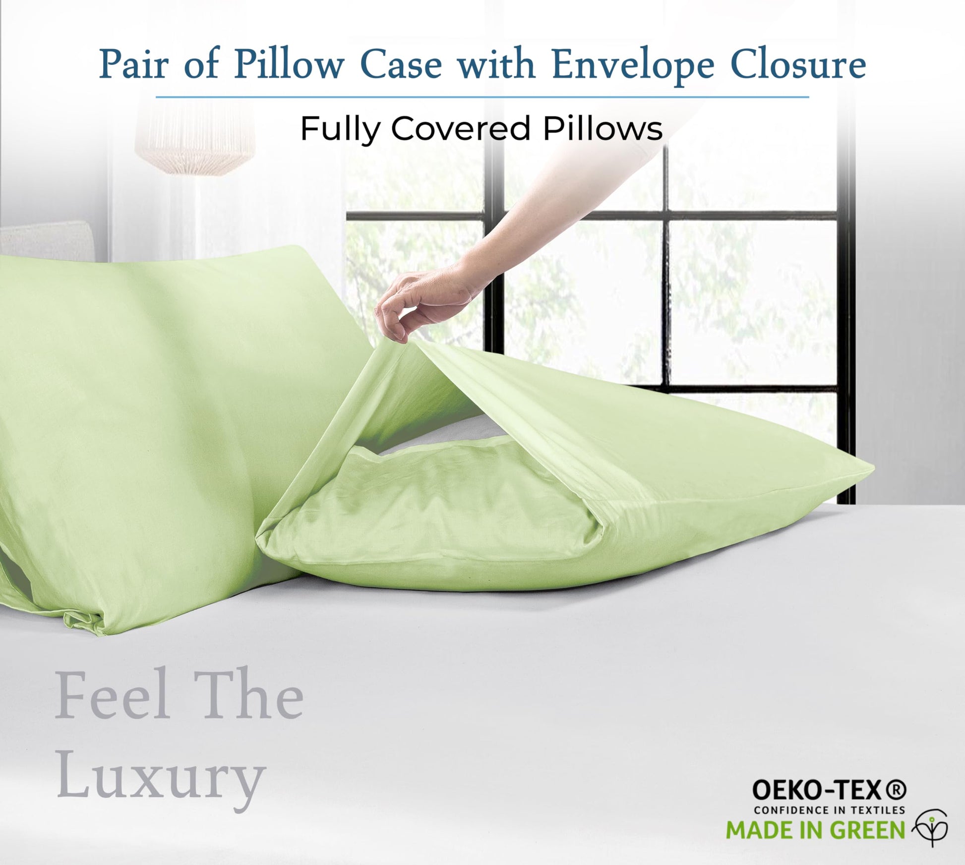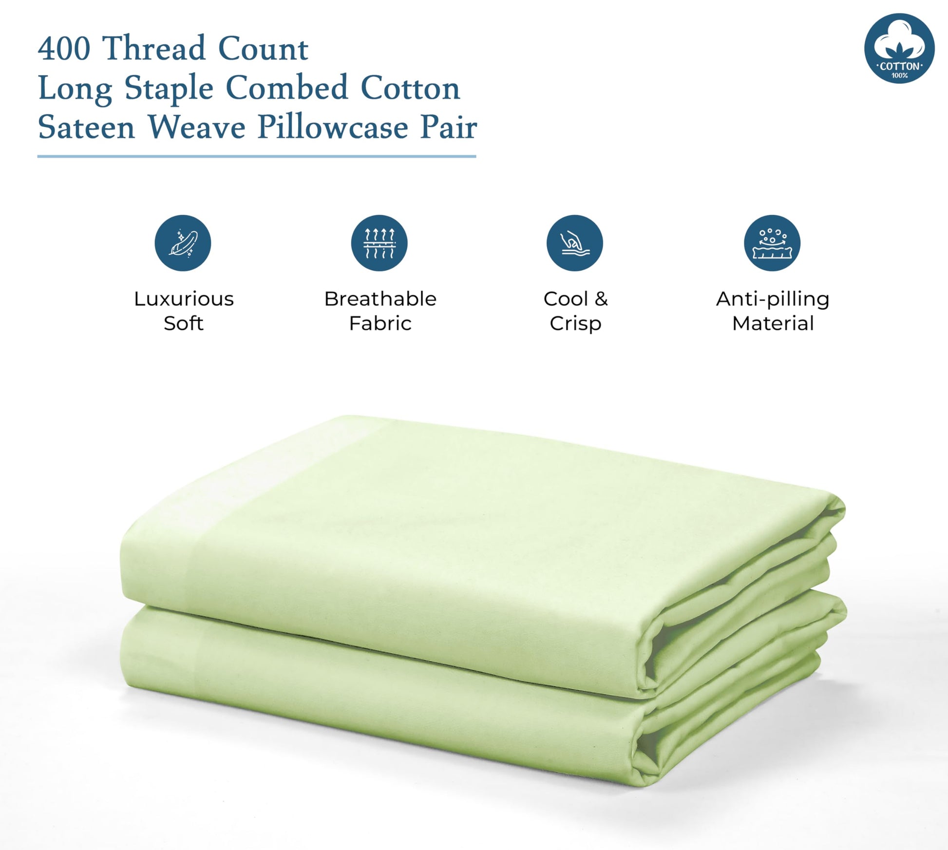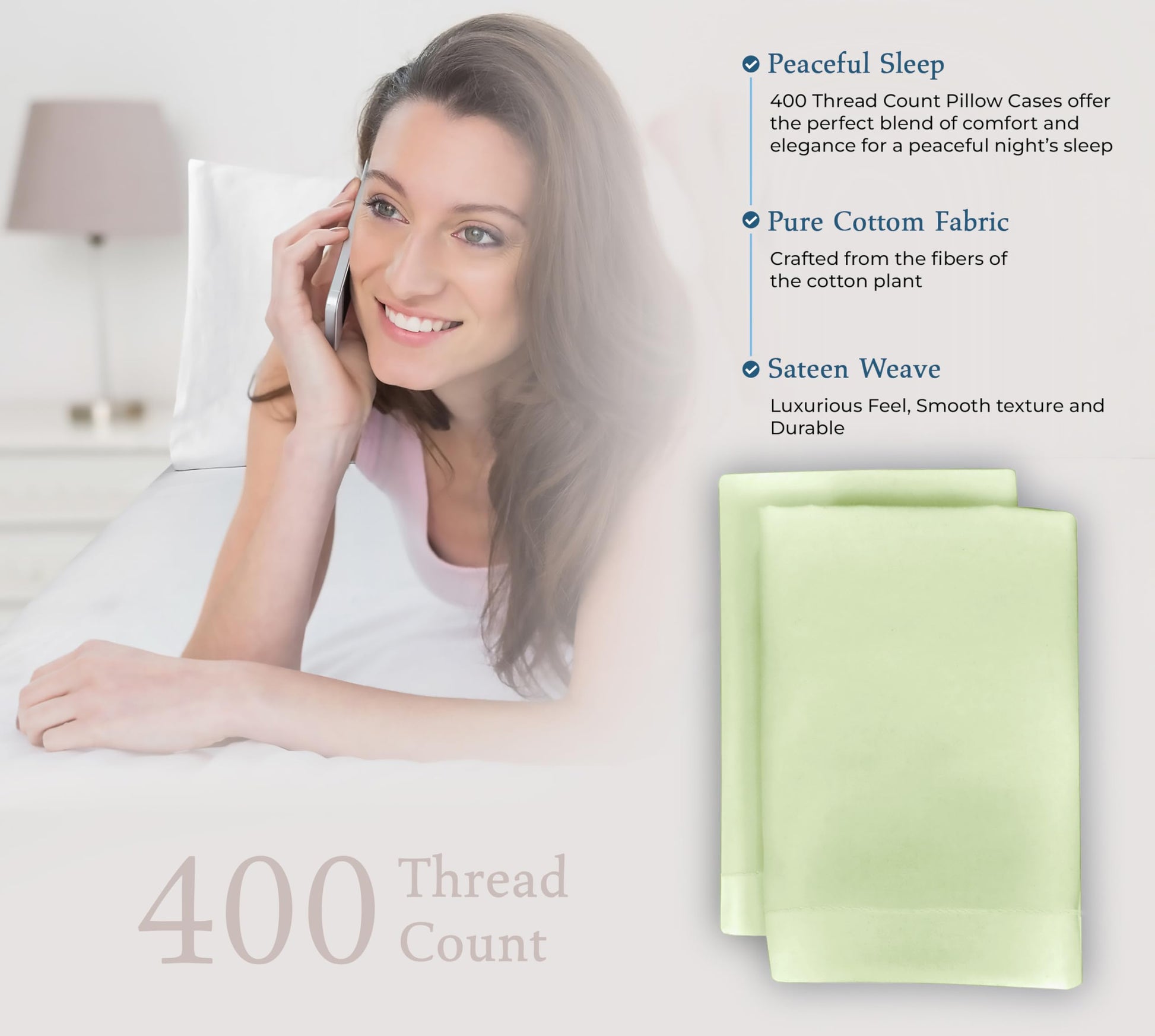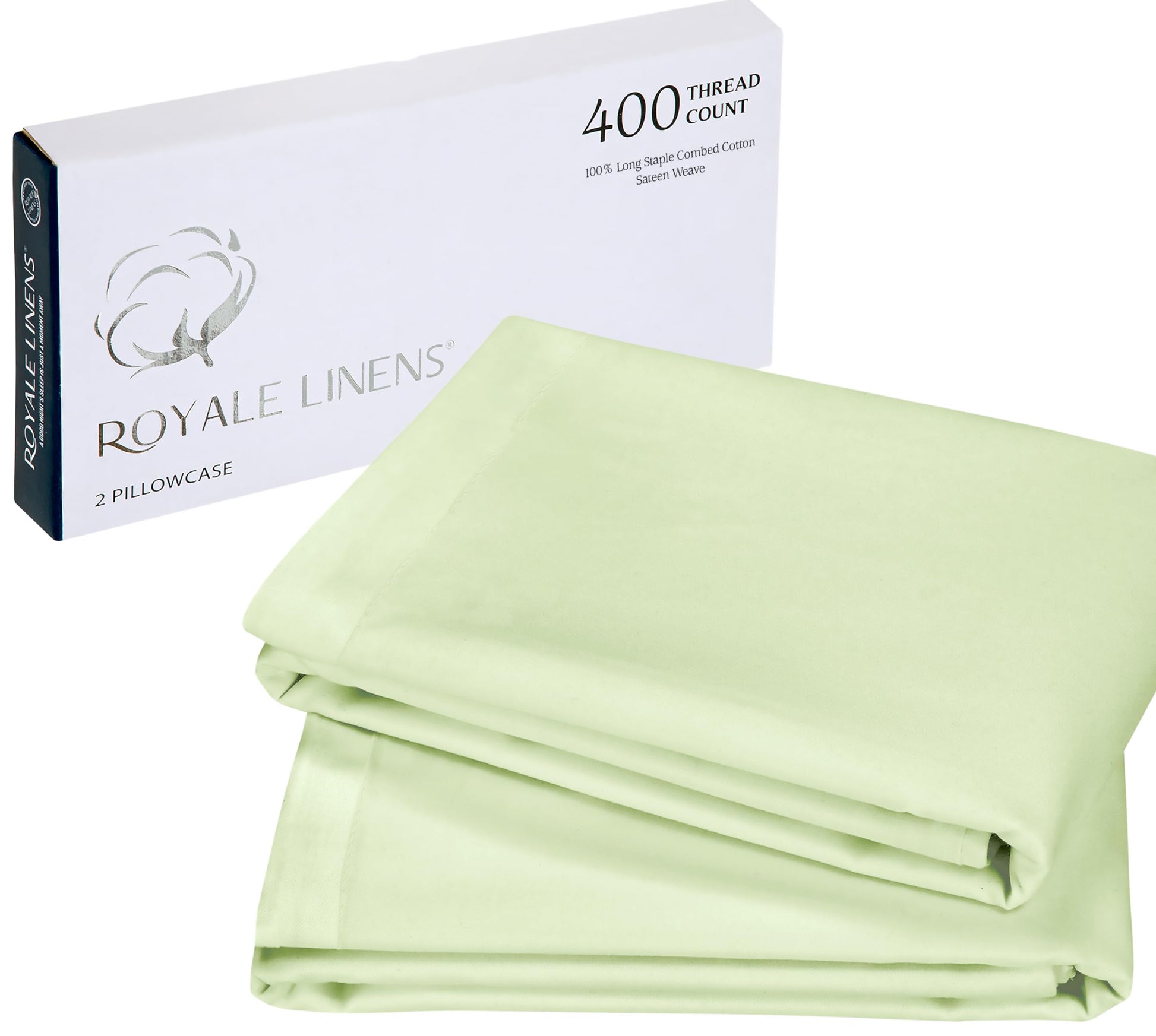 Royale Linens 400 Thread Count 100% American Grown Cotton Pillowcase Set - Luxury Sateen Pillow case - 20"x30" Inch - Soft & Smooth Set of 2 Green Pillowcases - ( Florentine Sage)