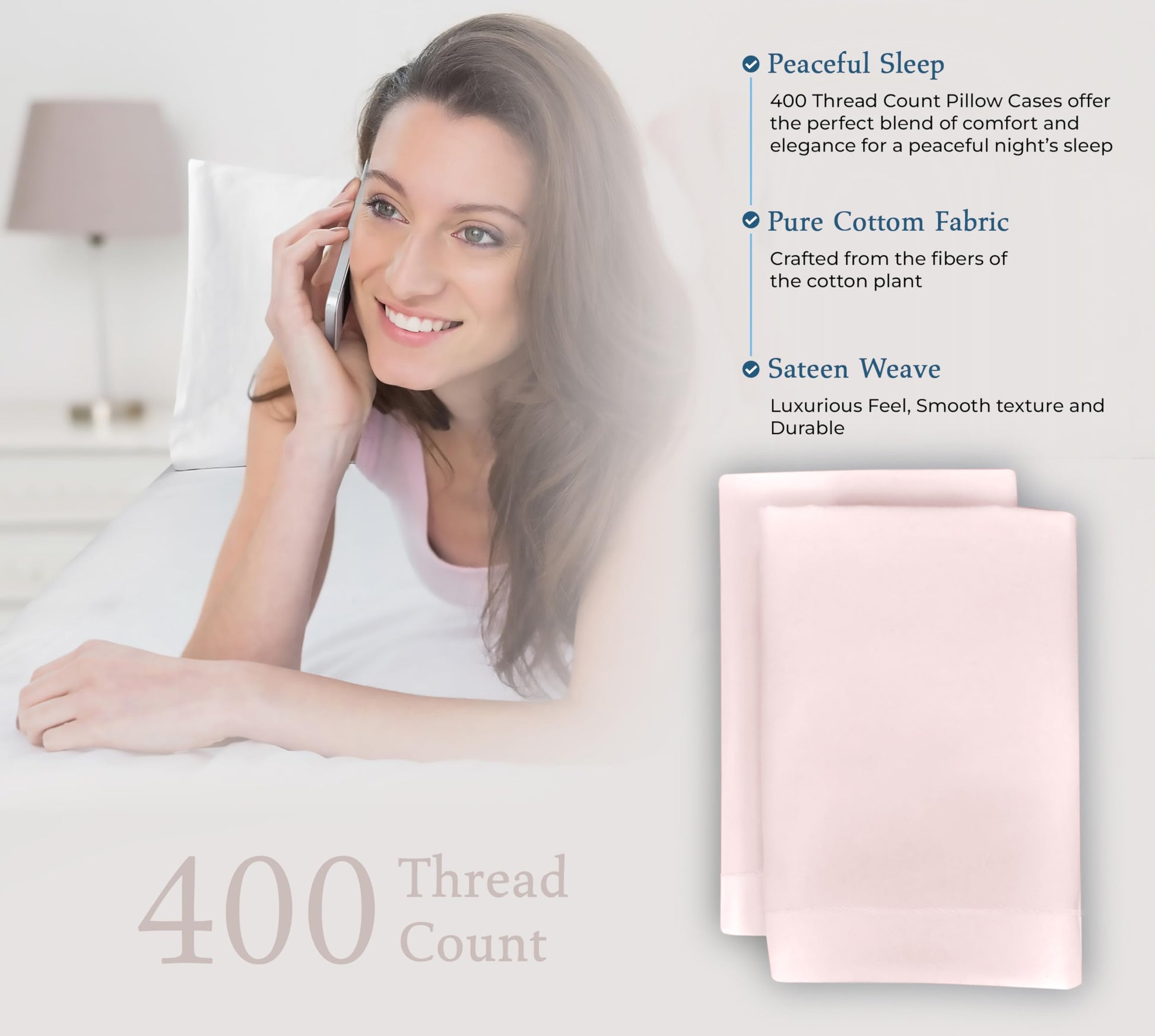 """A Good Night Sleep Is Just A Moment Away"" Royale Linens 400 Thread Count Sateen Bed Sheet Sets Are Manufactured Using Finest Quality 100% American Grown Cotton. Making Them Breathable, Comfortable And Cozy. Royale Linen Sheet Set Comes In 4 Different Sizes Twin Full Queen King Queen Sheet Set Include: 1 Flat Sheet 90X102 Inches, 1 Fitted Sheet 60x80 Inches With 14 Inch Drop 2 Pillow Case 20X30 Inches With 4 Inch Hem And Envelop Closure. Royale Linens Queen Size Sateen Bed Sheets Are Breathable, Cool And Super Silky Soft. Fabric Is Processed To Make It Shrink And Fade Resistant. Perfect For Bedroom, Guest Room, Kids Room, Hotels. Great Gift Idea For Men And Women On Valentine's Day - Mother's Day- Father's Day And Christmas. Our 400 Thread Count Bed Sheet Sets Are Certified Standard 100 By Oeko?Tex. According To The Guidelines, These Products Are Tested For Harmful Substances And Produced In An Environment Friendly And Socially Responsible Manner. Also Sustainable In Accordance With Oeko-tex Guidelines. Care Instruction: Machine Wash Or Hand Wash Using Cold Water Along With A Mild Detergent Is Recommended For Extending The Life Of The Set Along With Retaining Its Comfortability. Washing At High Temperatures Causes Microfiber To Expand Which Results In The Trapped Dirt And Other Tiny Particles Being Released. If You Want To Hand Wash The Set, Then Consider Using A Soft-haired Brush To Rinse Thoroughly."