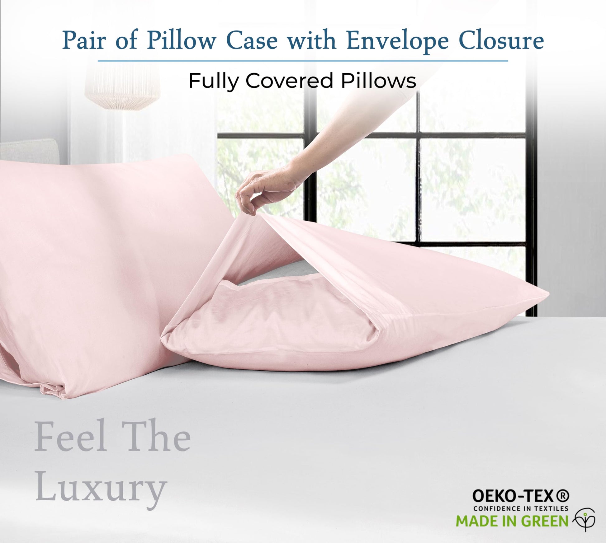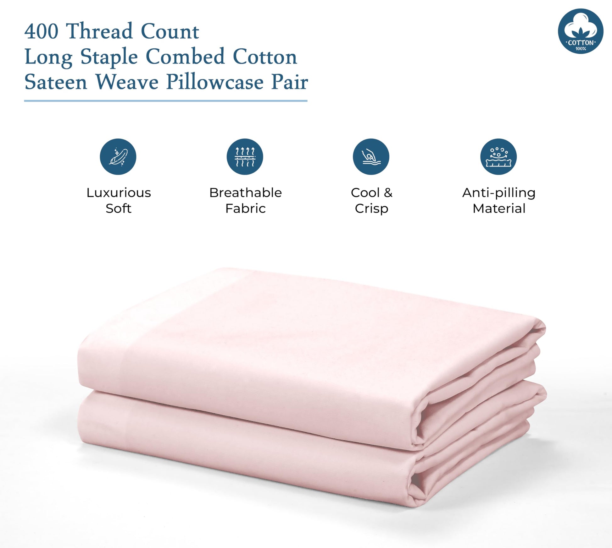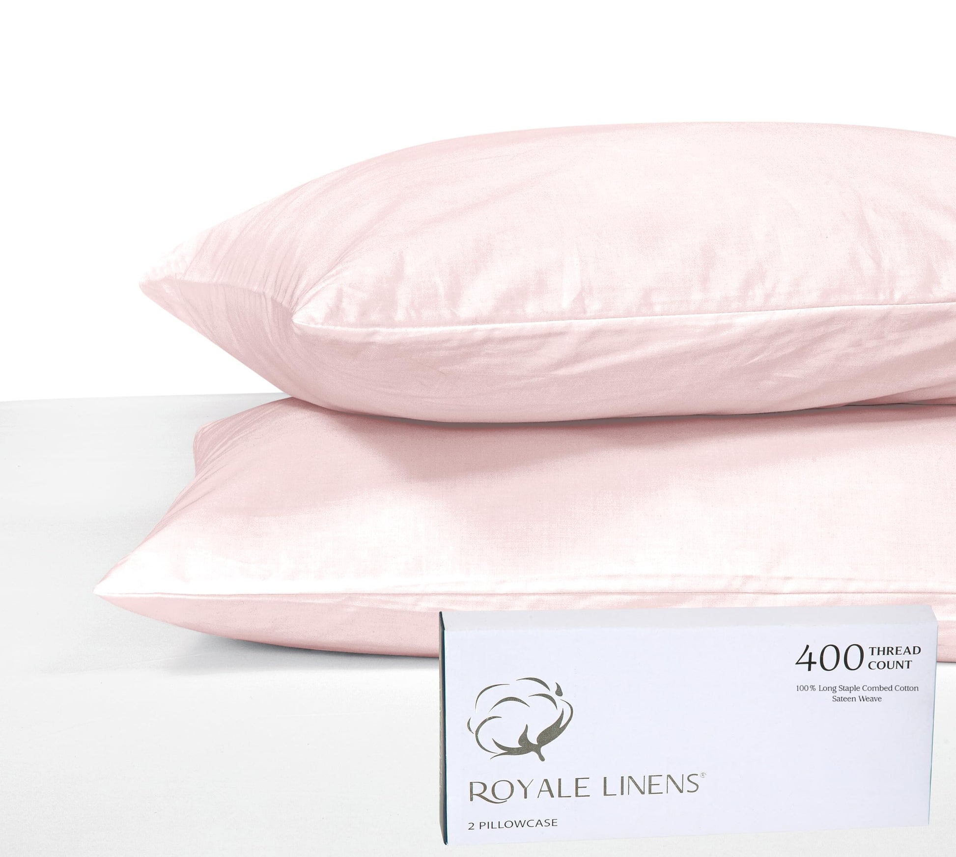 Royale Linens 400 Thread Count 100% American Grown Cotton Pillowcase Set - Luxury Sateen Pillow case - 20"x30" Inch - Soft & Smooth Set of 2 Pink Pillowcases - ( Kyoto Blush)