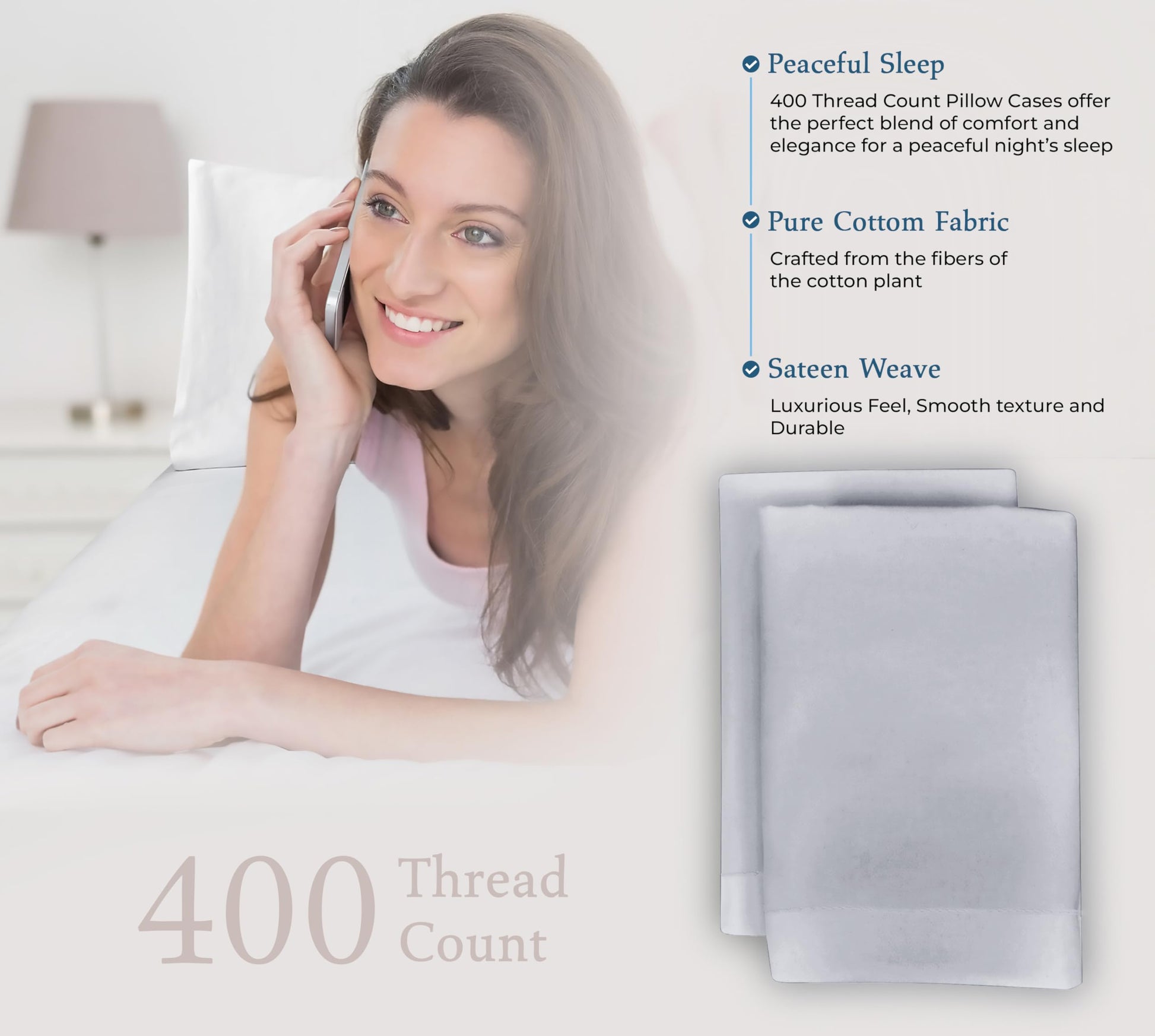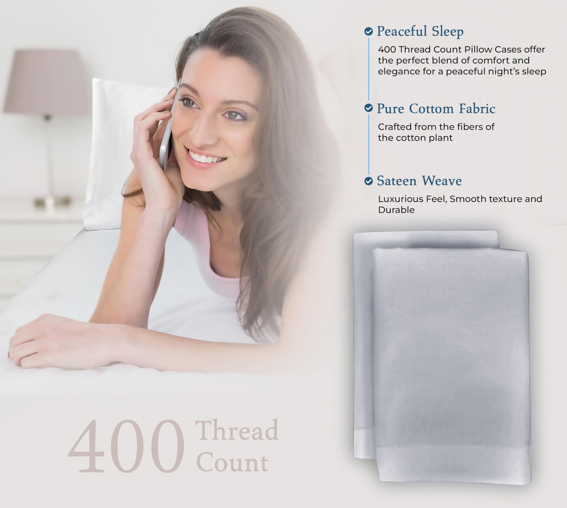 """A Good Night Sleep Is Just A Moment Away"" Royale Linens 400 Thread Count Sateen Bed Sheet Sets Are Manufactured Using Finest Quality 100% American Grown Cotton. Making Them Breathable, Comfortable And Cozy. Royale Linen Sheet Set Comes In 4 Different Sizes Twin Full Queen King Queen Sheet Set Include: 1 Flat Sheet 90X102 Inches, 1 Fitted Sheet 60x80 Inches With 14 Inch Drop 2 Pillow Case 20X30 Inches With 4 Inch Hem And Envelop Closure. Royale Linens Queen Size Sateen Bed Sheets Are Breathable, Cool And Super Silky Soft. Fabric Is Processed To Make It Shrink And Fade Resistant. Perfect For Bedroom, Guest Room, Kids Room, Hotels. Great Gift Idea For Men And Women On Valentine's Day - Mother's Day- Father's Day And Christmas. Our 400 Thread Count Bed Sheet Sets Are Certified Standard 100 By Oeko?Tex. According To The Guidelines, These Products Are Tested For Harmful Substances And Produced In An Environment Friendly And Socially Responsible Manner. Also Sustainable In Accordance With Oeko-tex Guidelines. Care Instruction: Machine Wash Or Hand Wash Using Cold Water Along With A Mild Detergent Is Recommended For Extending The Life Of The Set Along With Retaining Its Comfortability. Washing At High Temperatures Causes Microfiber To Expand Which Results In The Trapped Dirt And Other Tiny Particles Being Released. If You Want To Hand Wash The Set, Then Consider Using A Soft-haired Brush To Rinse Thoroughly."