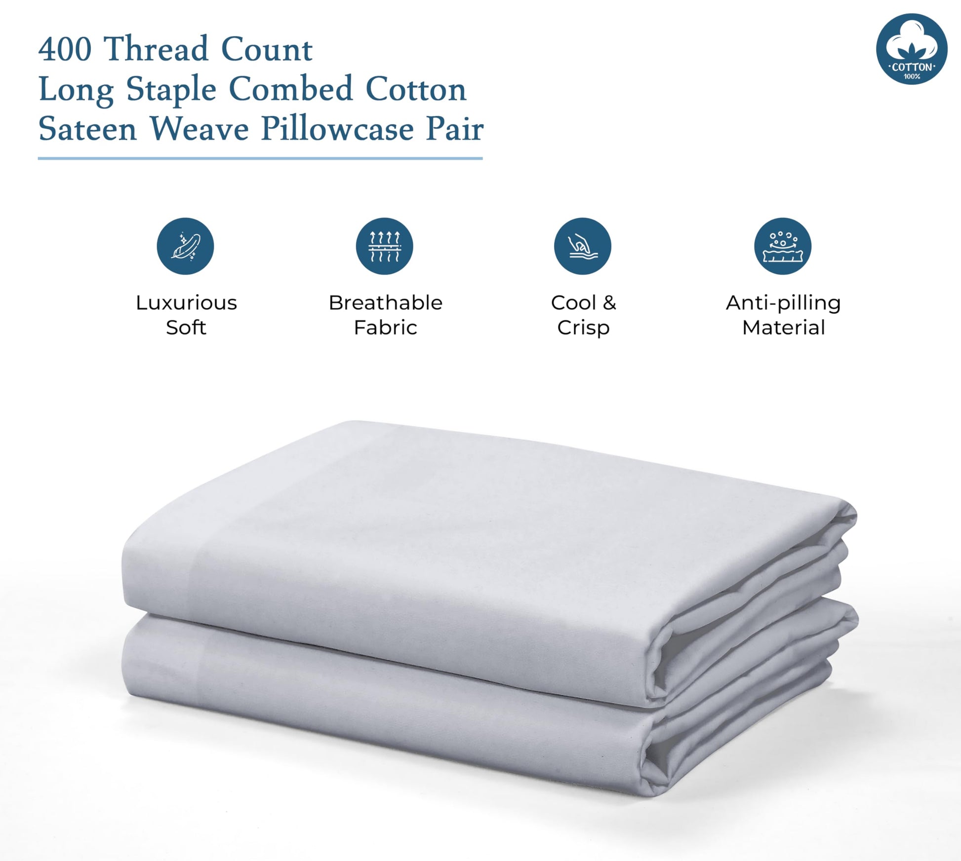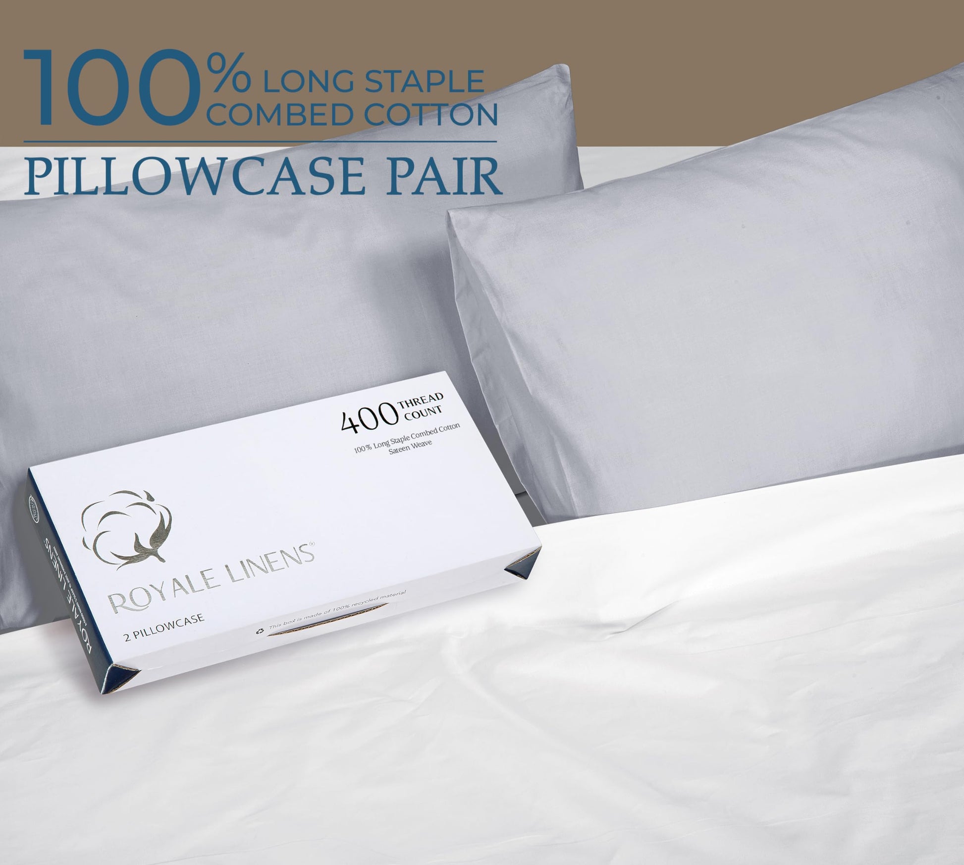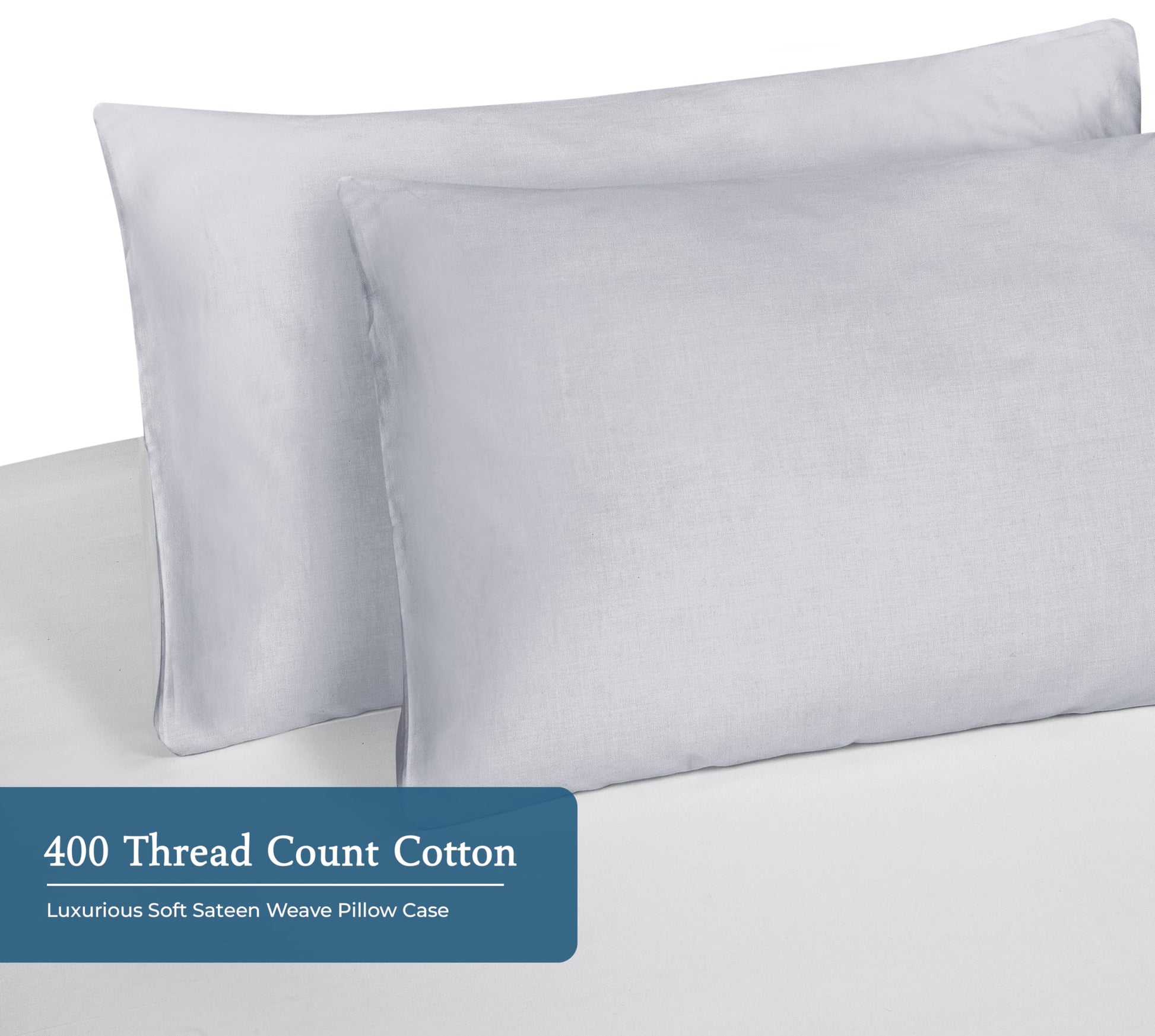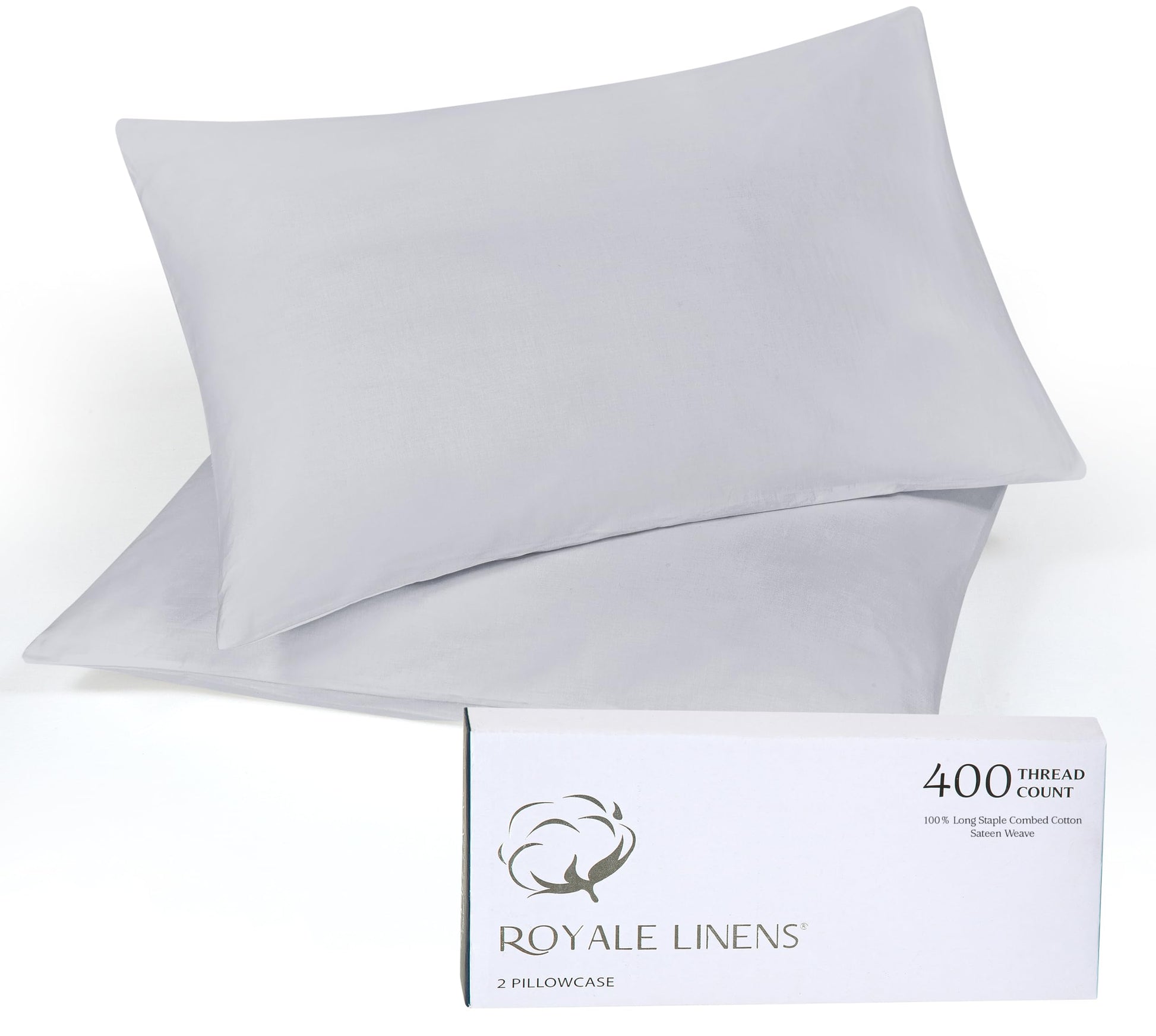 Royale Linens 400 Thread Count 100% American Grown Cotton Pillowcase Set - Luxury Sateen Pillow case - 20"x30" Inch - Soft & Smooth Set of 2 Silver Pillowcases - (Spanish Silver)