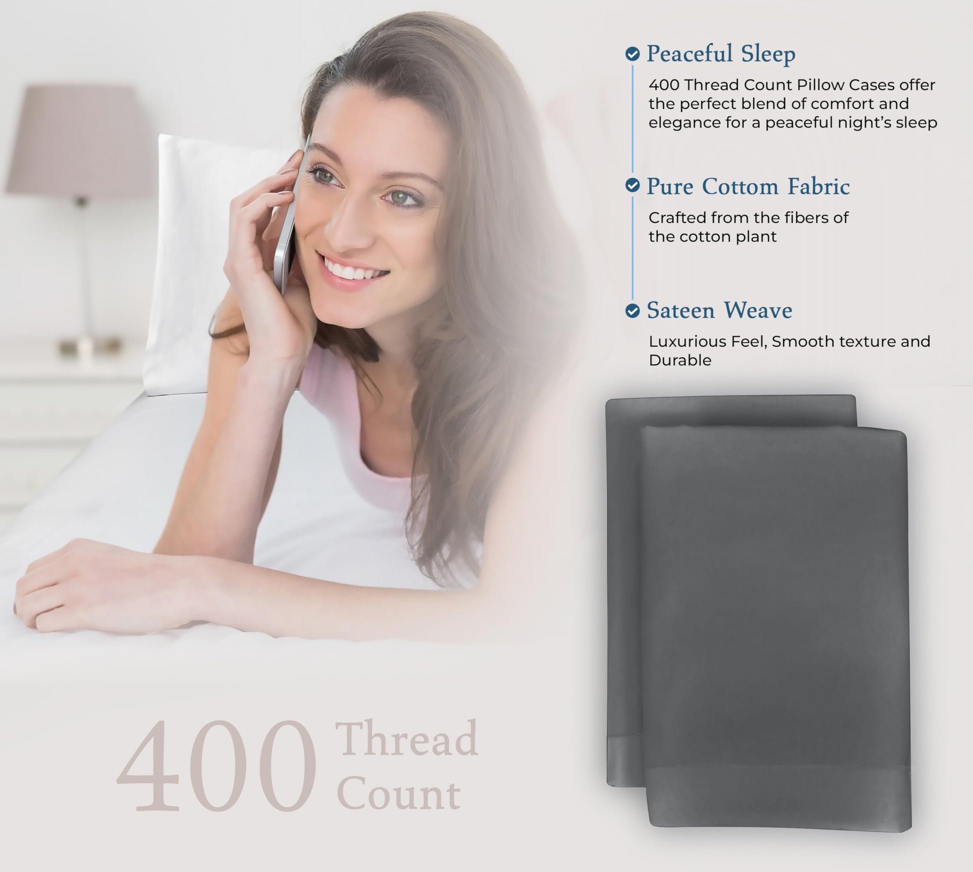 """A Good Night Sleep Is Just A Moment Away"" Royale Linens 400 Thread Count Sateen Bed Sheet Sets Are Manufactured Using Finest Quality 100% American Grown Cotton. Making Them Breathable, Comfortable And Cozy. Royale Linen Sheet Set Comes In 4 Different Sizes Twin Full Queen King Queen Sheet Set Include: 1 Flat Sheet 90X102 Inches, 1 Fitted Sheet 60x80 Inches With 14 Inch Drop 2 Pillow Case 20X30 Inches With 4 Inch Hem And Envelop Closure. Royale Linens Queen Size Sateen Bed Sheets Are Breathable, Cool And Super Silky Soft. Fabric Is Processed To Make It Shrink And Fade Resistant. Perfect For Bedroom, Guest Room, Kids Room, Hotels. Great Gift Idea For Men And Women On Valentine's Day - Mother's Day- Father's Day And Christmas. Our 400 Thread Count Bed Sheet Sets Are Certified Standard 100 By Oeko?Tex. According To The Guidelines, These Products Are Tested For Harmful Substances And Produced In An Environment Friendly And Socially Responsible Manner. Also Sustainable In Accordance With Oeko-tex Guidelines. Care Instruction: Machine Wash Or Hand Wash Using Cold Water Along With A Mild Detergent Is Recommended For Extending The Life Of The Set Along With Retaining Its Comfortability. Washing At High Temperatures Causes Microfiber To Expand Which Results In The Trapped Dirt And Other Tiny Particles Being Released. If You Want To Hand Wash The Set, Then Consider Using A Soft-haired Brush To Rinse Thoroughly."