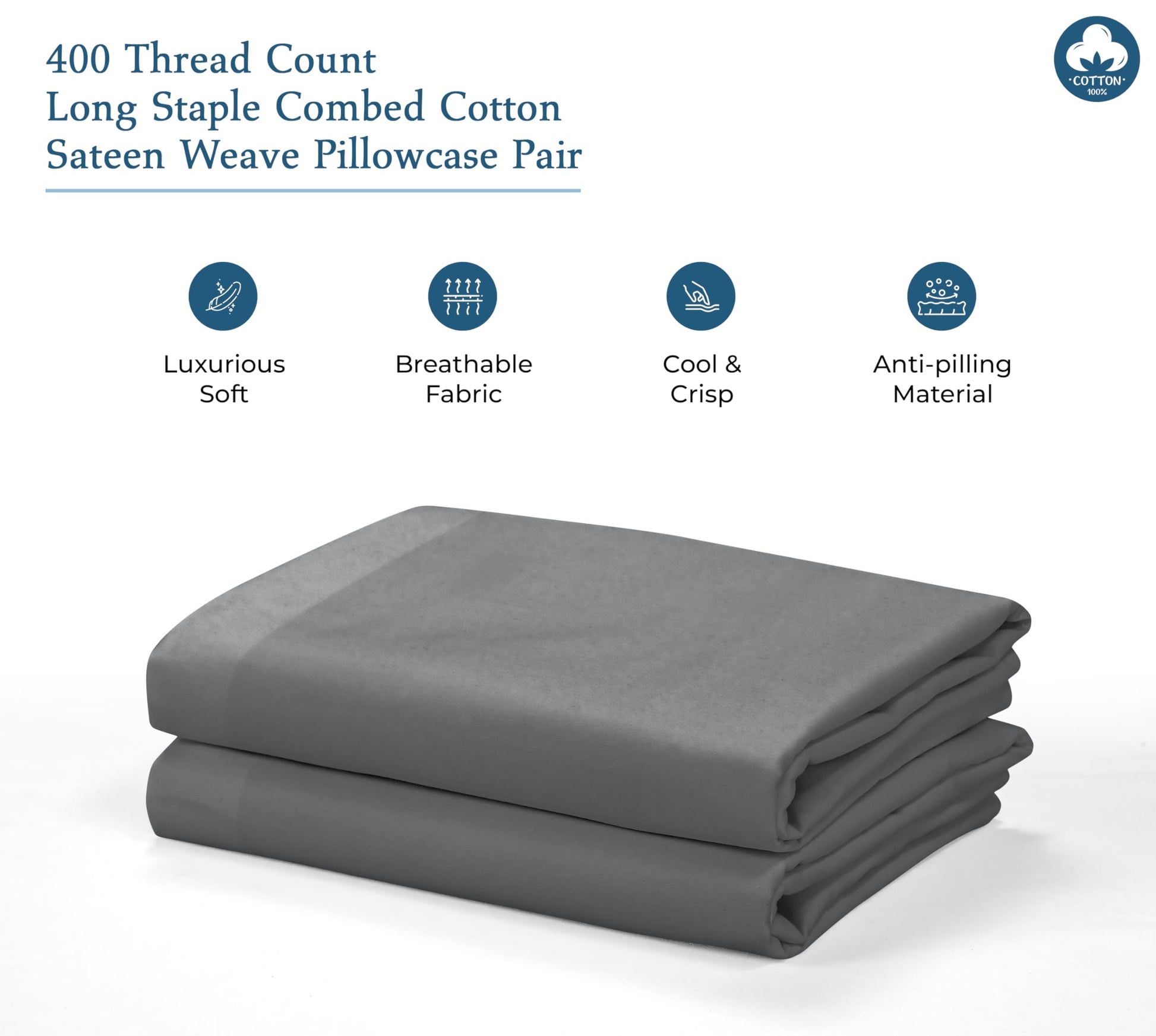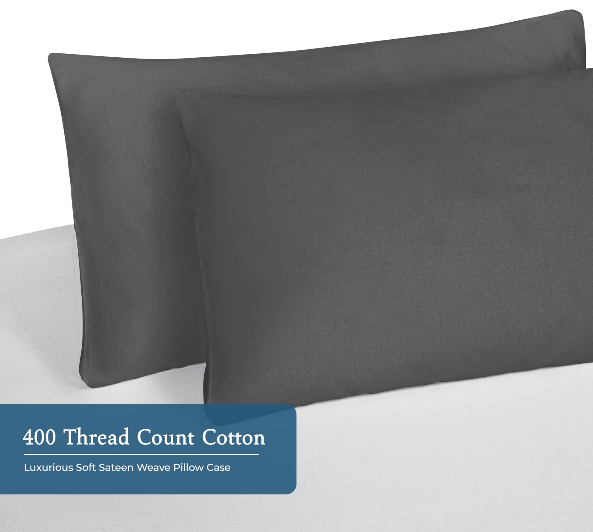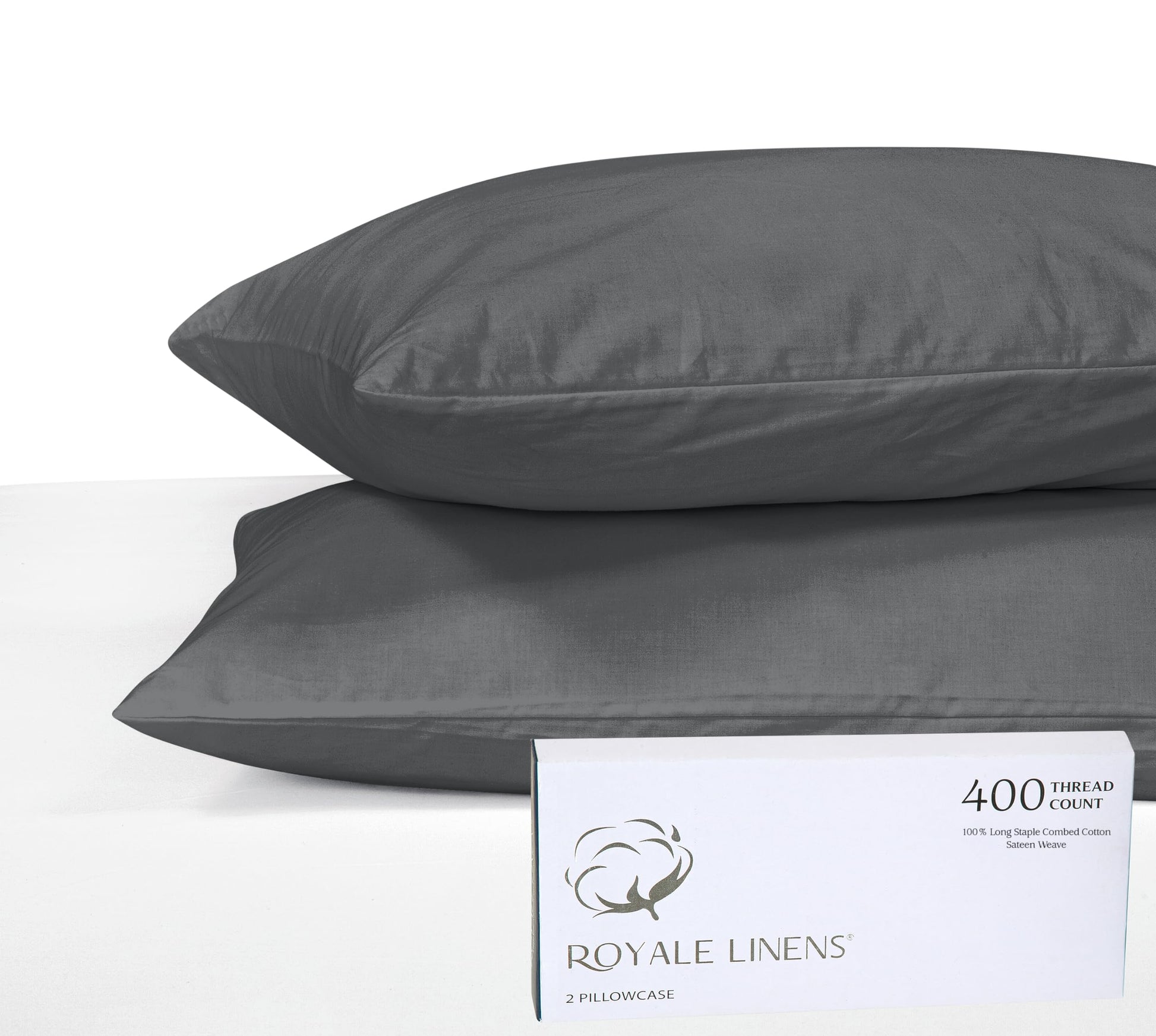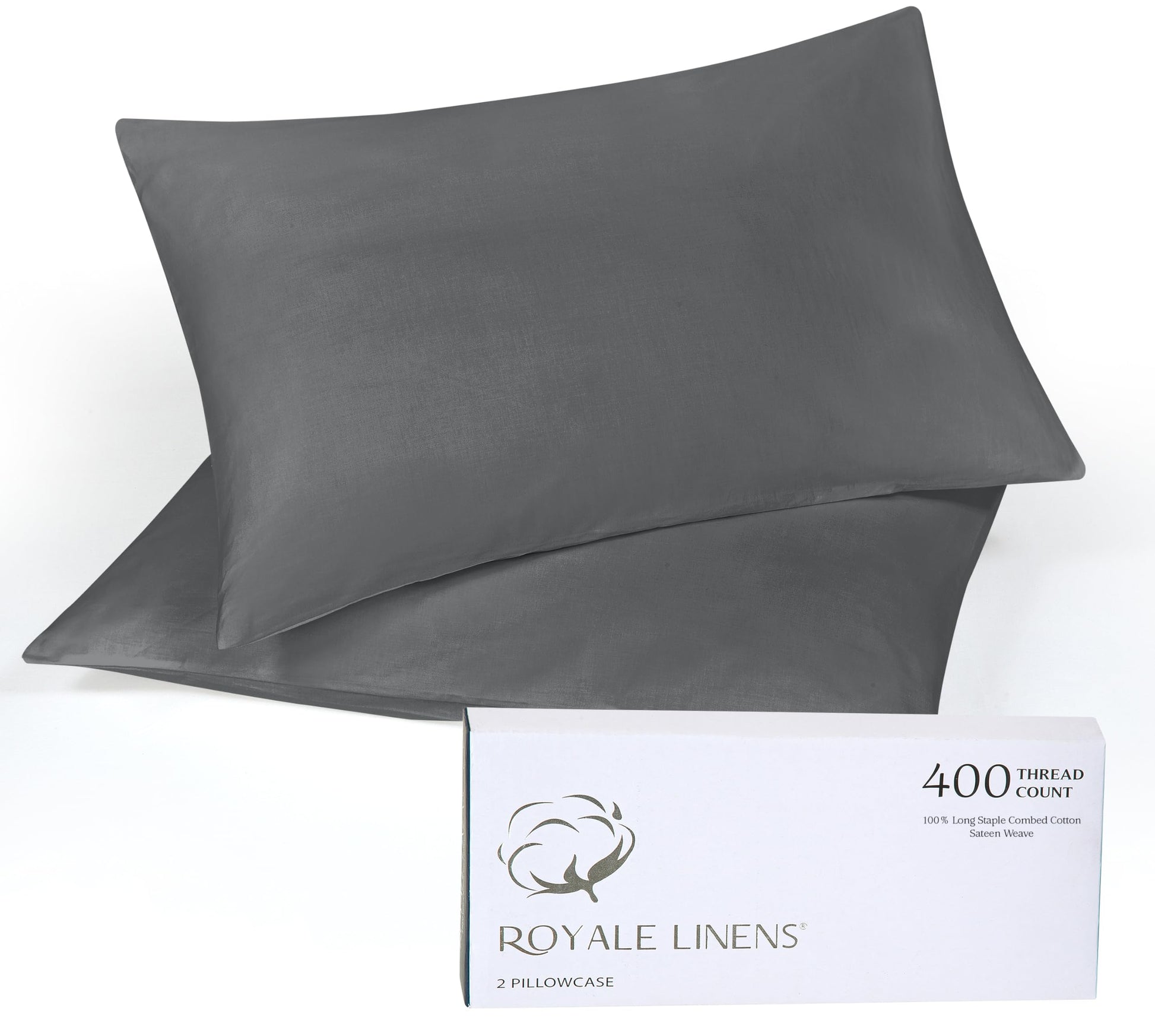 Royale Linens 400 Thread Count 100% American Grown Cotton Pillowcase Set - Luxury Sateen Pillow case - 20"x30" Inch - Soft & Smooth Set of 2 Grey Pillowcases - (Spanish Slate)
