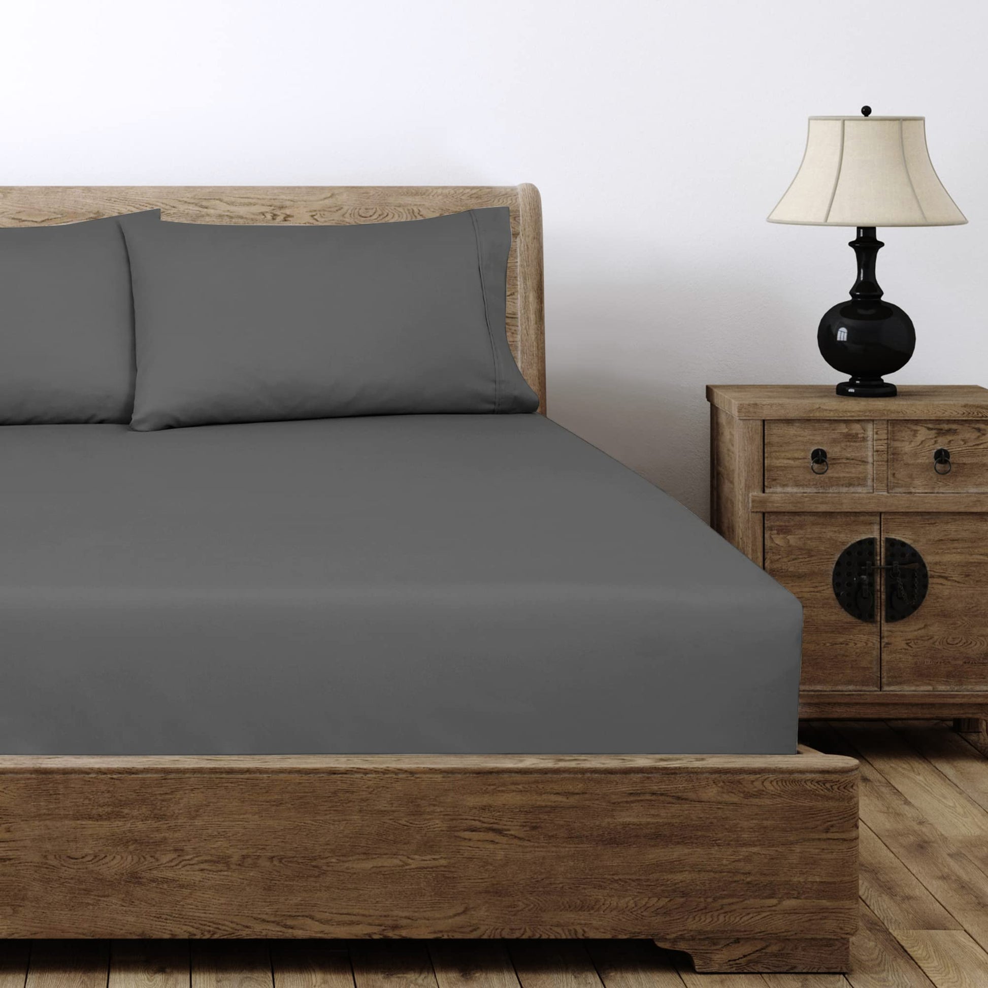 Royale Linens 6 Pack Fitted Sheet Set - Bottom Sheet - Ultra Soft & Breathable - Brushed 1800 Microfiber - Wrinkle & Stain Resistant - Hotel Quality Deep Pocket Stretch Up to 16" (Grey)