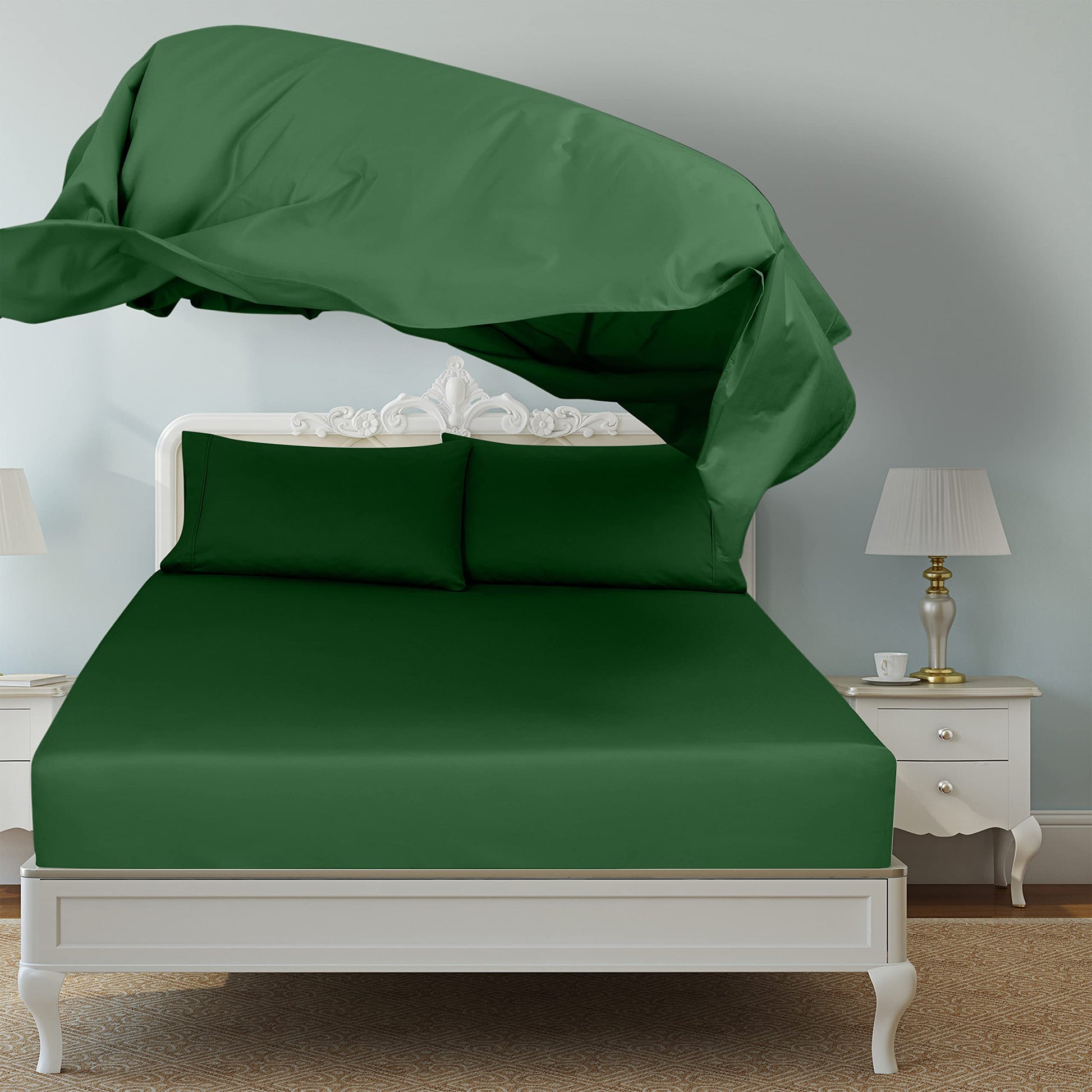 Royale Linen 2 Pack Bulk Flat Sheet - Top Sheet - Soft 1800 Microfiber - Wrinkle & Stain Resistant - for Hotel, Massage Table, Hospital, Dorm - Flat Sheet Sold Separately (Hunter Green)