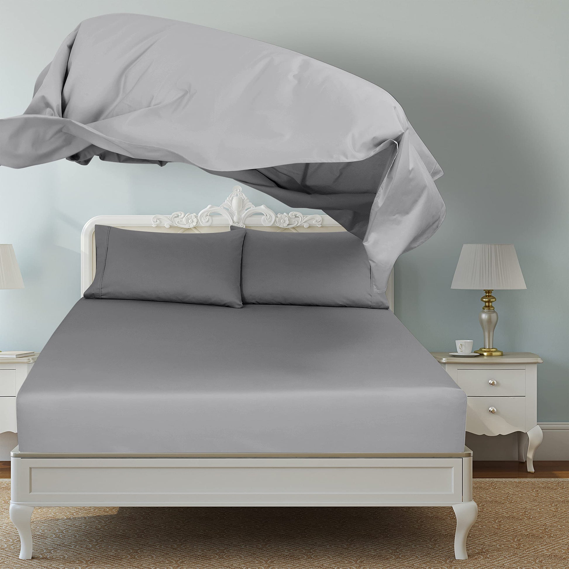 Royale Linen 2 Pack Bulk Flat Sheet Set - Top Sheet - Soft 1800 Microfiber - Wrinkle & Stain Resistant - for Hotel, Massage Table, Hospital, Dorm - Flat Sheet Sold Separately ( Silver)