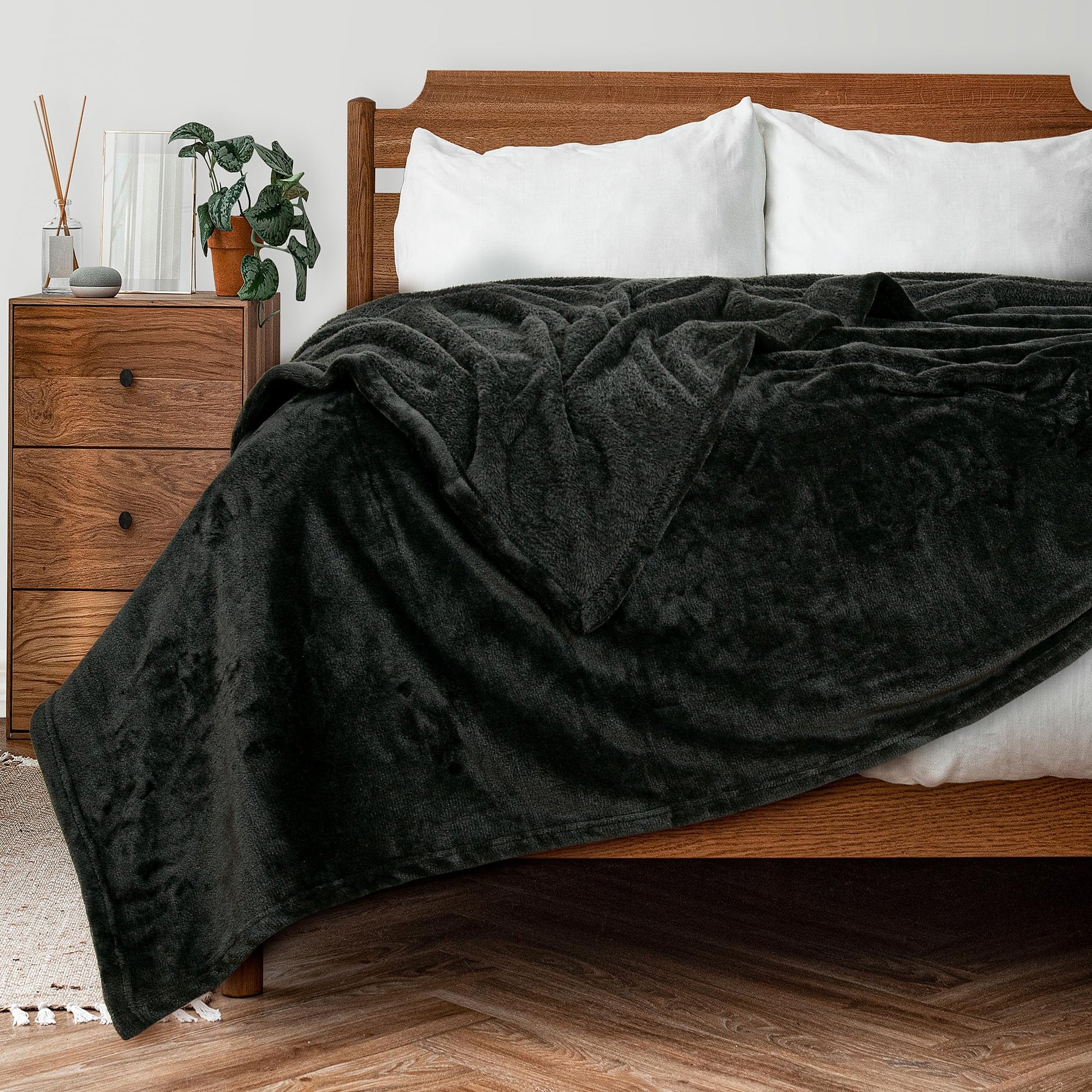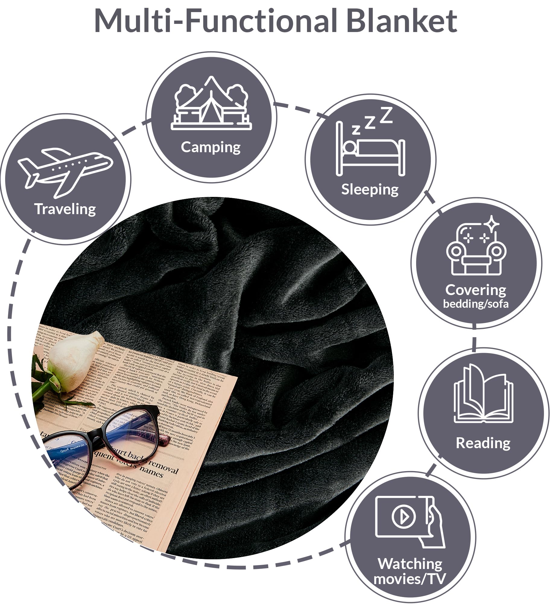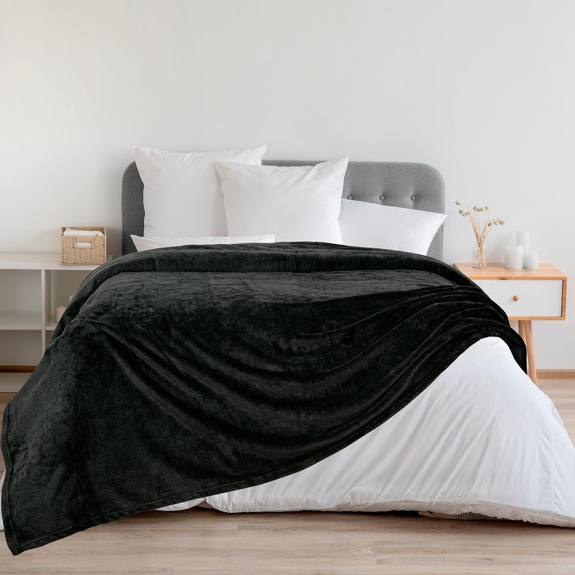 Royale Linens Fleece Blanket Kids Size - Fleece Bed Blanket - All Season Warm Lightweight Super Soft Anti Static Throw Blanket - Black Blanket - Hotel Quality- Blanket For Couch ( Black)