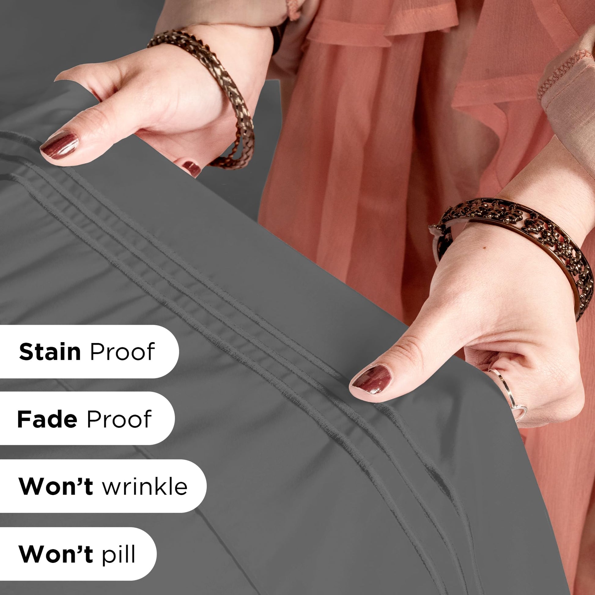Experience hotel luxury bed sheets reimagined with our premium microfiber bed sheet set, designed to transform your bedroom into a five-star retreat. Our Queen size bed sheets and other size options feature an innovative extra deep pocket Queen sheets design that's revolutionizing bedding comfort. Unlike standard sheets, these cooling sheets utilize advanced microfiber technology that rivals the feel of high-end cotton, while our extra deep fitted sheet ensures a perfect fit on any mattress up to 16 inches deep. Each bedding set is crafted using premium-grade microfiber sheets that deliver exceptional breathability and temperature regulation, making them ideal for year-round comfort. From our crisp Grey Sheet Set to an array of 14 other designer colors, these wrinkle free sheets maintain their pristine appearance wash after wash. The Queen Size Sheet Set, along with Twin, Twin XL, Full, King, and Cal King options, showcases our Extra Deep Queen Sheet Set engineering. Each hotel luxury bed sheets collection is OEKO-TEX certified and features our exclusive weaving process that ensures these sheets stay perfectly in place. The sheet set includes precisely measured components for all sizes, with decorative 4-inch embroidered hem and envelope closure pillowcases. Experience the perfect blend of luxury and durability with our expertly crafted bed sheets that combine style, comfort, and exceptional quality in every thread.