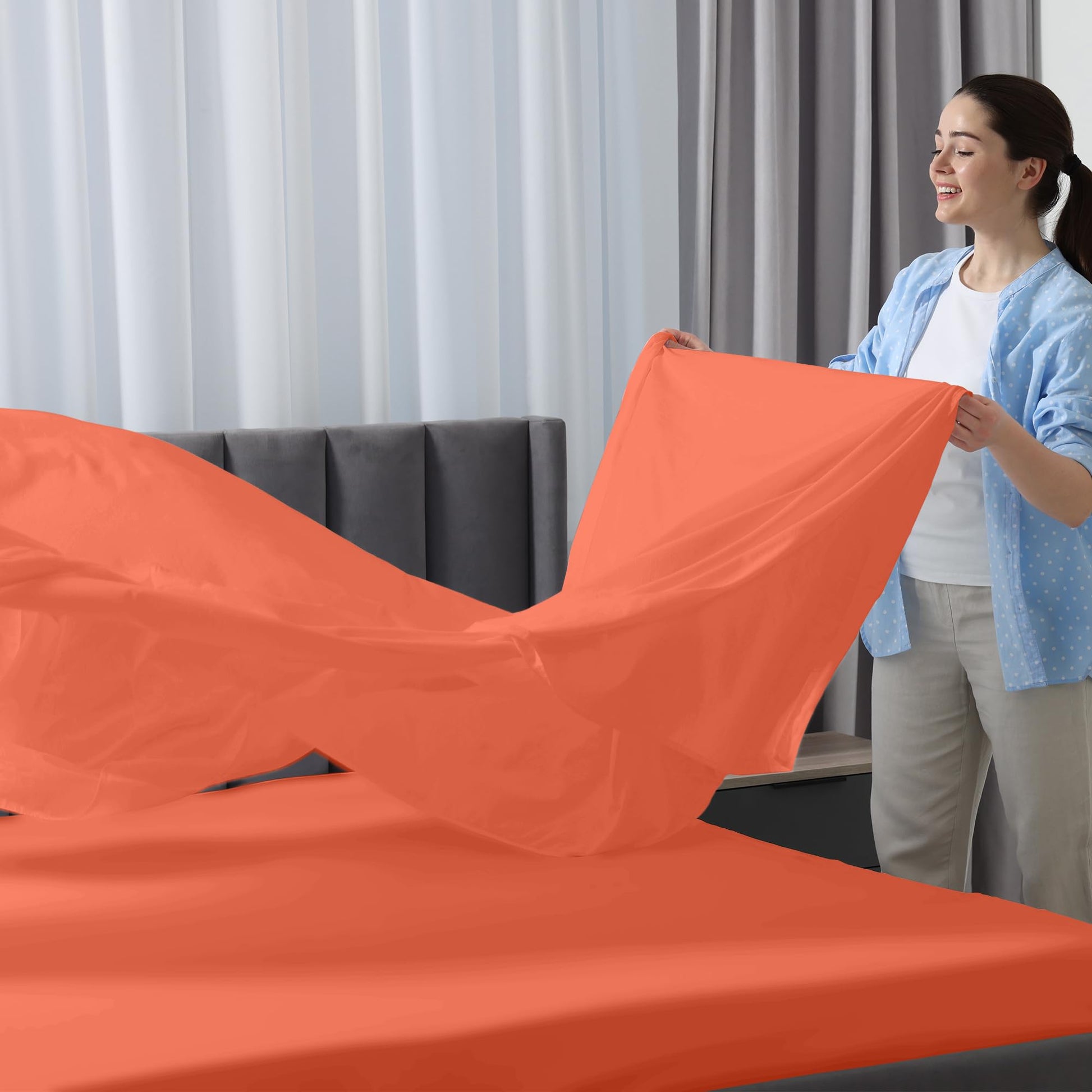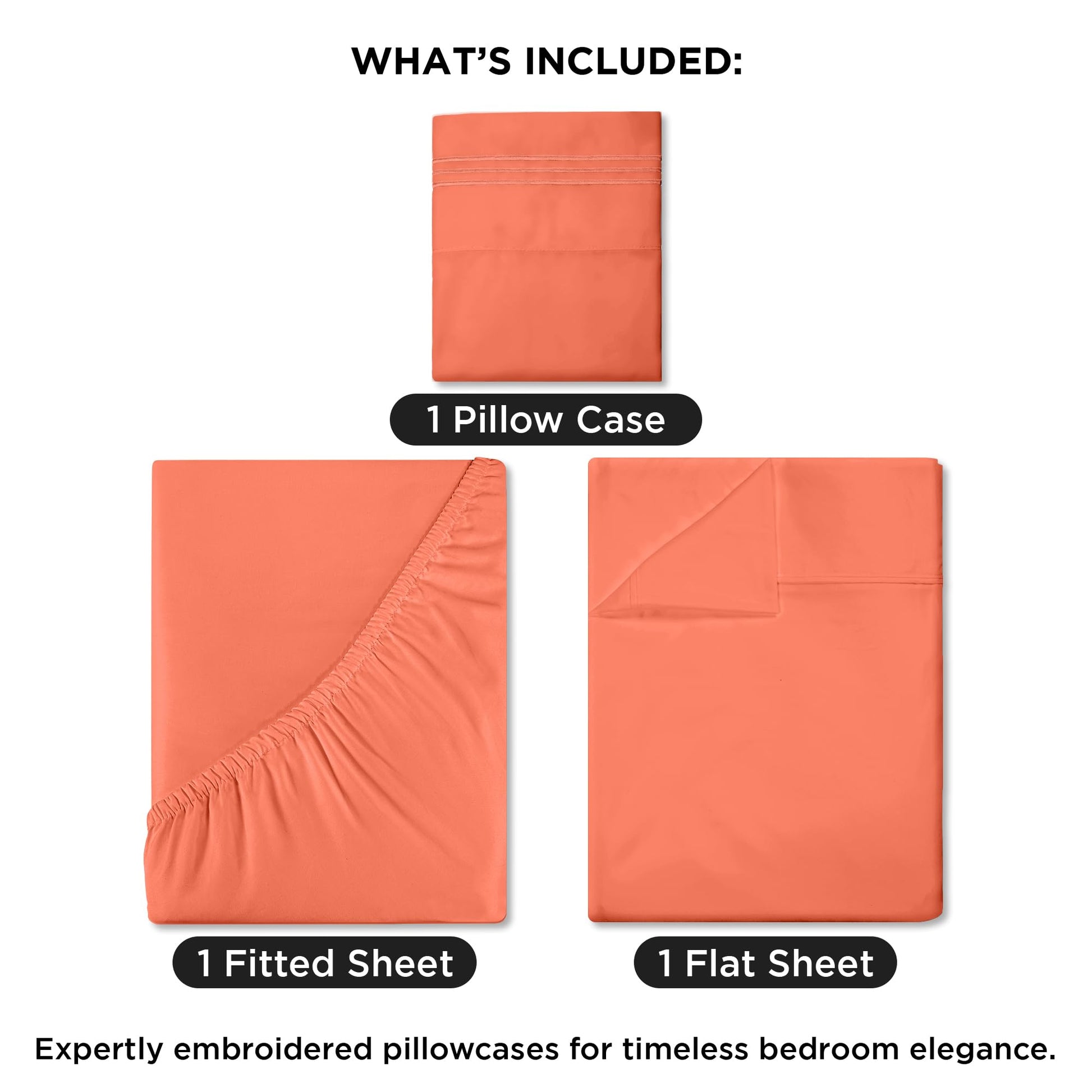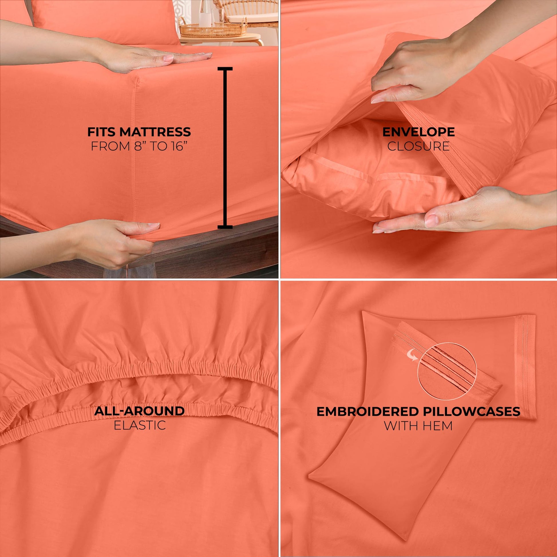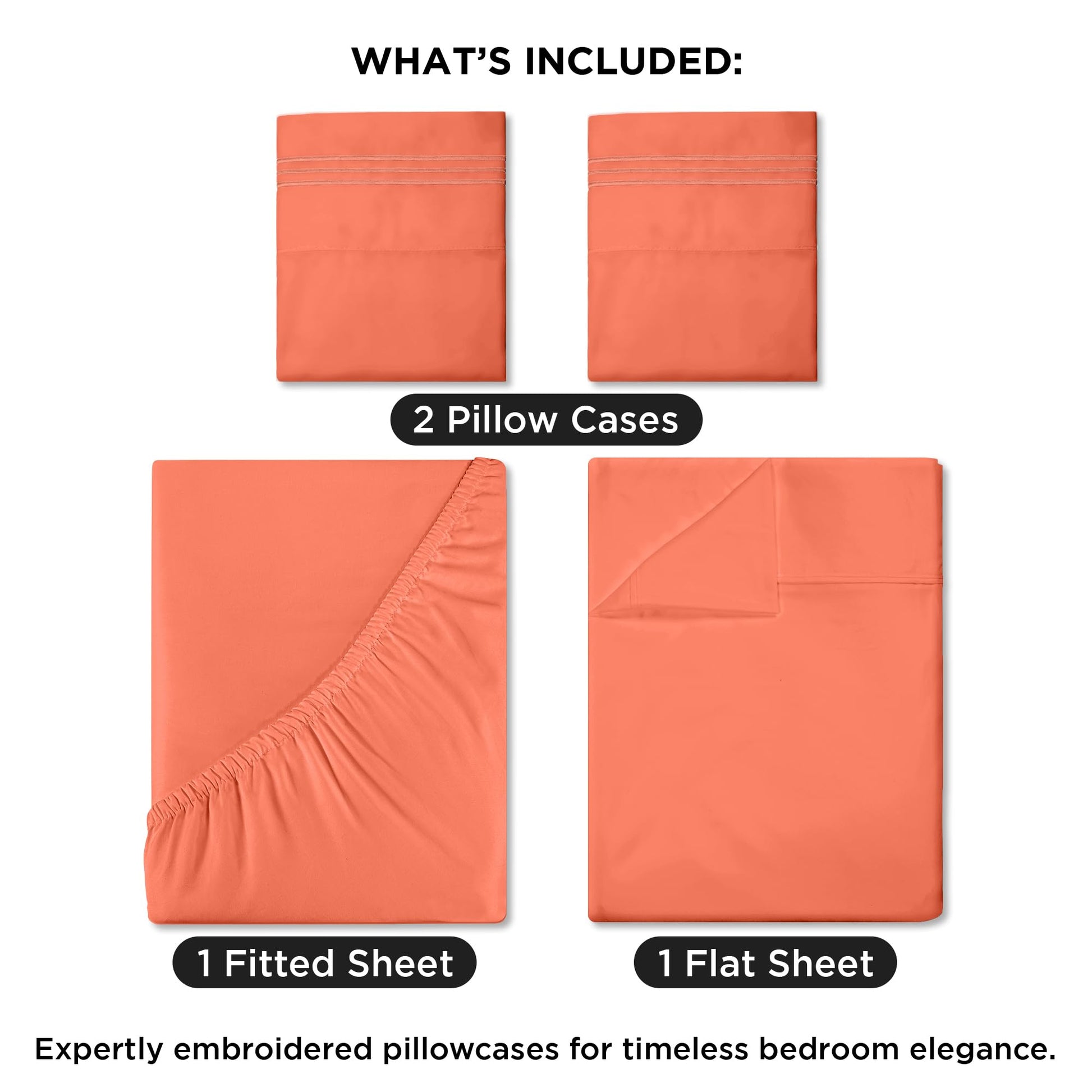 ROYALE LINENS - 4 Piece Bed Sheet - Soft Brushed Microfiber 1800 Bedding Set - 1 Fitted Sheet, 1 Flat Sheet, 2 Pillow case - Wrinkle & Fade Resistant Luxury Sheet Set (Coral)