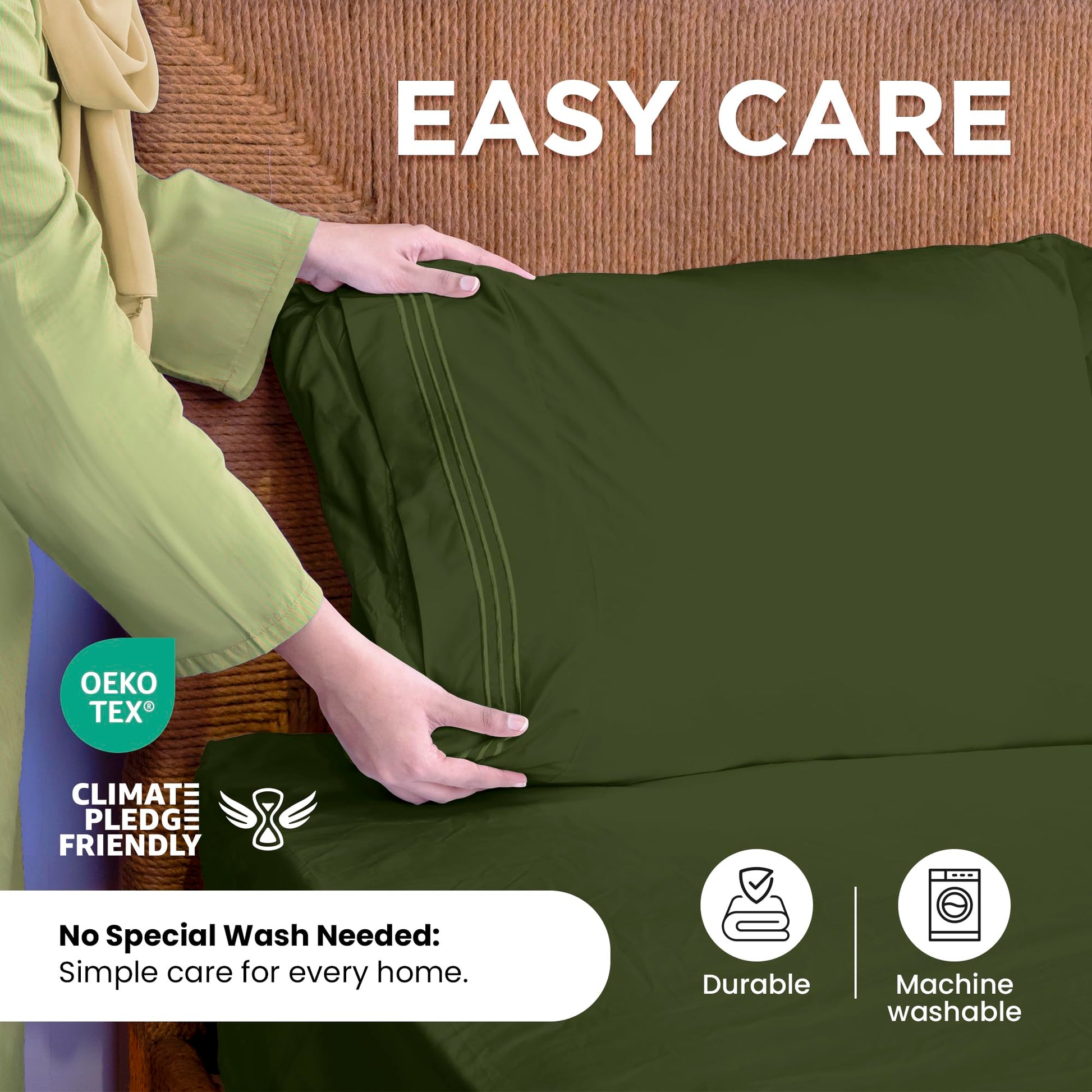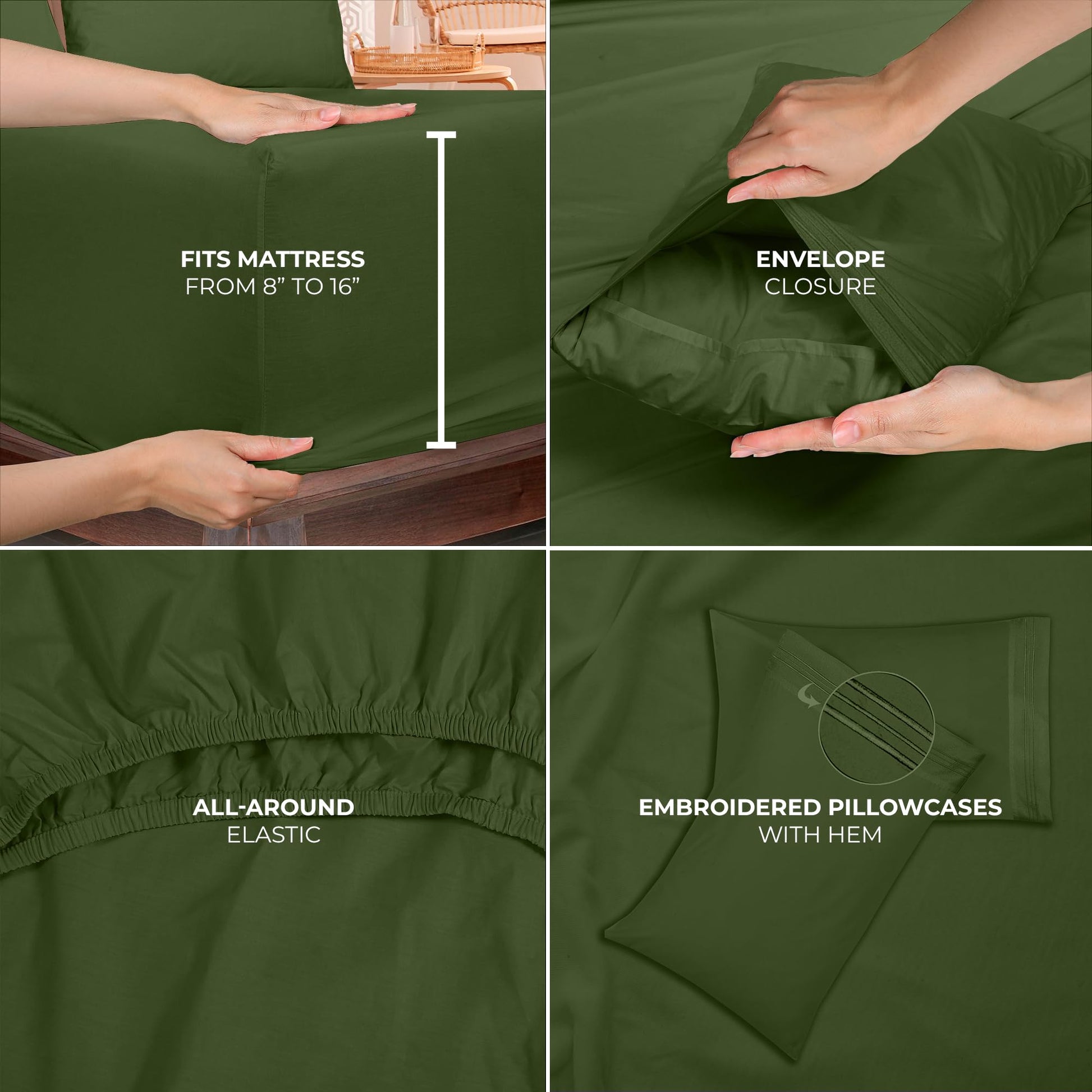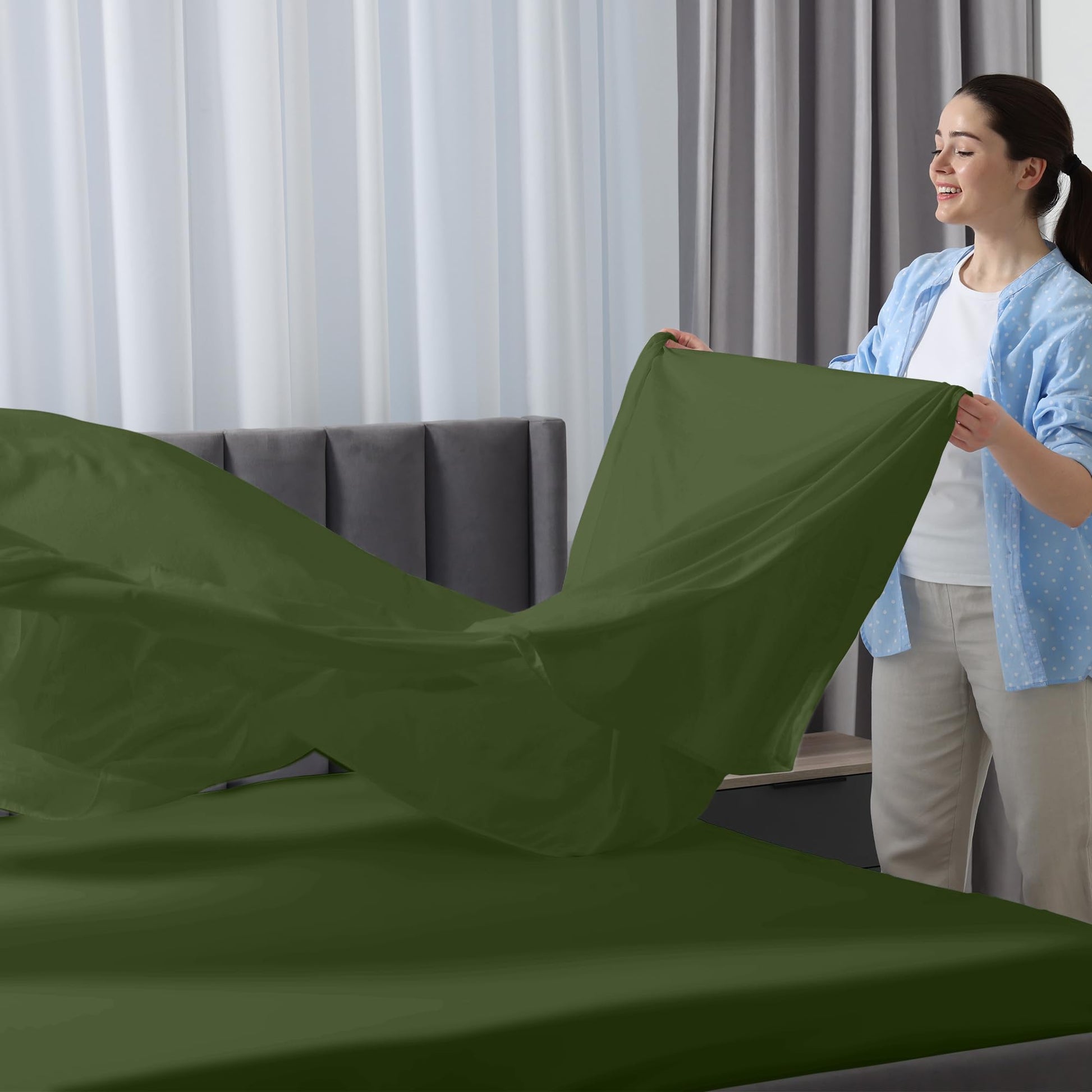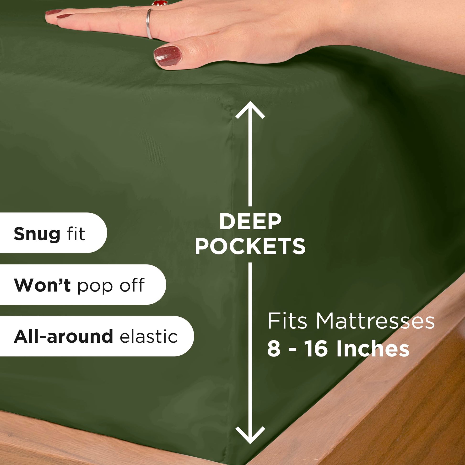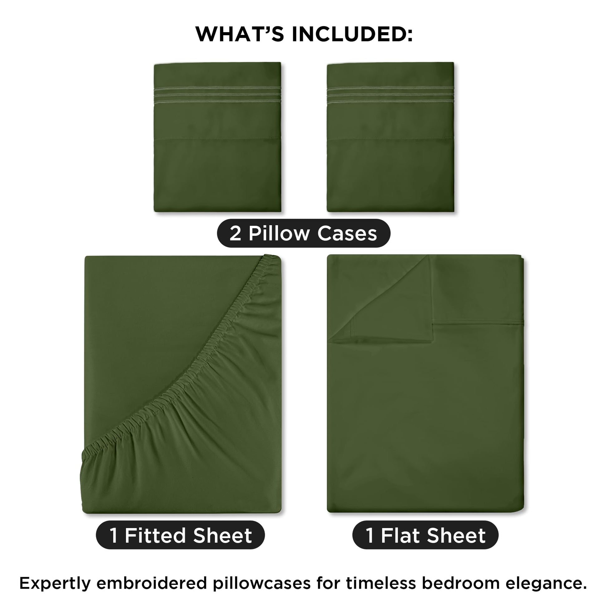 ROYALE LINENS - 4 Piece Bed Sheet - Soft Brushed Microfiber 1800 Bedding Set - 1 Fitted Sheet, 1 Flat Sheet, 2 Pillowcase -Wrinkle & Fade Resistant Luxury Sheet Set (Hunter Green)
