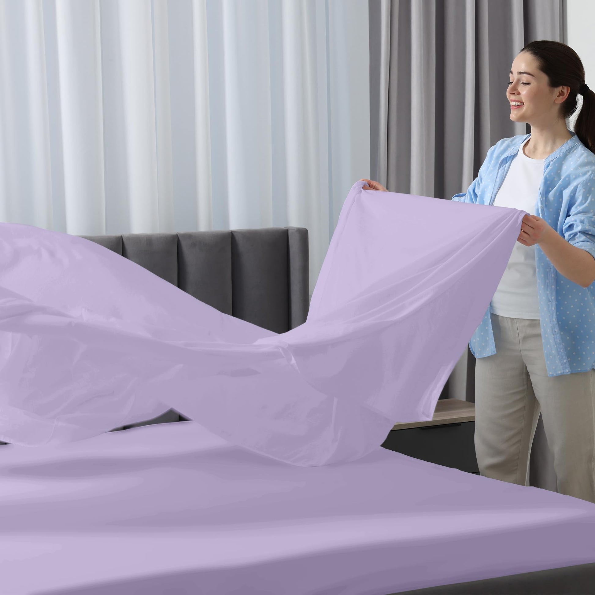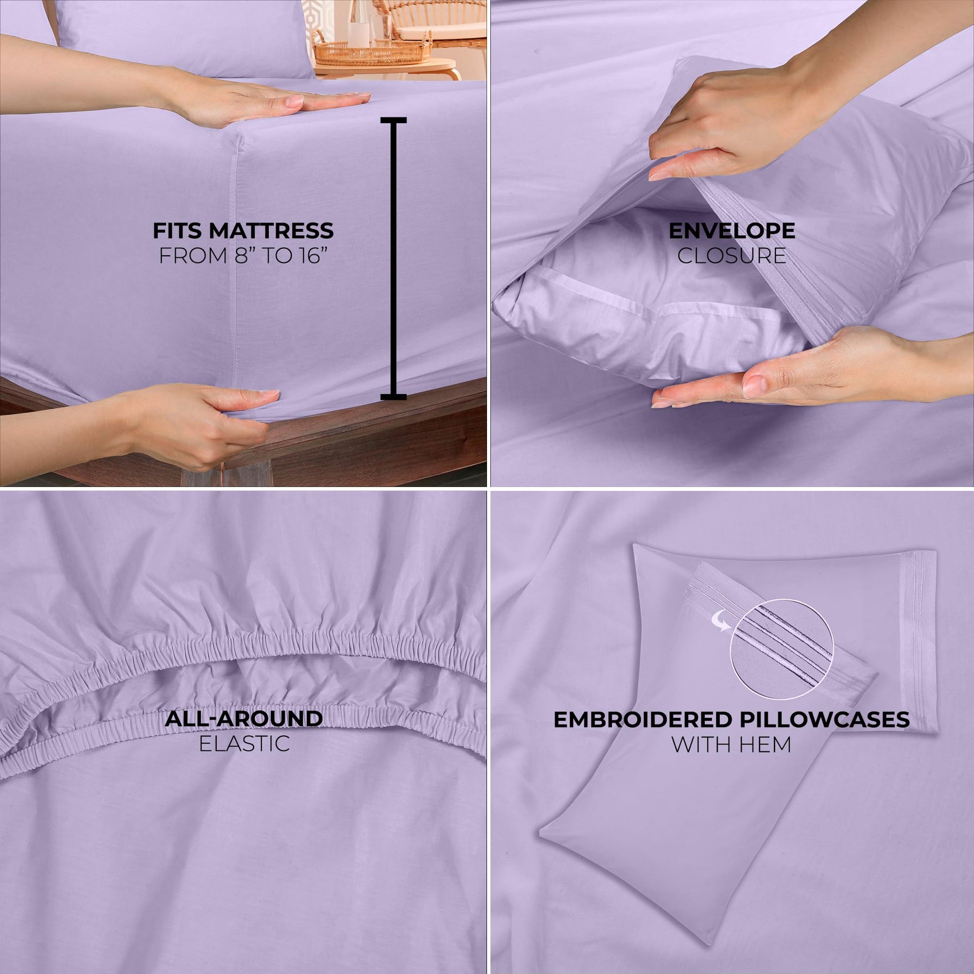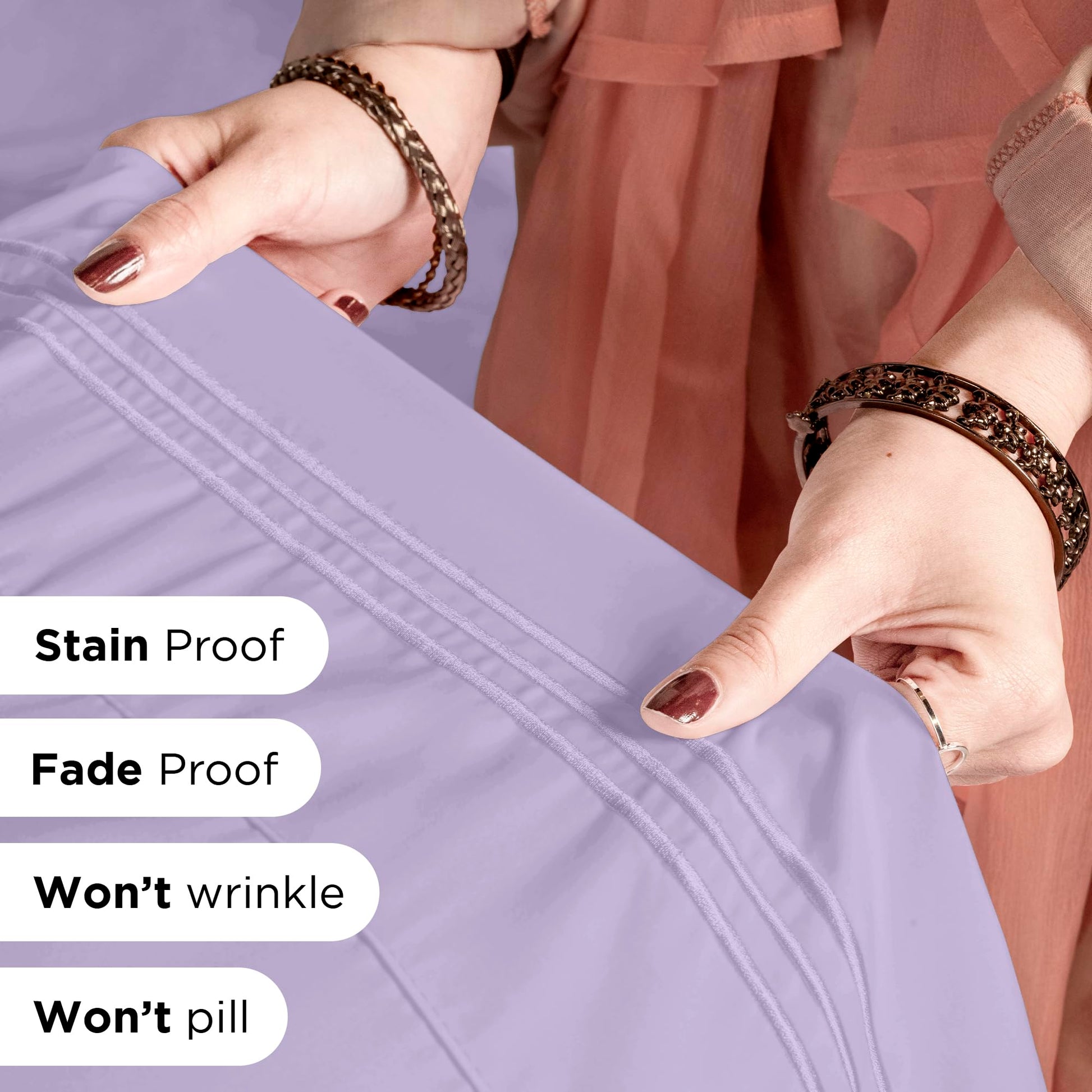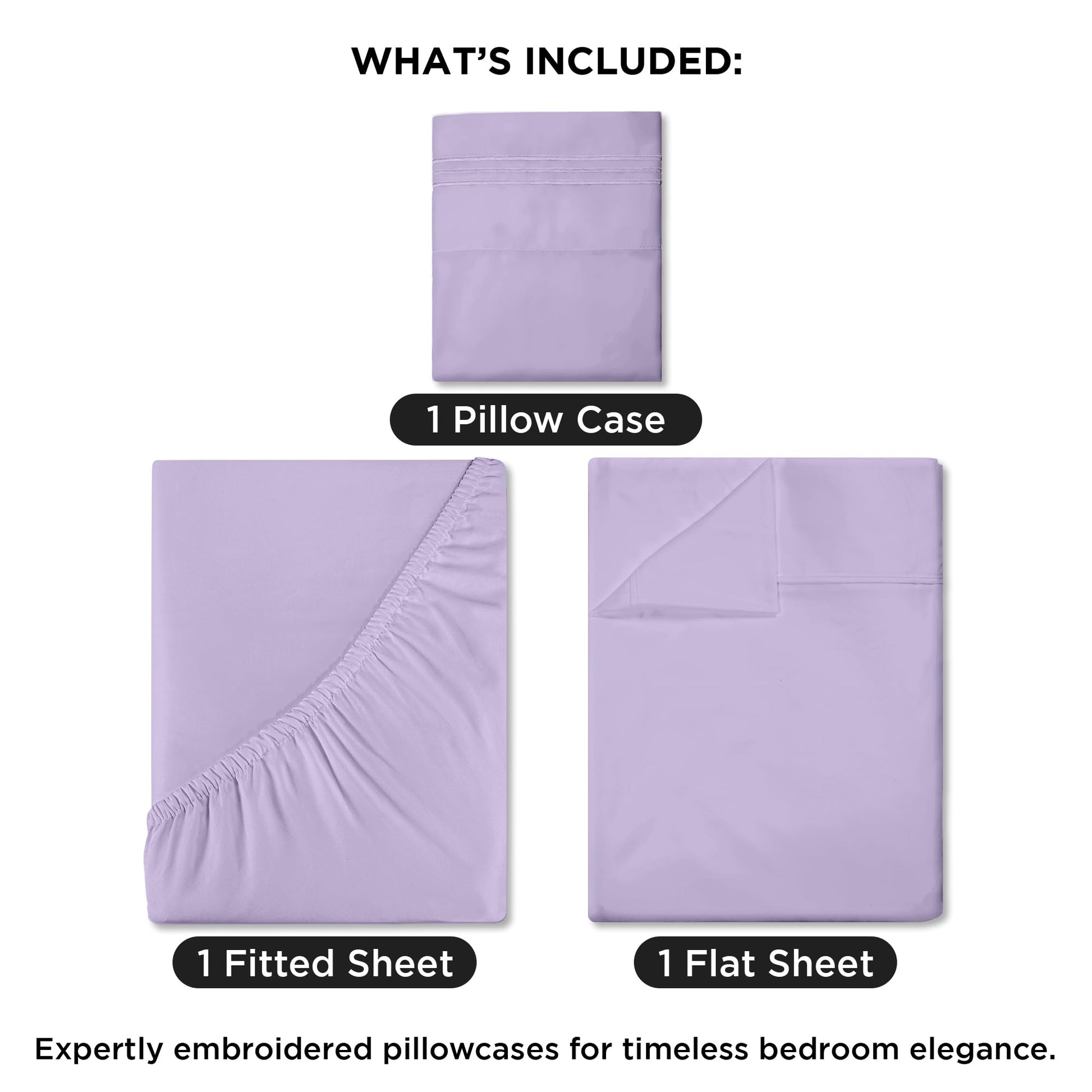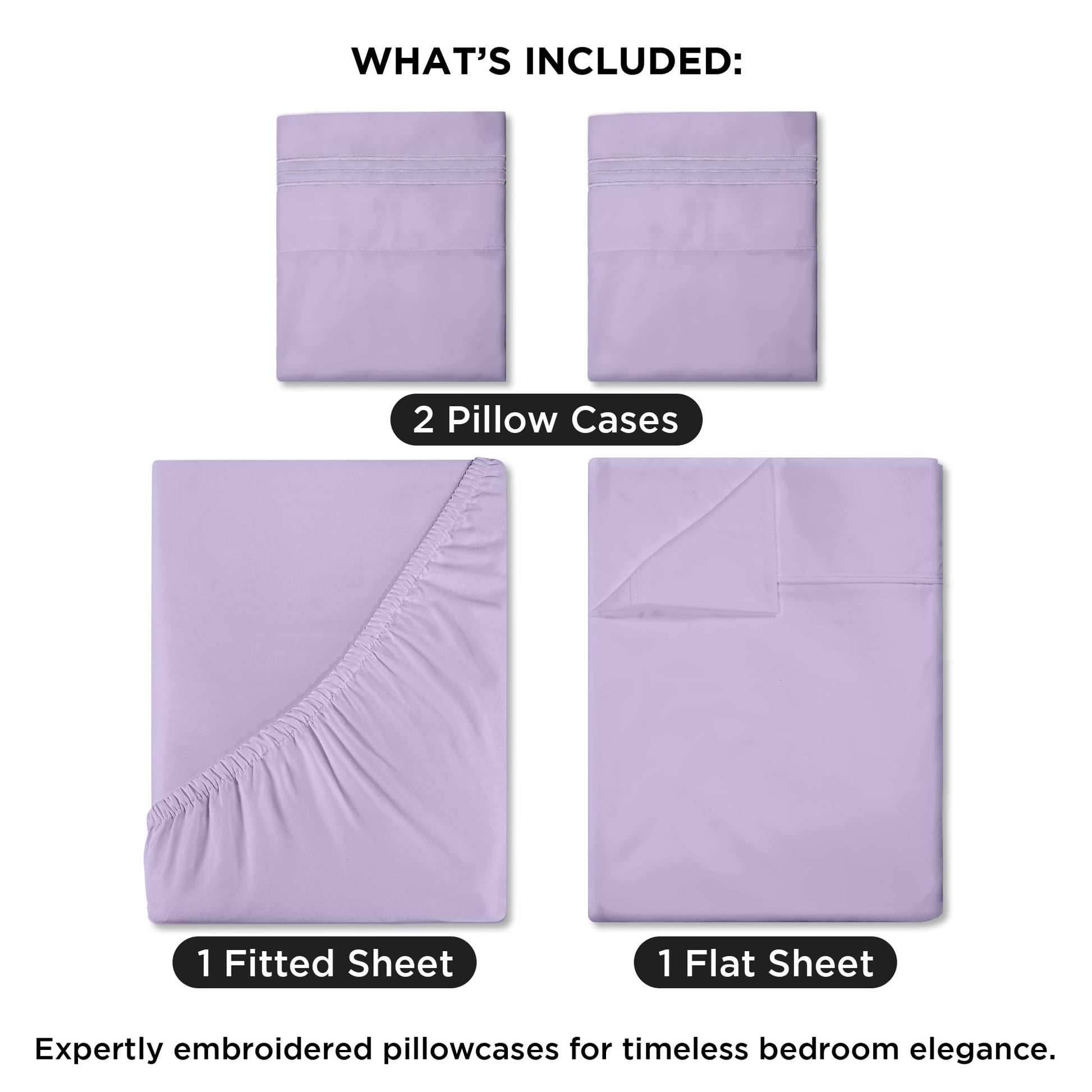 Royale Linens - 4 Piece Bed Sheet - Soft Brushed Microfiber 1800 Bedding Set - 1 Fitted Sheet, 1 Flat Sheet, 2 Pillowcase - Wrinkle & Fade Resistant Luxury Sheet Set (Lavender)