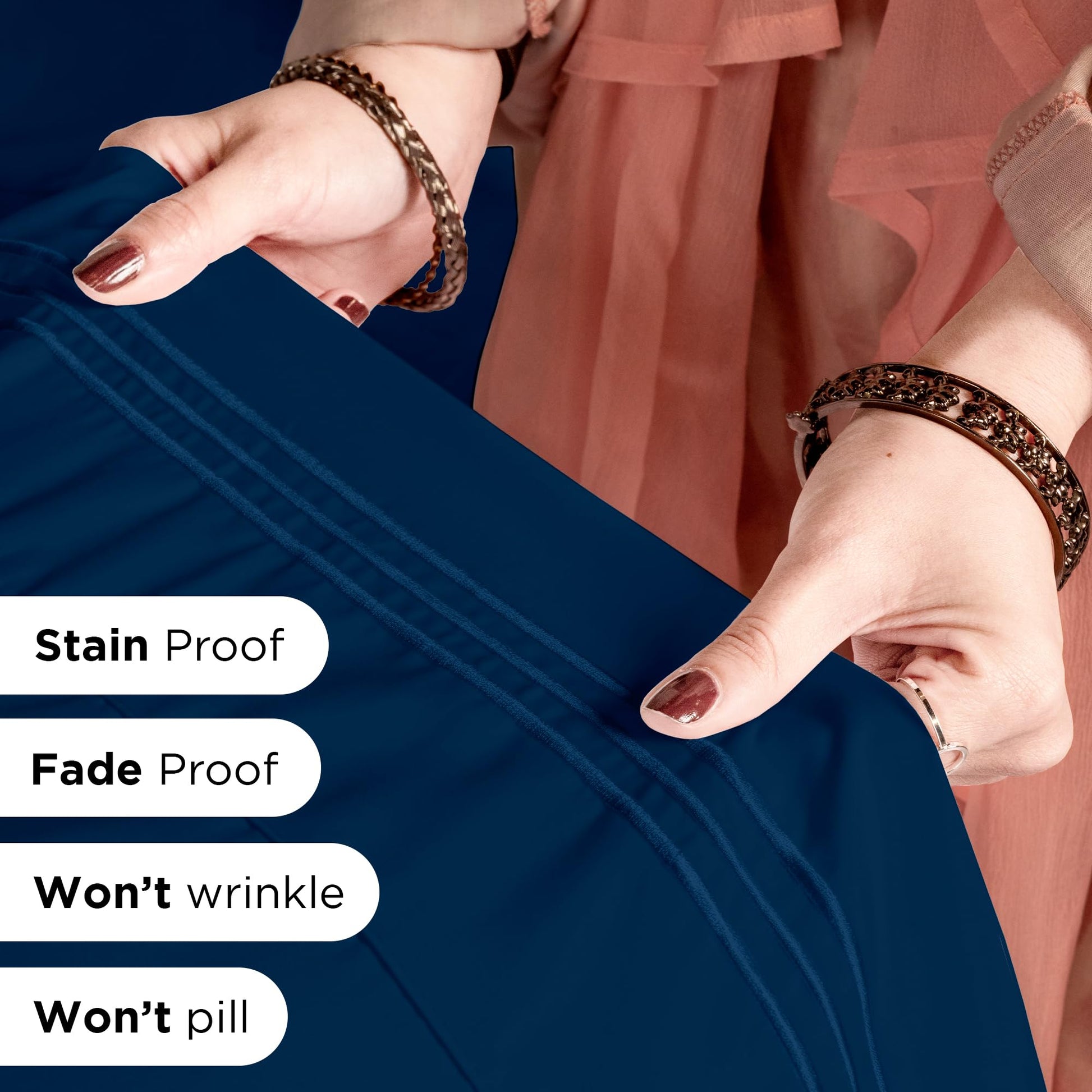 Experience hotel luxury bed sheets reimagined with our premium microfiber bed sheet set, designed to transform your bedroom into a five-star retreat. Our Queen size bed sheets and other size options feature an innovative extra deep pocket Queen sheets design that's revolutionizing bedding comfort. Unlike standard sheets, these cooling sheets utilize advanced microfiber technology that rivals the feel of high-end cotton, while our extra deep fitted sheet ensures a perfect fit on any mattress up to 16 inches deep. Each bedding set is crafted using premium-grade microfiber sheets that deliver exceptional breathability and temperature regulation, making them ideal for year-round comfort. From our crisp Navy Sheet Set to an array of 14 other designer colors, these wrinkle free sheets maintain their pristine appearance wash after wash. The Queen Size Sheet Set, along with Twin, Twin XL, Full, King, and Cal King options, showcases our Extra Deep Queen Sheet Set engineering. Each hotel luxury bed sheets collection is OEKO-TEX certified and features our exclusive weaving process that ensures these sheets stay perfectly in place. The sheet set includes precisely measured components for all sizes, with decorative 4-inch embroidered hem and envelope closure pillowcases. Experience the perfect blend of luxury and durability with our expertly crafted bed sheets that combine style, comfort, and exceptional quality in every thread.