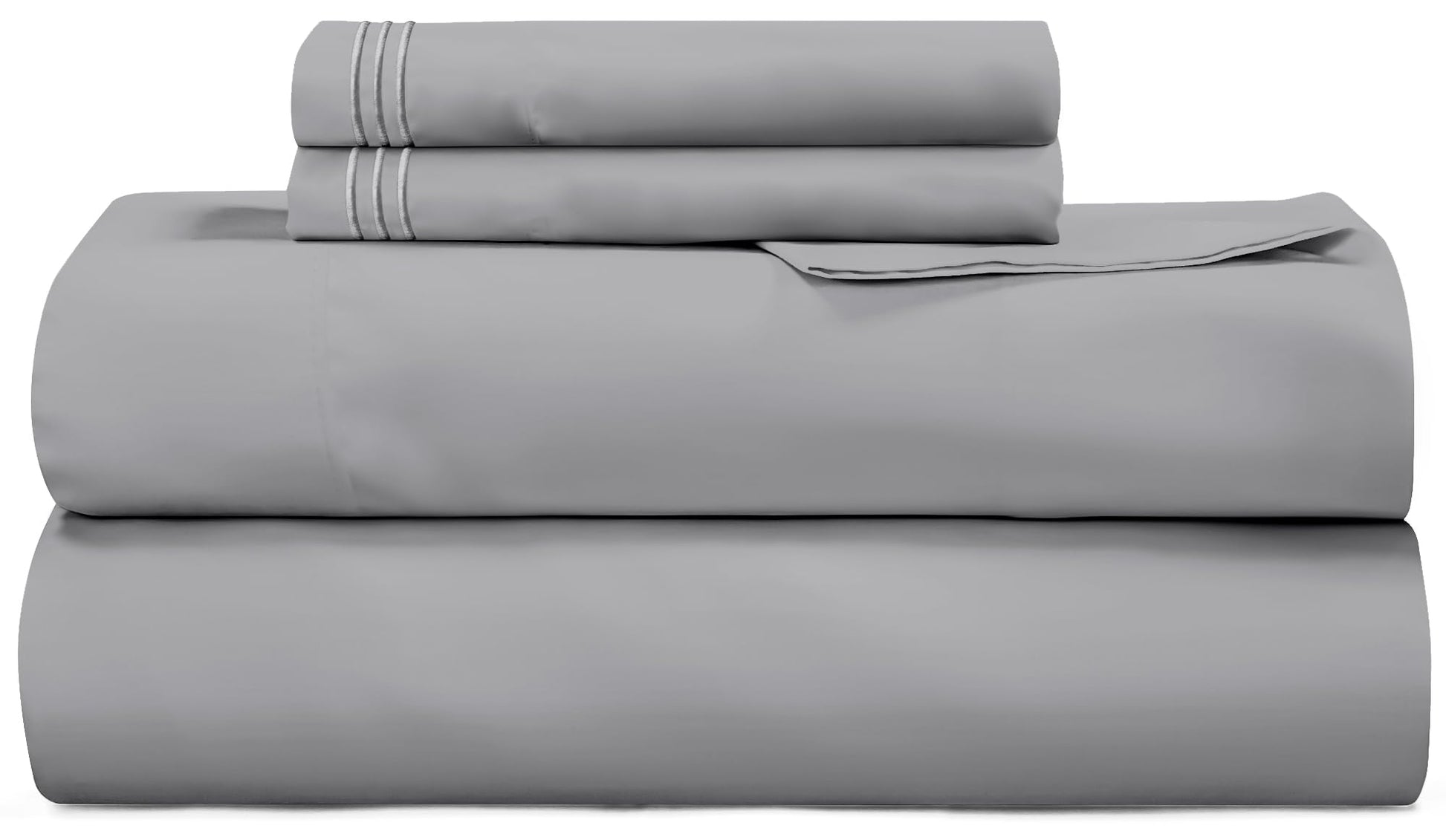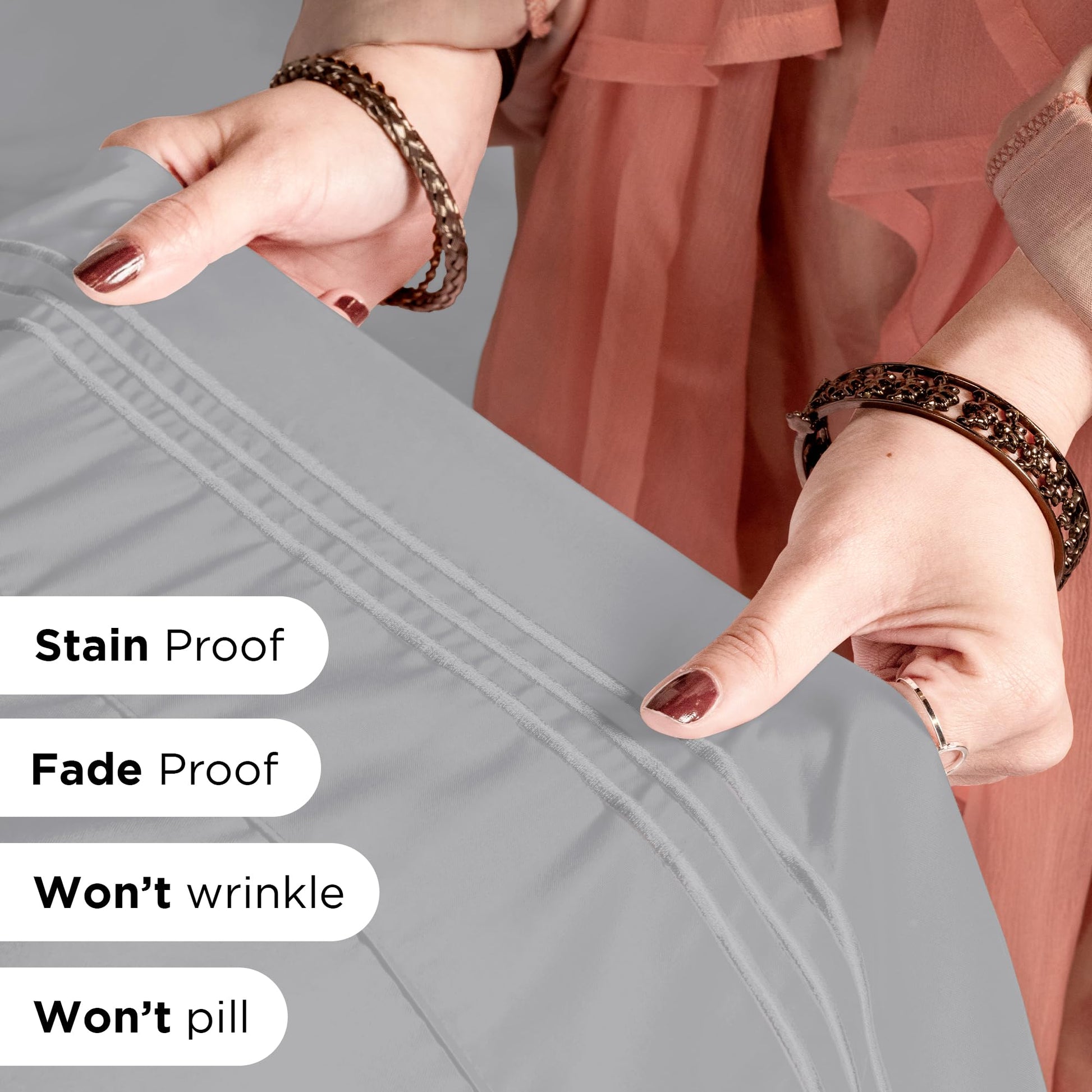 ROYALE LINENS - 4 Piece Bed Sheet - Soft Brushed Microfiber 1800 Bedding Set - 1 Fitted Sheet, 1 Flat Sheet, 2 Pillow case - Wrinkle & Fade Resistant Luxury Sheet Set (Silver)