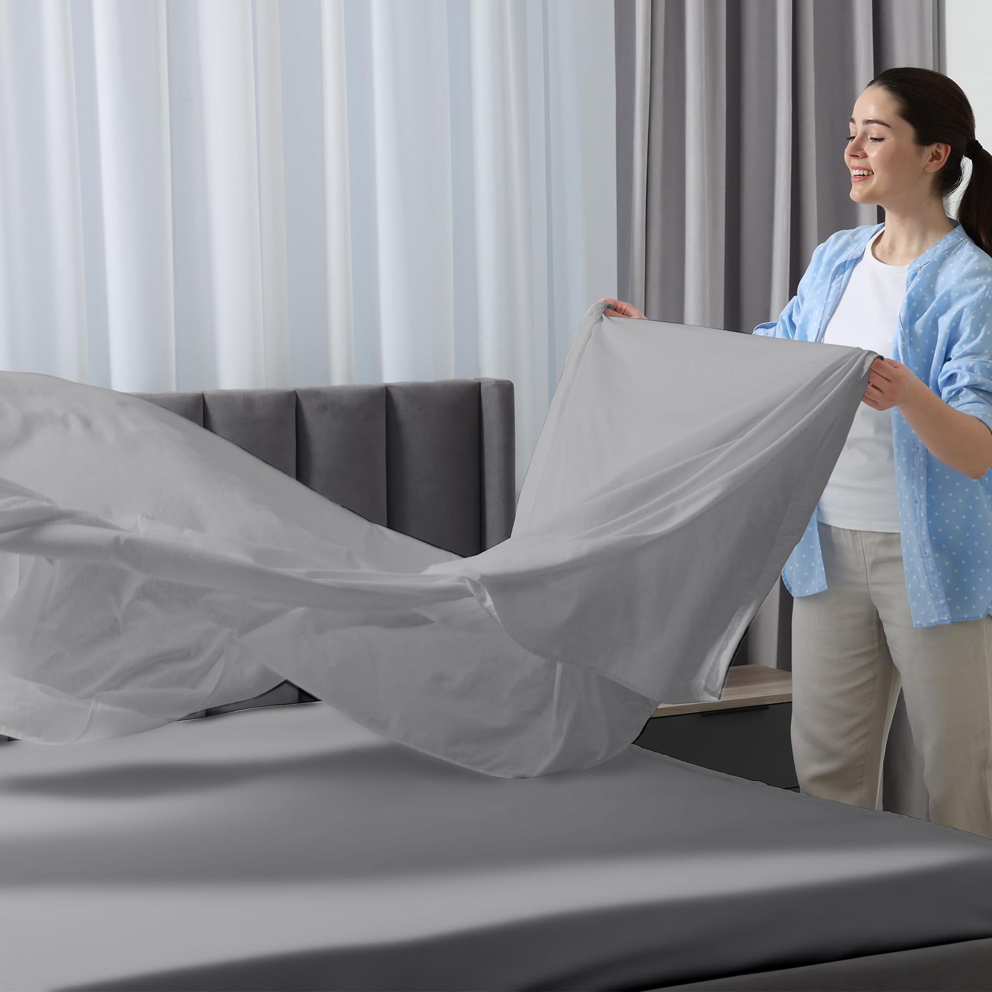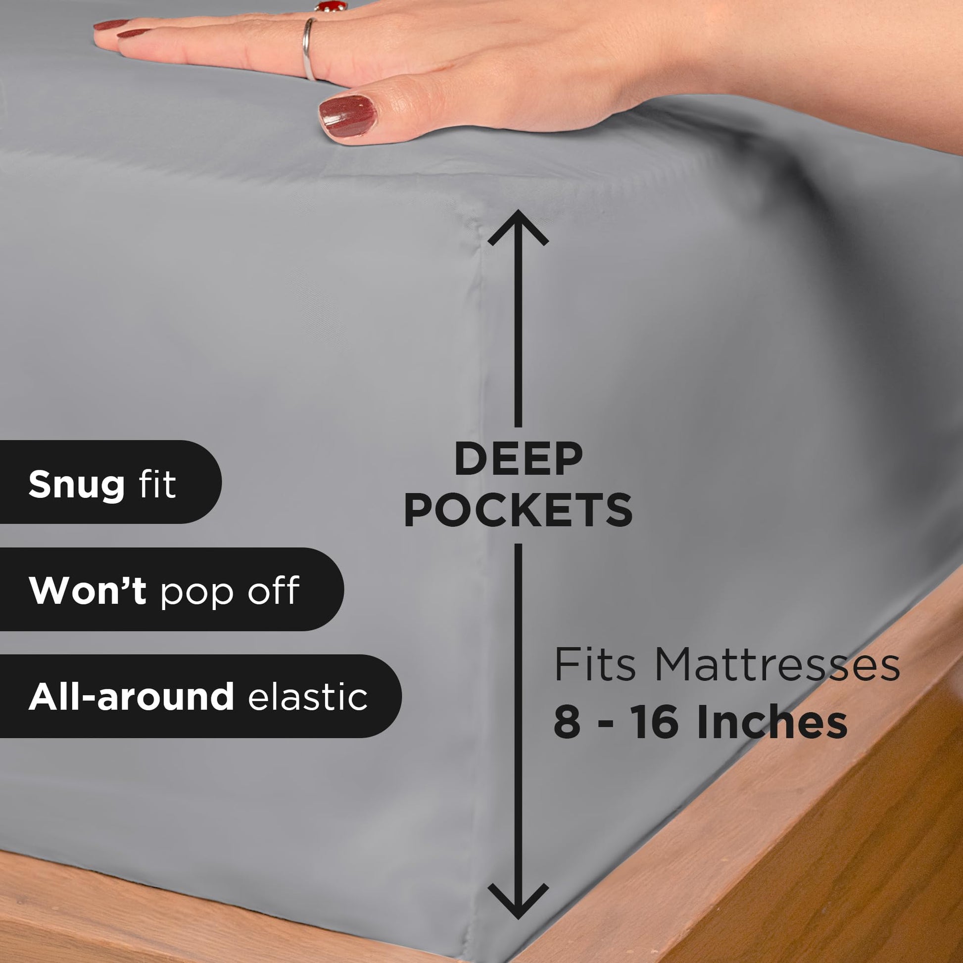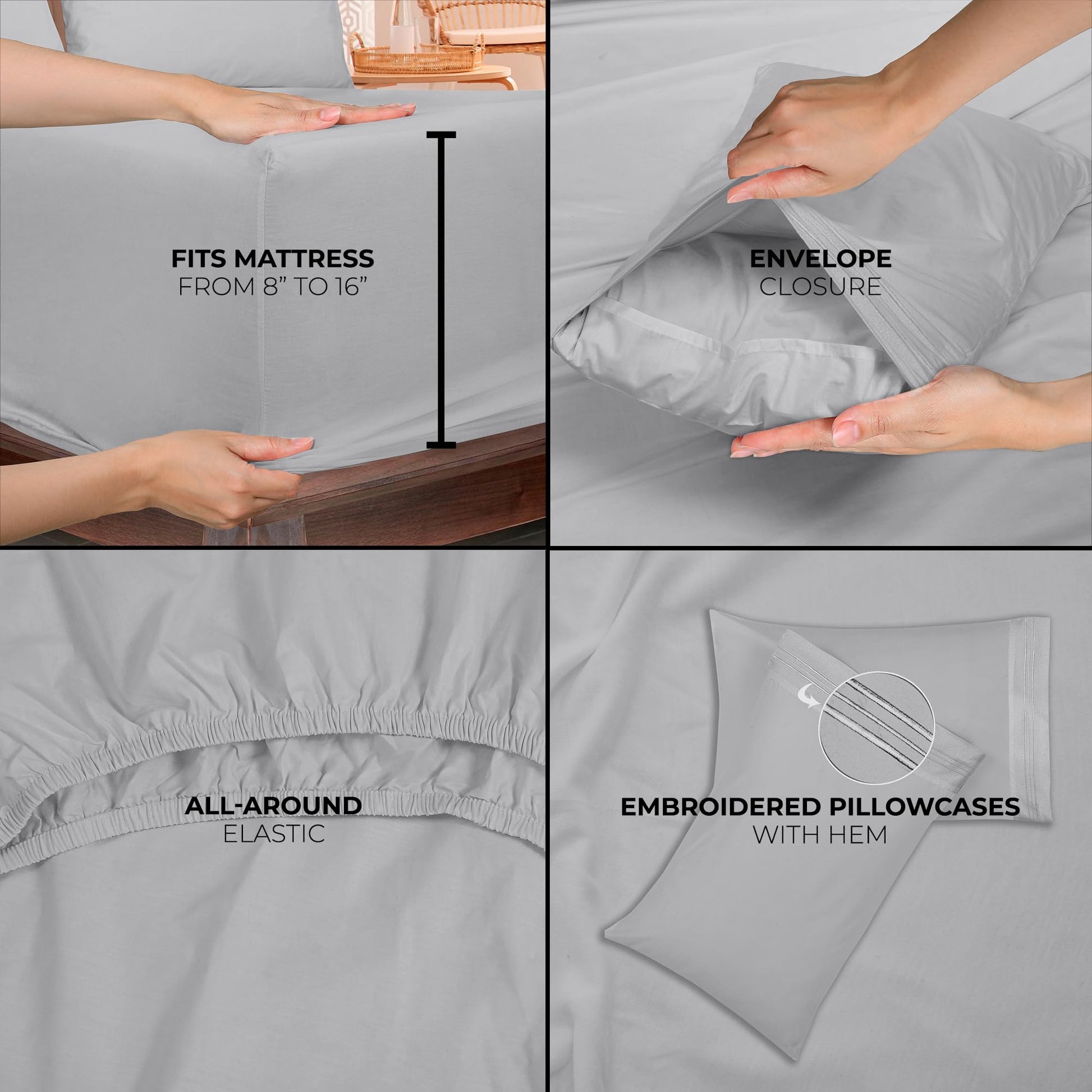 Experience hotel luxury bed sheets reimagined with our premium microfiber bed sheet set, designed to transform your bedroom into a five-star retreat. Our Queen size bed sheets and other size options feature an innovative extra deep pocket Queen sheets design that's revolutionizing bedding comfort. Unlike standard sheets, these cooling sheets utilize advanced microfiber technology that rivals the feel of high-end cotton, while our extra deep fitted sheet ensures a perfect fit on any mattress up to 16 inches deep. Each bedding set is crafted using premium-grade microfiber sheets that deliver exceptional breathability and temperature regulation, making them ideal for year-round comfort. From our crisp Silver Sheet Set to an array of 14 other designer colors, these wrinkle free sheets maintain their pristine appearance wash after wash. The Queen Size Sheet Set, along with Twin, Twin XL, Full, King, and Cal King options, showcases our Extra Deep Queen Sheet Set engineering. Each hotel luxury bed sheets collection is OEKO-TEX certified and features our exclusive weaving process that ensures these sheets stay perfectly in place. The sheet set includes precisely measured components for all sizes, with decorative 4-inch embroidered hem and envelope closure pillowcases. Experience the perfect blend of luxury and durability with our expertly crafted bed sheets that combine style, comfort, and exceptional quality in every thread.