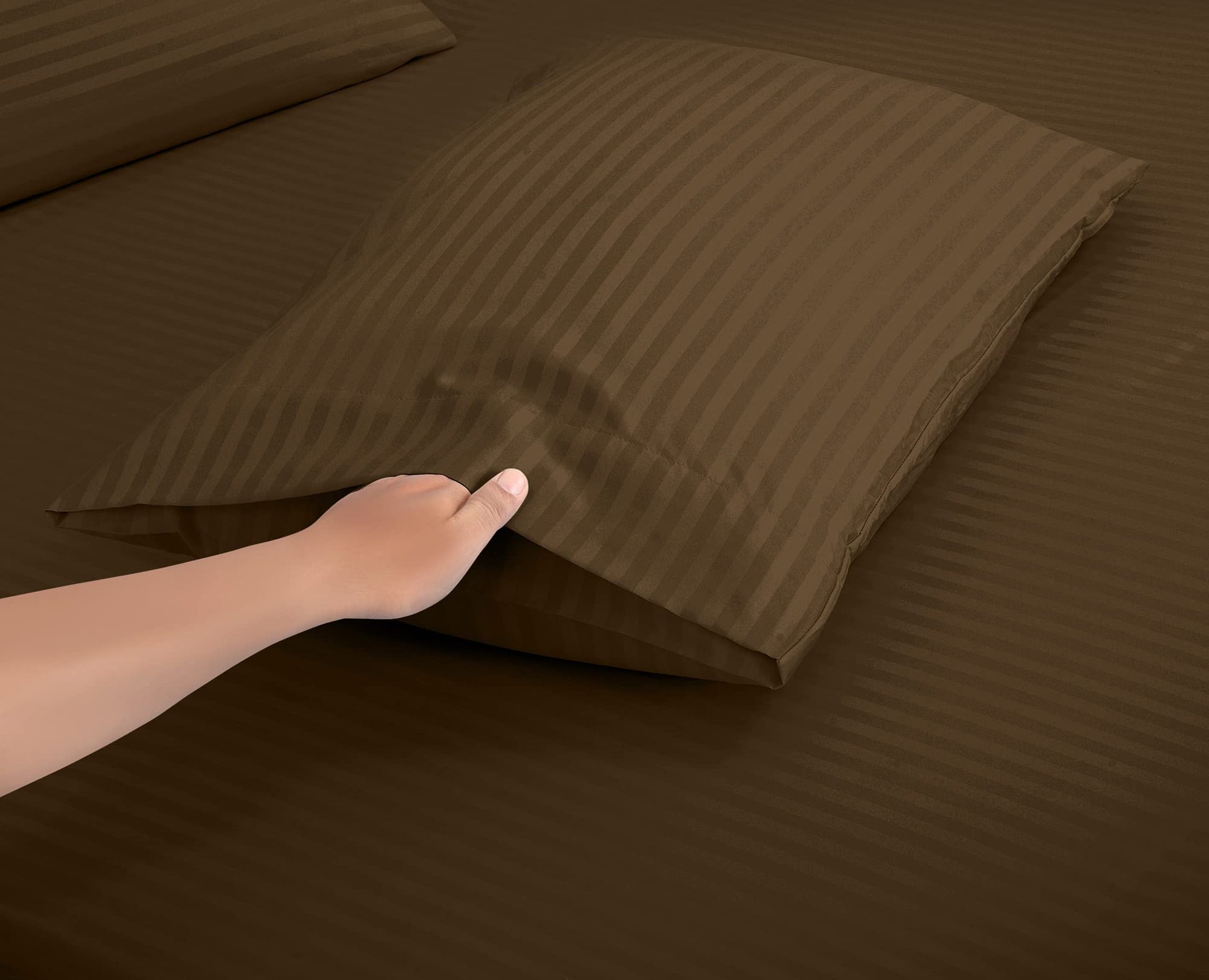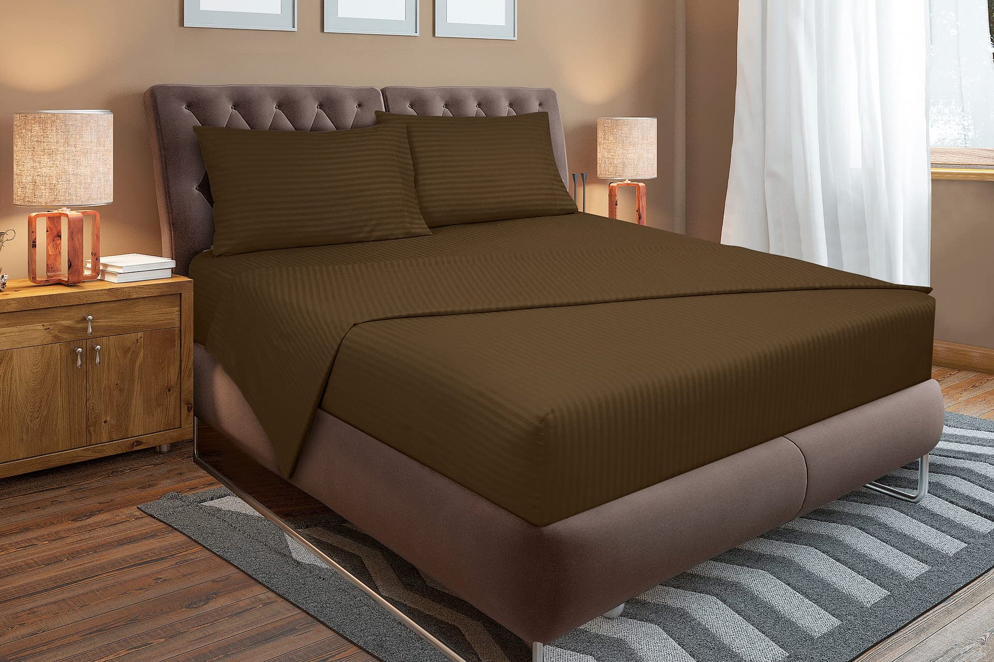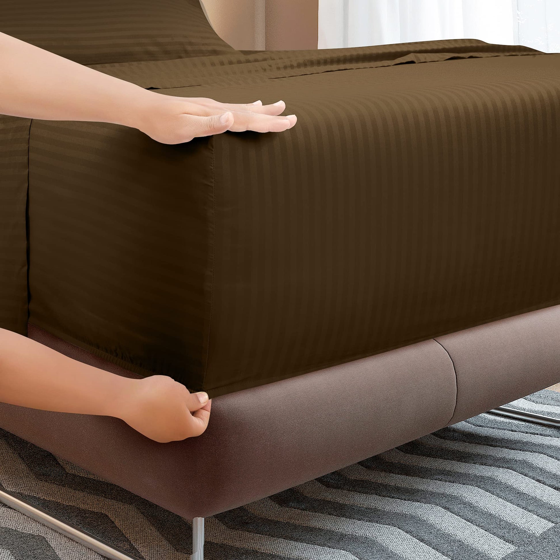 ROYALE LINENS Striped Bed Sheet Set - Microfiber 1800 Bedding - 1 Fitted Sheet, 1 Flat Sheet, 2 Pillowcase - Wrinkle & Fade Resistant - 4 Piece Damask Stripe Bed Sheet Set (Stripe Chocolate)