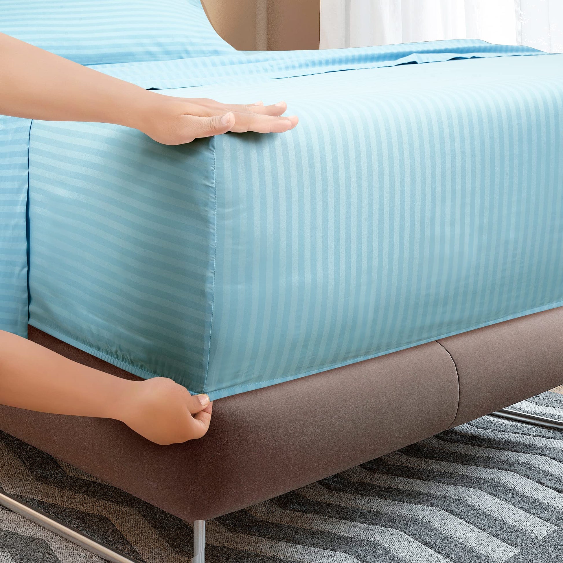 """A Good Night Sleep Is Just A Moment Away"" Royale Linens Stripe Bed Sheet Sets Are Manufactured Using Finest Quality 100% Brushed Microfiber. Making Them Breathable, Comfortable And Cozy. Royale Linen Damask Stripe Sheet Set Comes In 4 Different Sizes Twin Twin Xl Full Queen King King Cal Queen Stripe Sheet Set Include: 1 Flat Sheet 90X102 Inches, 1 Fitted Sheet 60X80 Inches With 16 Inch Drop And 2 Pillow Case 20X30 Inches With 4 Inch Hem And Envelop Closure. Royale Linens Queen Damask Stripe Size Bed Sheets Are Breathable, Cool And Super Silky Soft. Fabric Is Processed To Make It Shrink And Fade Resistant. Perfect For Bedroom, Guest Room, Kids Room, Hotels. Great Gift Idea For Men And Women On Valentine's Day - Mother's Day- Father's Day And Christmas. Our Bed Sheet Sets Are Certified Standard 100 By Oeko?Tex. According To The Guidelines, These Products Are Tested For Harmful Substances And Produced In An Environment Friendly And Socially Responsible Manner. Also Sustainable In Accordance With Oeko-tex Guidelines. Care Instruction: Machine Wash Or Hand Wash Using Cold Water Along With A Mild Detergent Is Recommended For Extending The Life Of The Set Along With Retaining Its Comfortability. Washing At High Temperatures Causes Microfiber To Expand Which Results In The Trapped Dirt And Other Tiny Particles Being Released. If You Want To Hand Wash The Set, Then Consider Using A Soft-haired Brush To Rinse Thoroughly. "