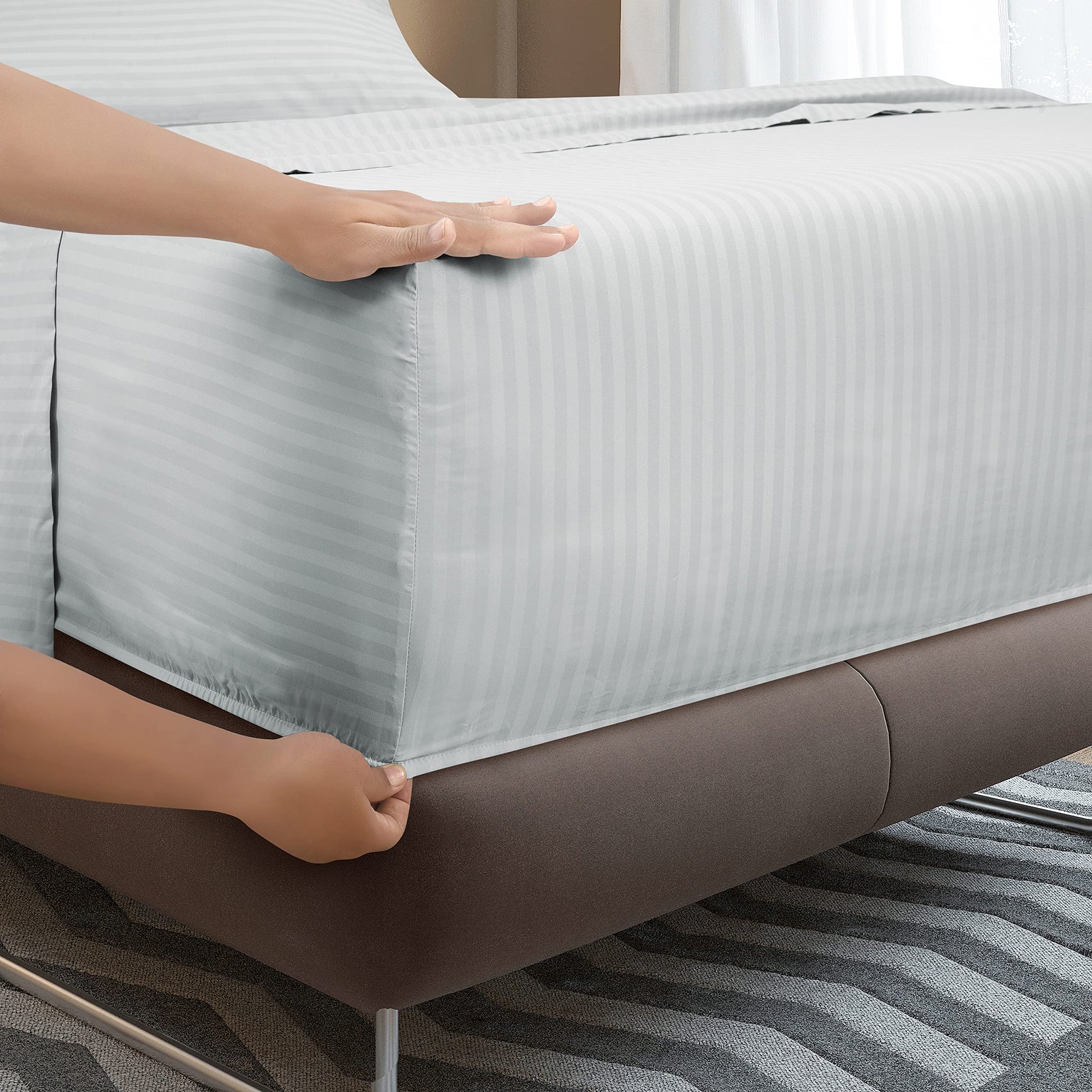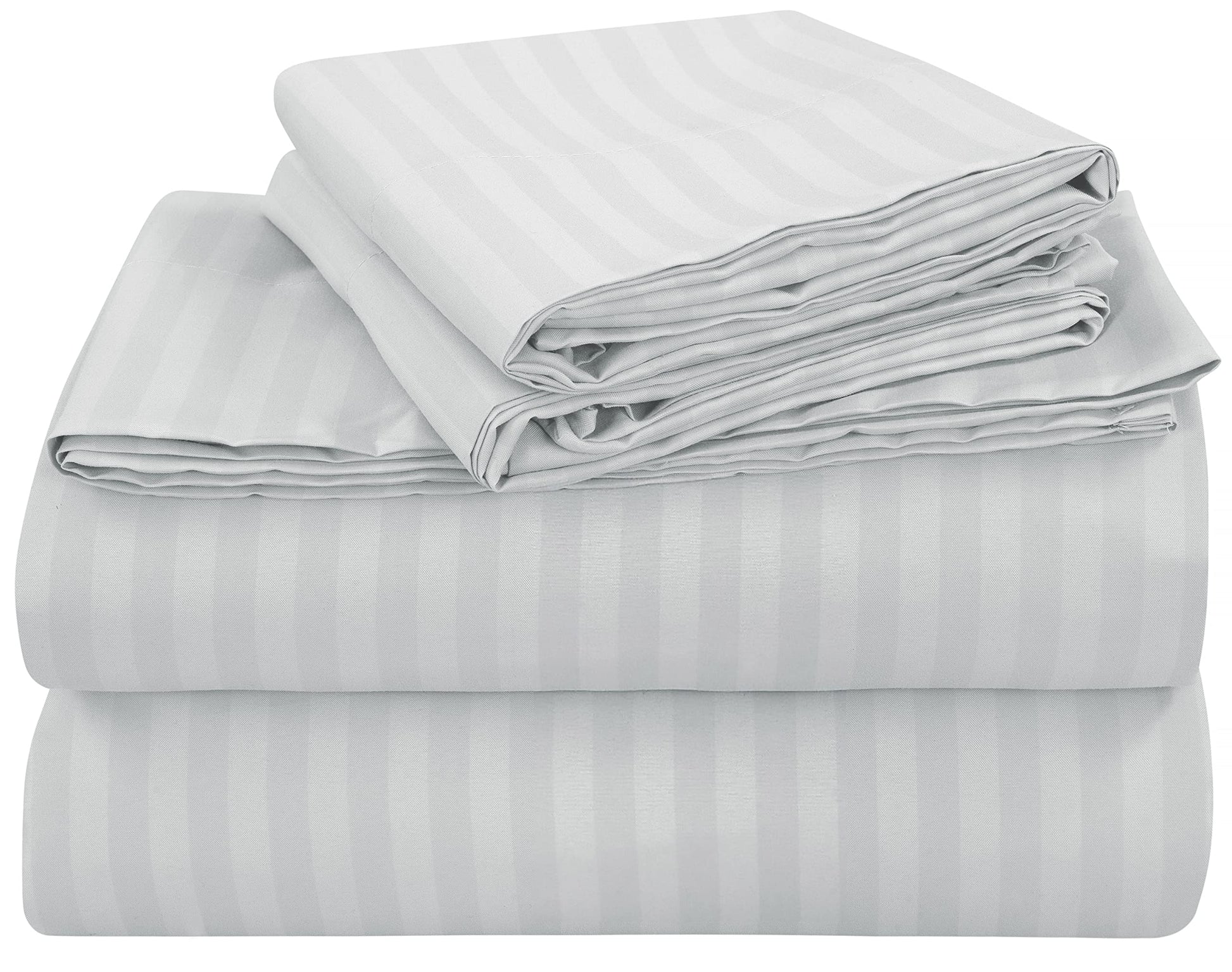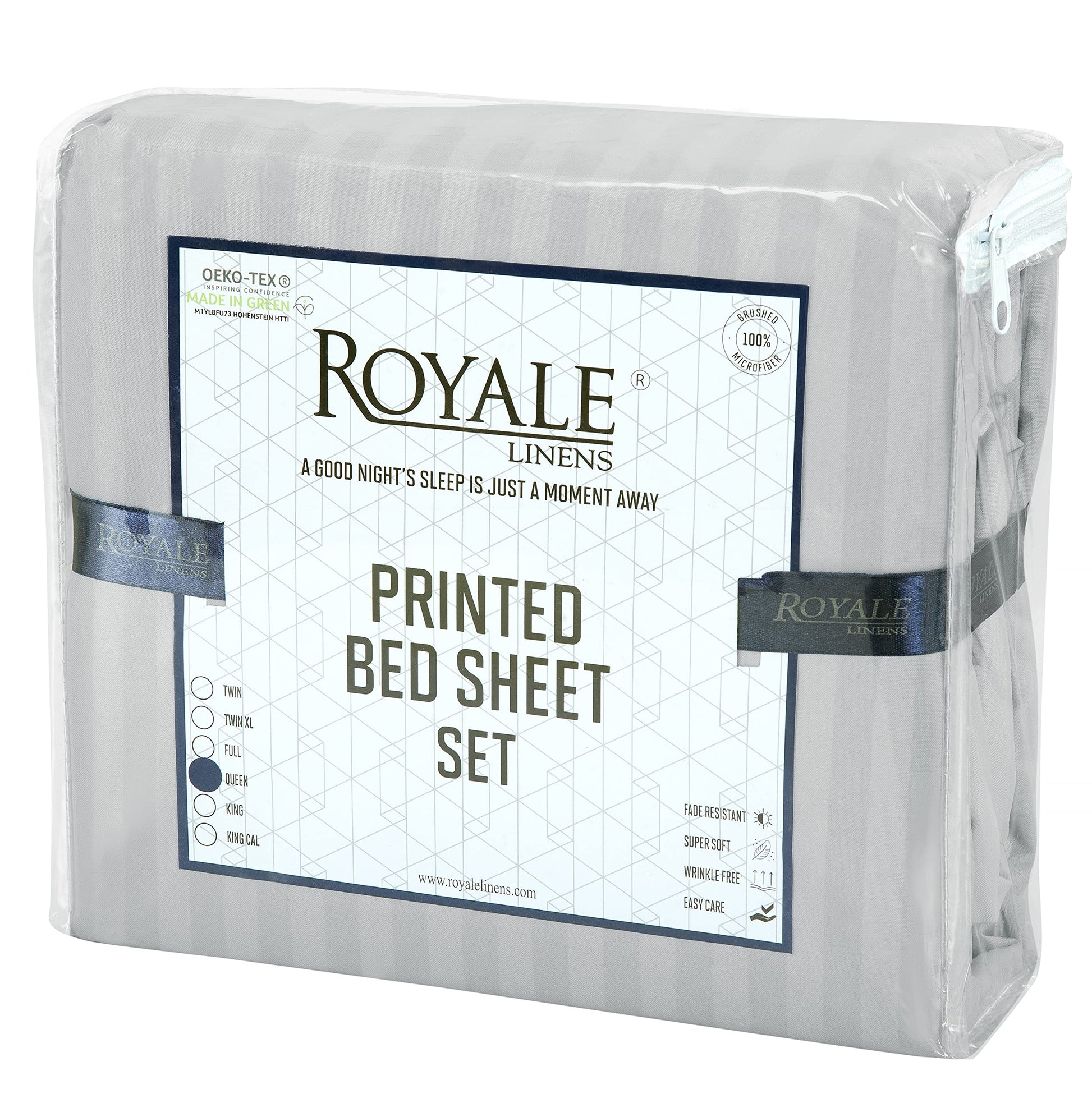 Royale Linen Striped Bed Sheet Set - Microfiber 1800 Bedding - 1 Fitted Sheet, 1 Flat Sheet, 2 Pillow case - Wrinkle & Fade Resistant - 4 Piece Damask Stripe Bed Sheet Set (Stripe Silver)