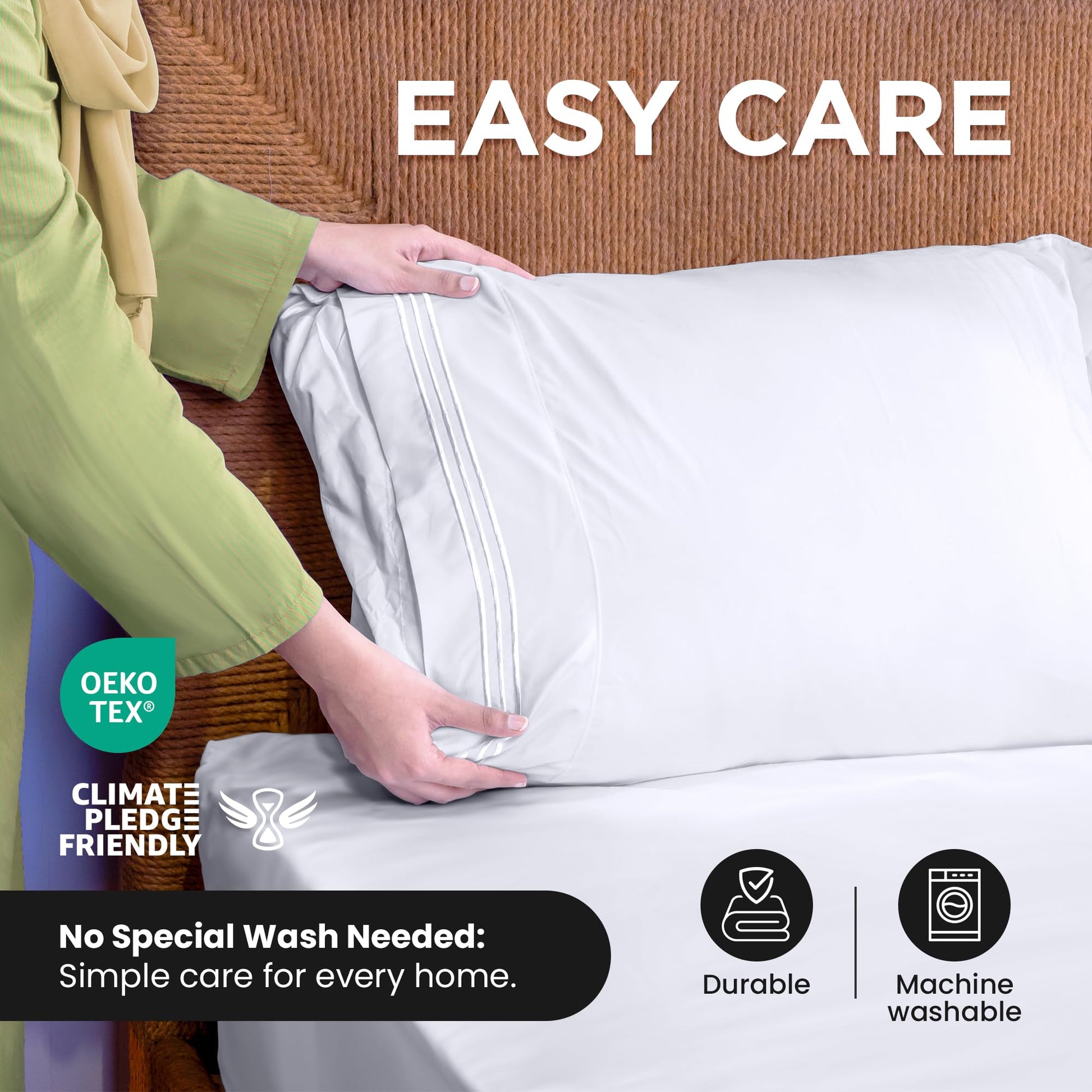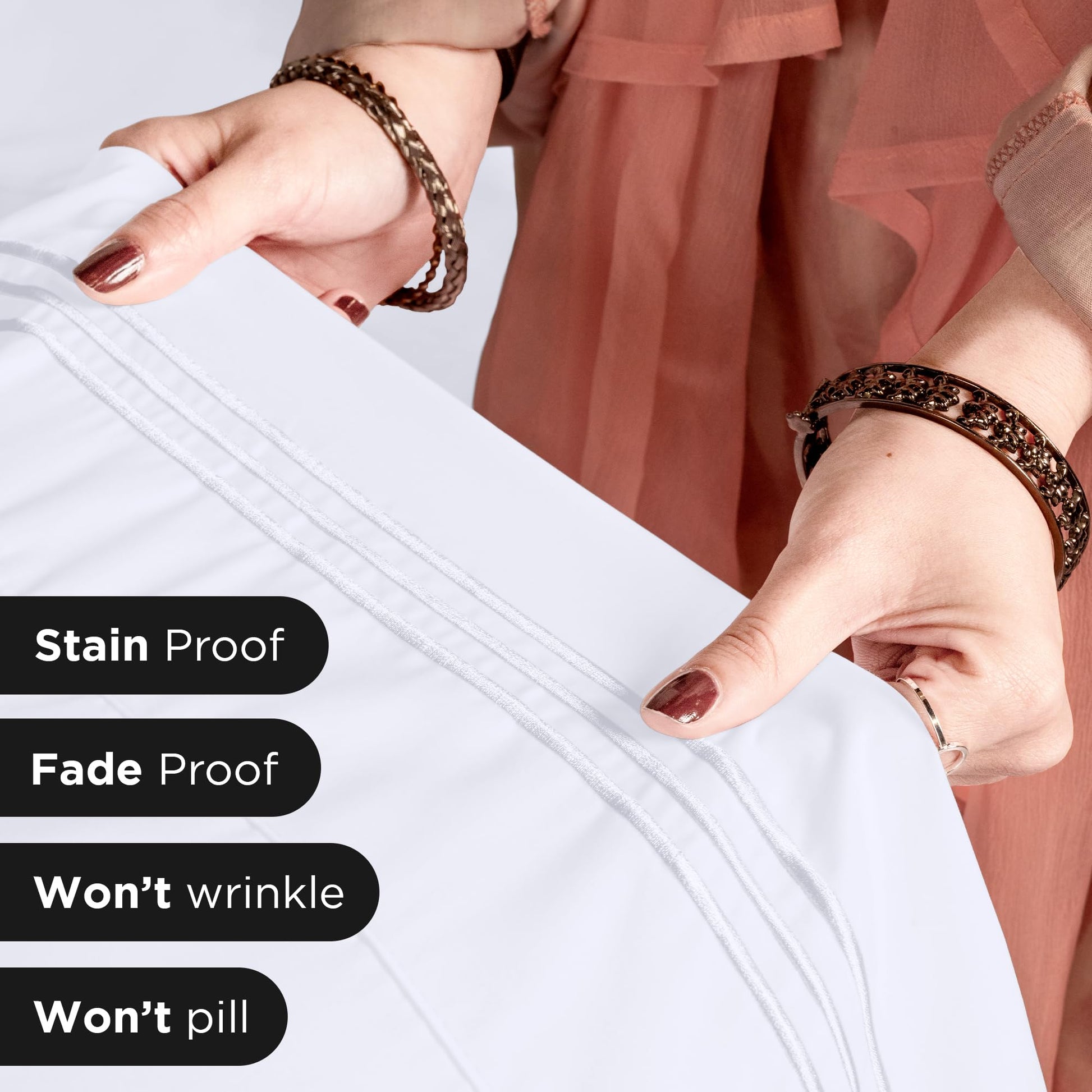 Experience hotel luxury bed sheets reimagined with our premium microfiber bed sheet set, designed to transform your bedroom into a five-star retreat. Our Queen size bed sheets and other size options feature an innovative extra deep pocket Queen sheets design that's revolutionizing bedding comfort. Unlike standard sheets, these cooling sheets utilize advanced microfiber technology that rivals the feel of high-end cotton, while our extra deep fitted sheet ensures a perfect fit on any mattress up to 16 inches deep. Each bedding set is crafted using premium-grade microfiber sheets that deliver exceptional breathability and temperature regulation, making them ideal for year-round comfort. From our crisp White Sheet Set to an array of 14 other designer colors, these wrinkle free sheets maintain their pristine appearance wash after wash. The Queen Size Sheet Set, along with Twin, Twin XL, Full, King, and Cal King options, showcases our Extra Deep Queen Sheet Set engineering. Each hotel luxury bed sheets collection is OEKO-TEX certified and features our exclusive weaving process that ensures these sheets stay perfectly in place. The sheet set includes precisely measured components for all sizes, with decorative 4-inch embroidered hem and envelope closure pillowcases. Experience the perfect blend of luxury and durability with our expertly crafted bed sheets that combine style, comfort, and exceptional quality in every thread