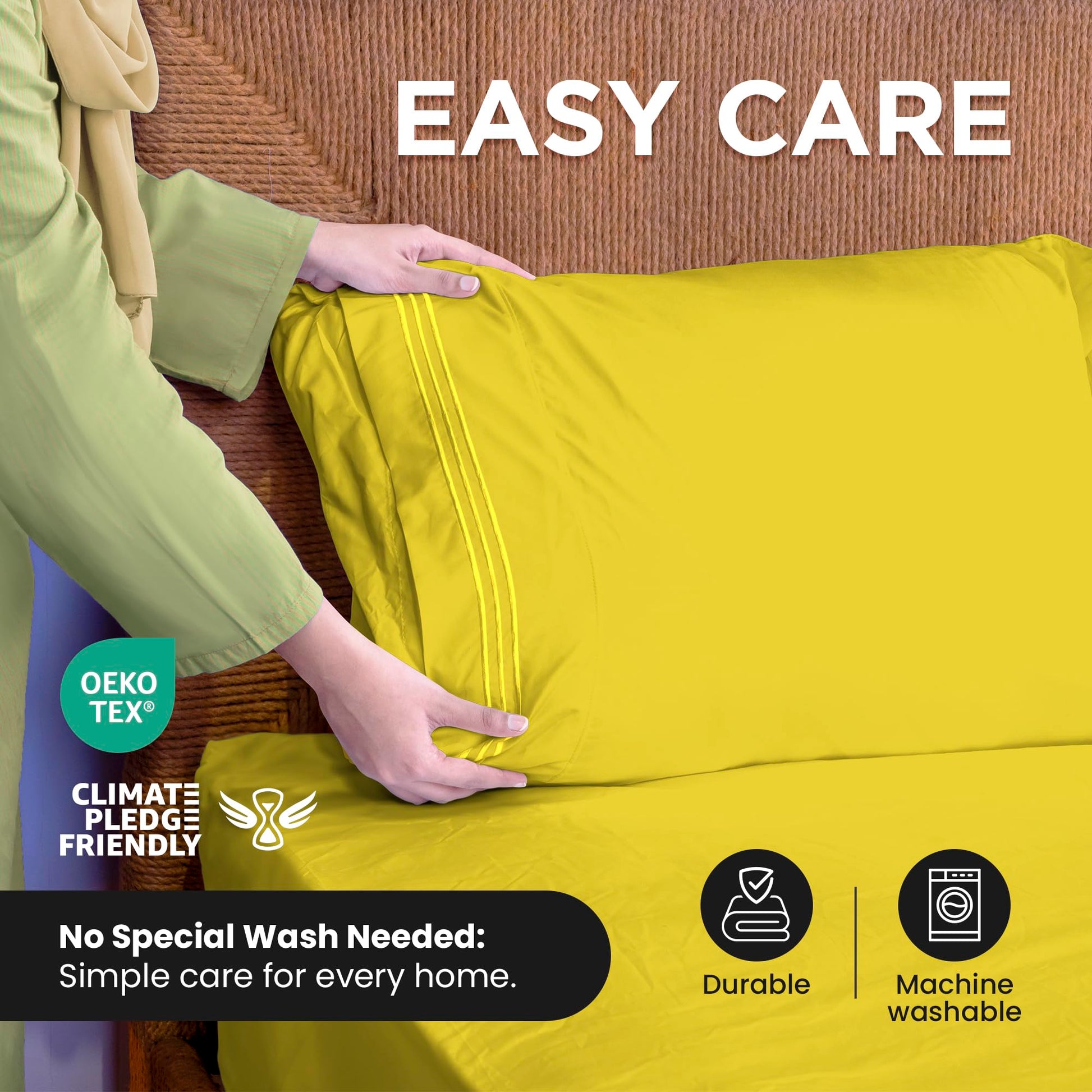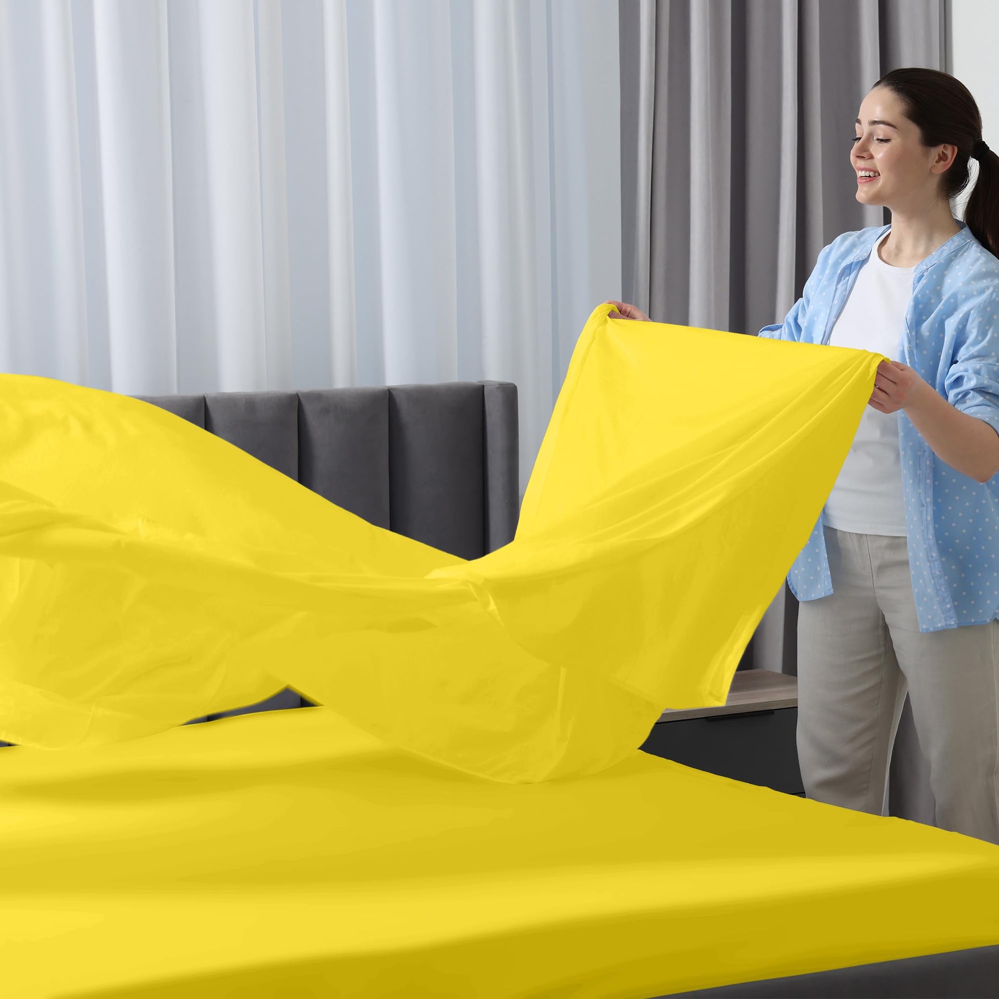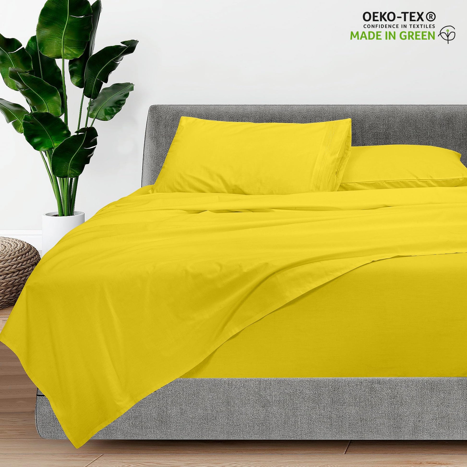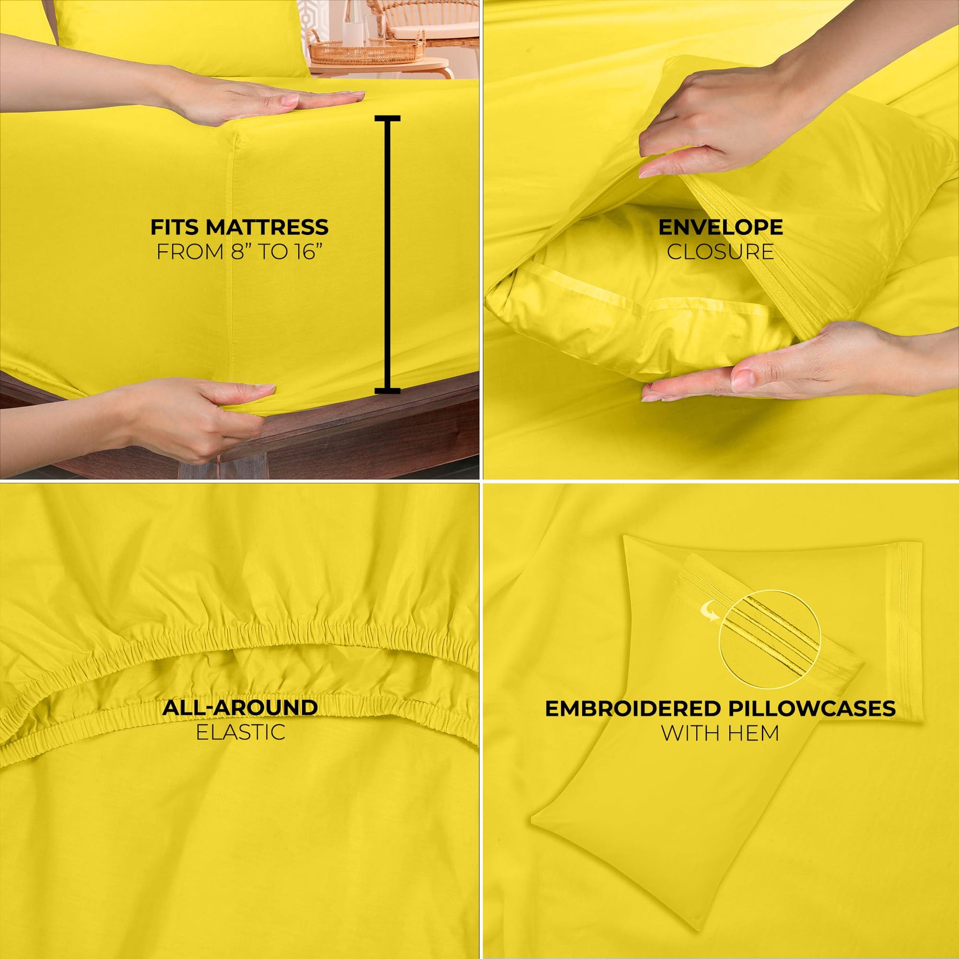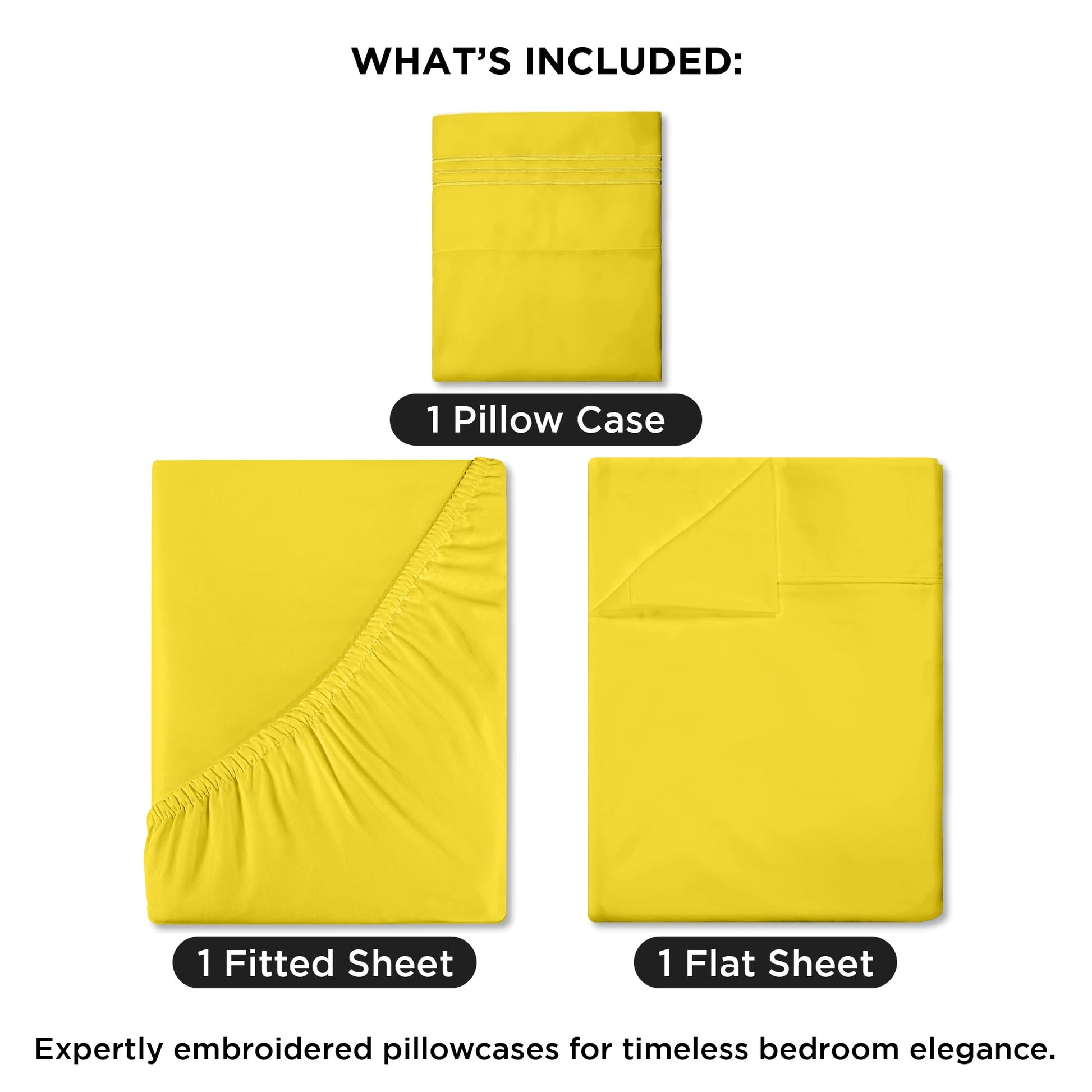 ROYALE LINENS - 4 Piece Bed Sheet - Soft Brushed Microfiber 1800 Bedding Set - 1 Fitted Sheet, 1 Flat Sheet, 2 Pillow case - Wrinkle & Fade Resistant Luxury Sheet Set (Yellow)