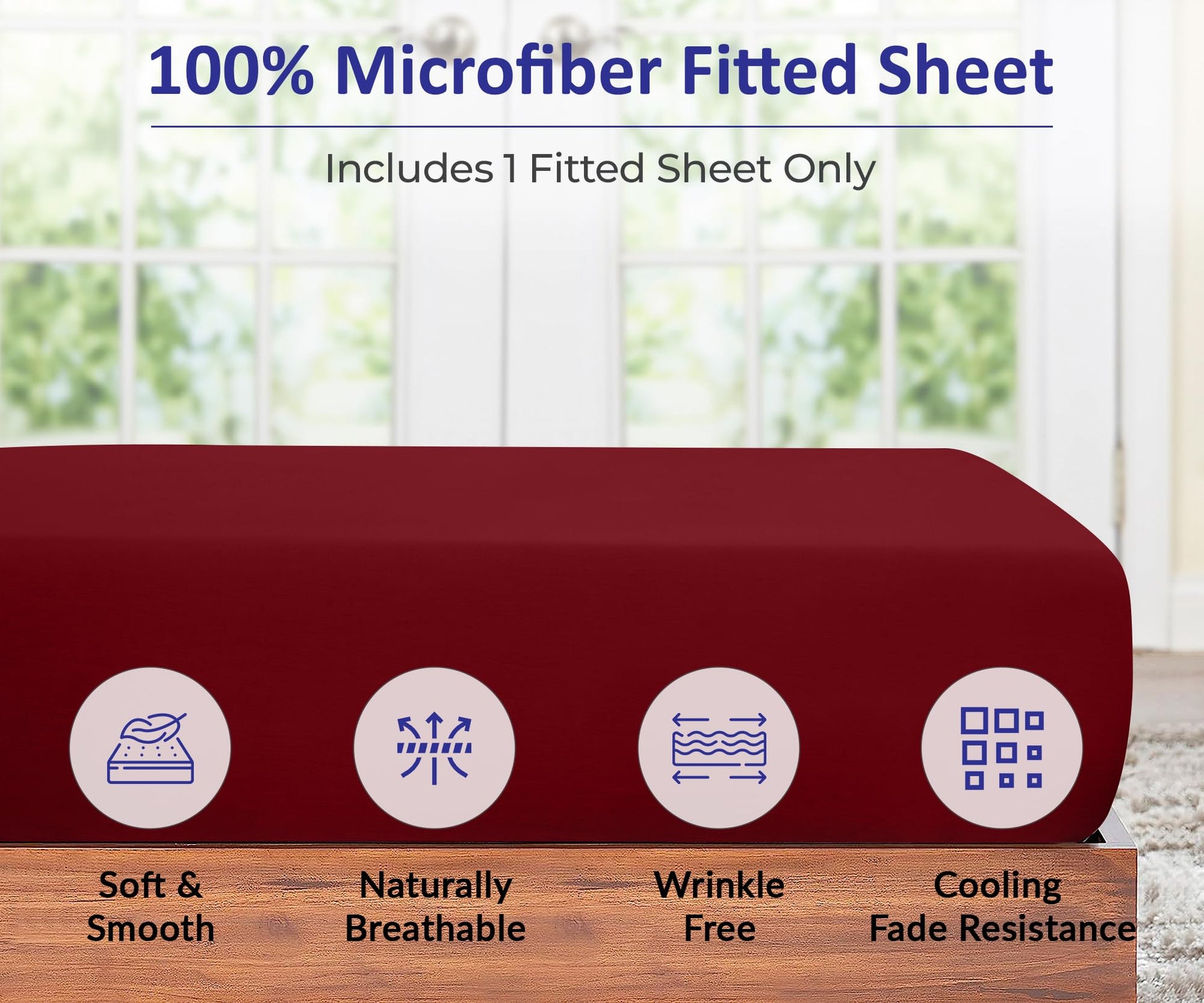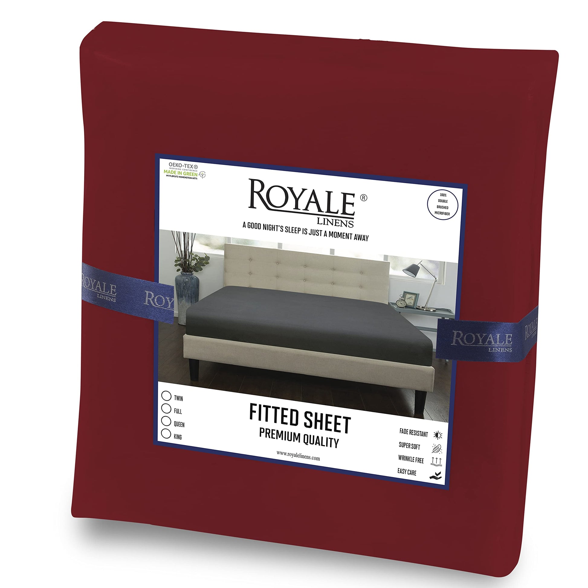 Royale Linens Fitted Sheet - Brushed Hotel Quality 1800 Ultra-Soft Wrinkle & Fade Resistant - Bottom Sheet - Deep Pocket Stretches Up to 16" - Fitted Sheet Only - Elastic Sheet ( Burgundy)