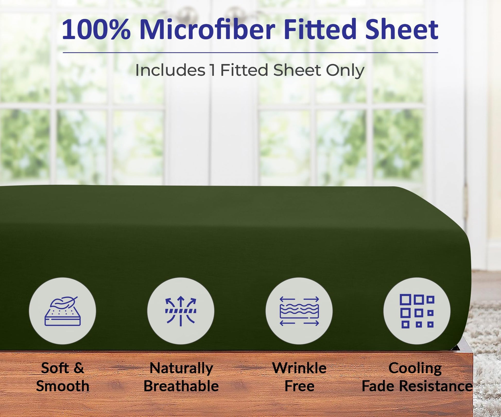 Royale Linens Fitted Sheet - Brushed Hotel Quality 1800 Soft Wrinkle & Fade Resistant - Bottom Sheet - Deep Pocket Stretches Up to 16" - Fitted Sheet Only - Elastic Sheet ( Hunter Green)