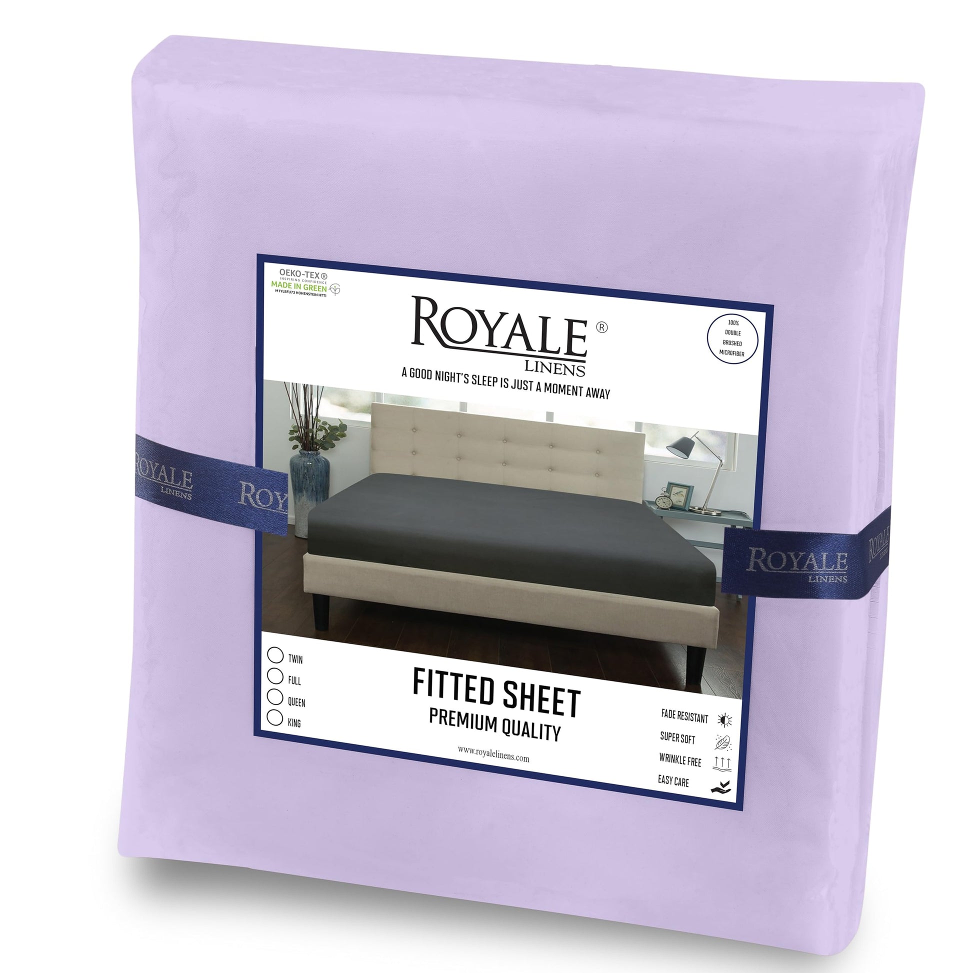 Royale Linens Fitted Sheet - Brushed Hotel Quality 1800 Soft Wrinkle & Fade Resistant - Bottom Sheet - Deep Pocket Stretches Up to 16" - Fitted Sheet Only - Elastic Sheet (Lavendar)