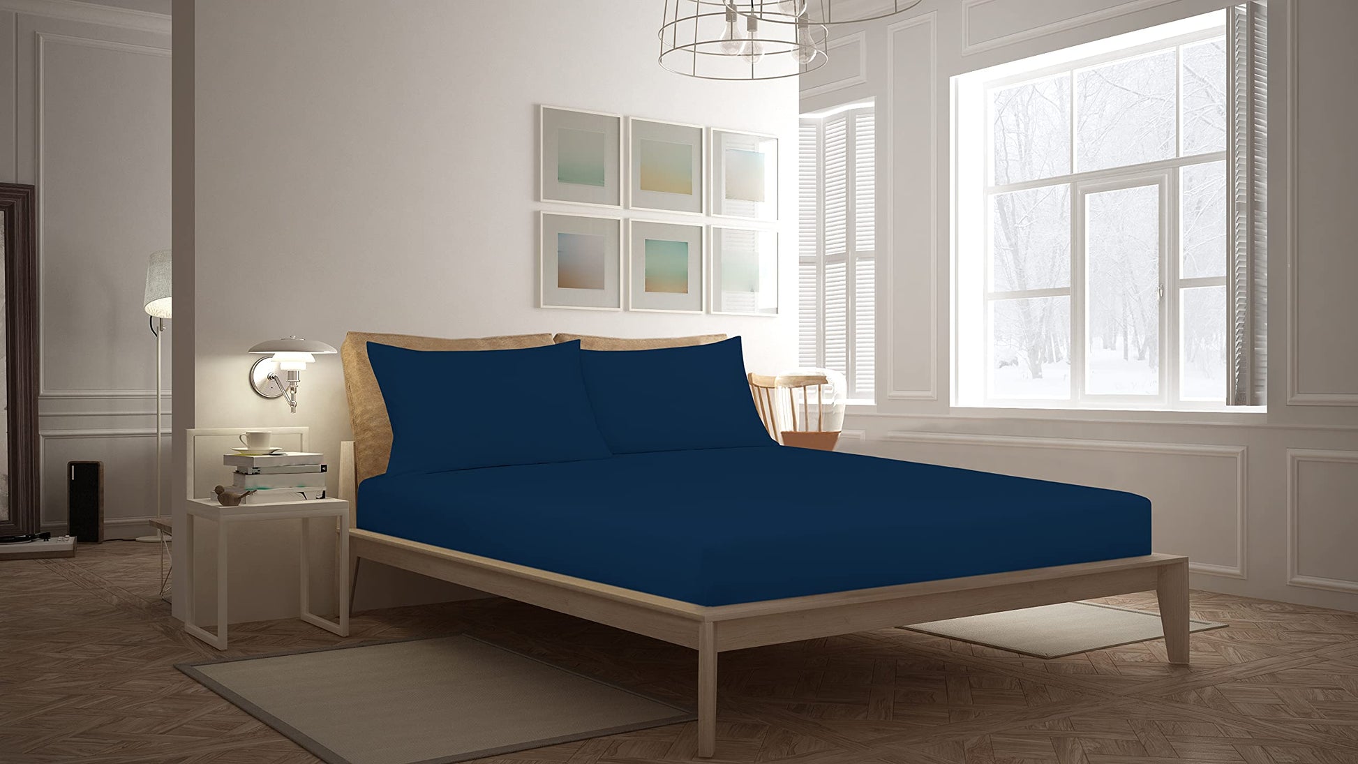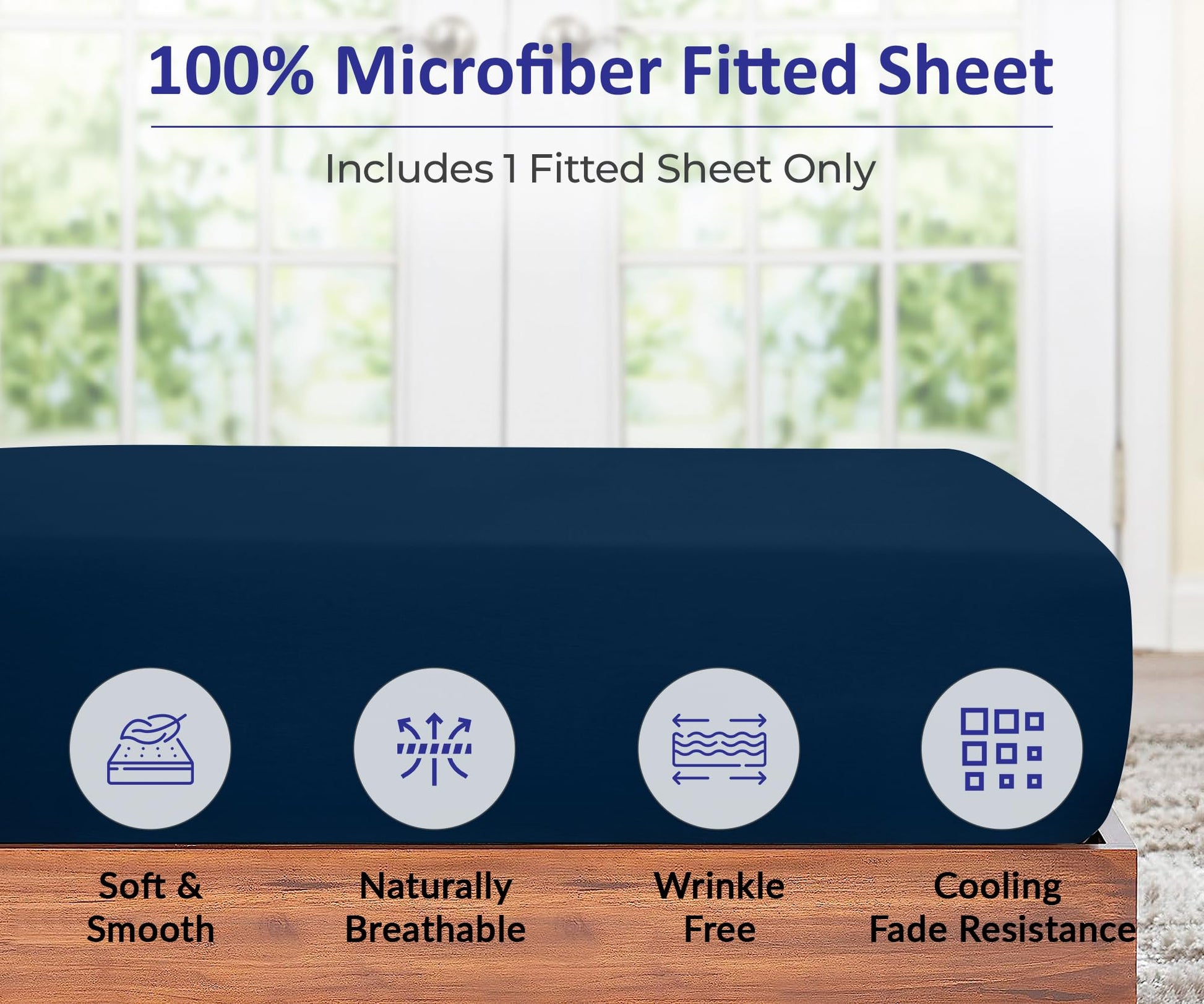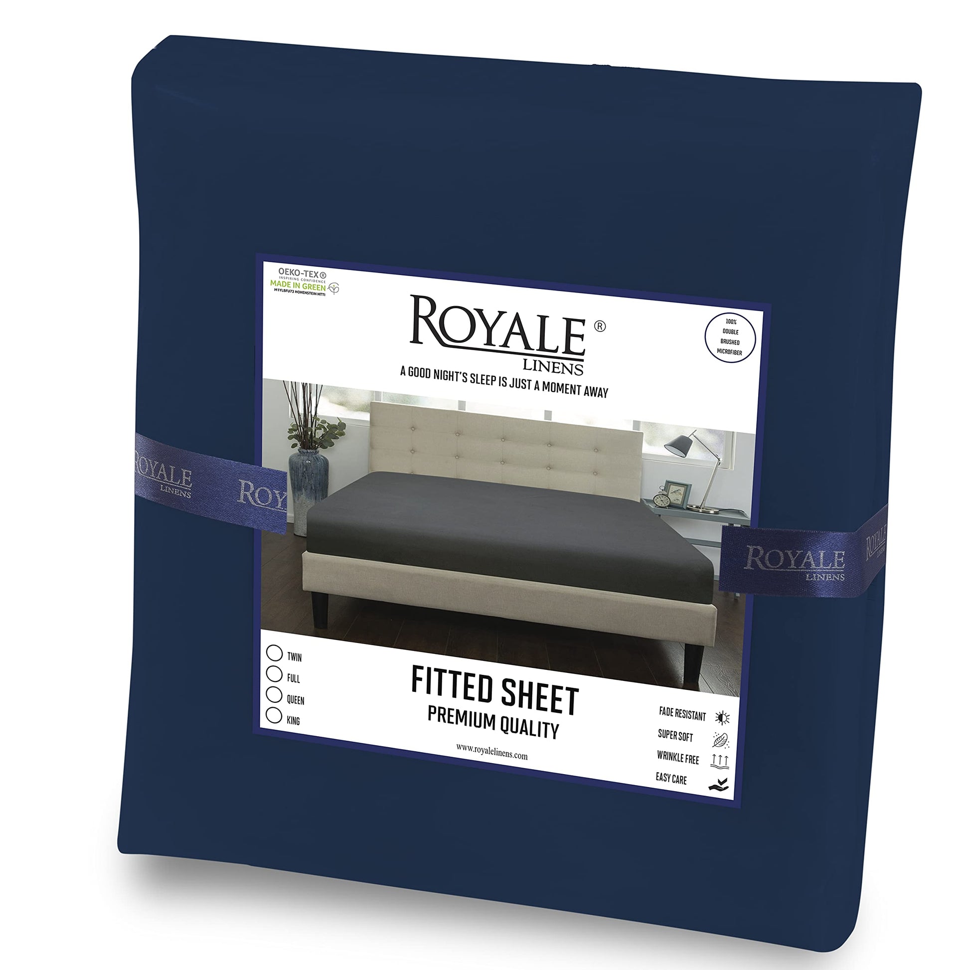 Royale Linens Fitted Sheet - Brushed Hotel Quality 1800 Ultra-Soft Wrinkle & Fade Resistant - Bottom Sheet - Deep Pocket Stretches Up to 16" - Fitted Sheet Only - Elastic Sheet ( Navy)