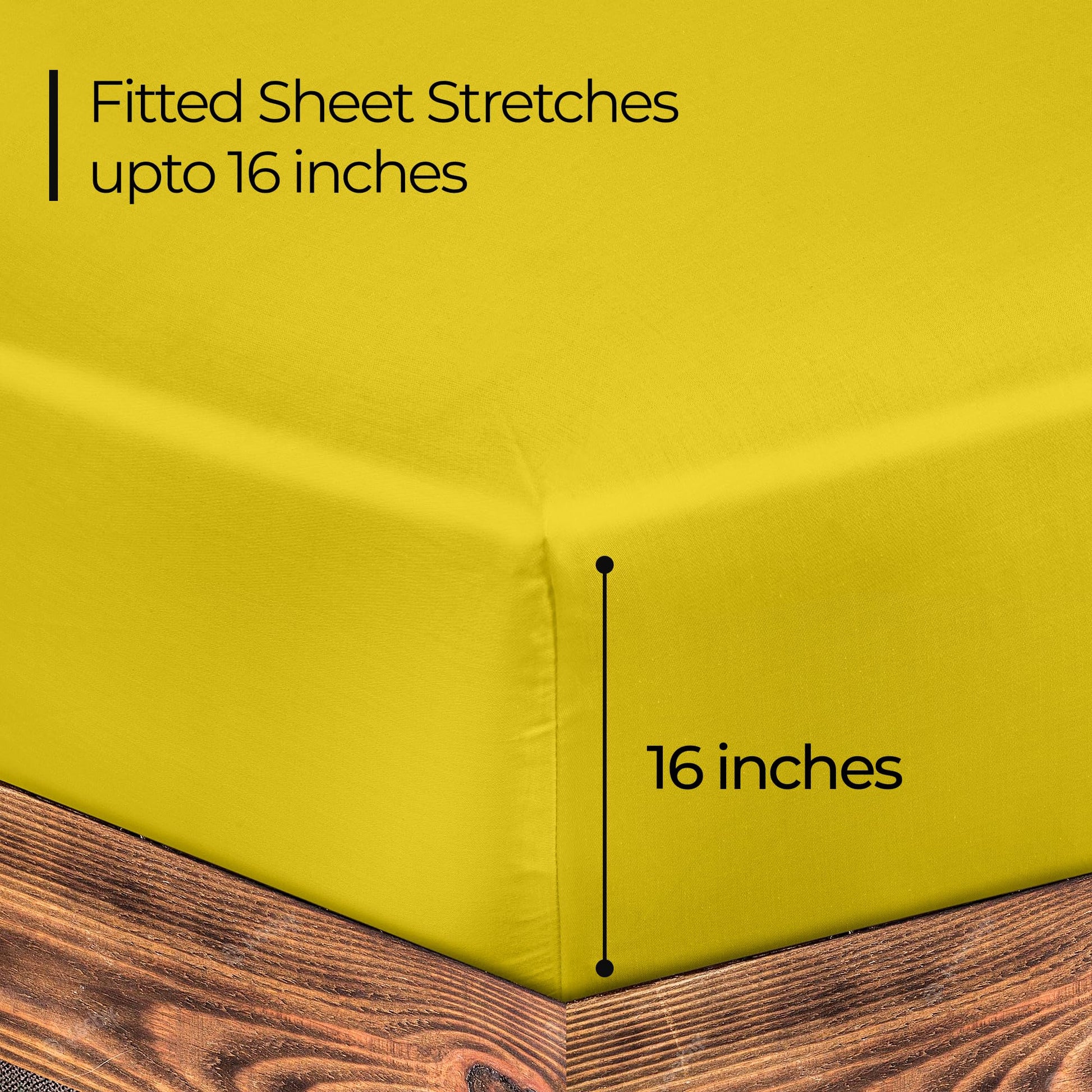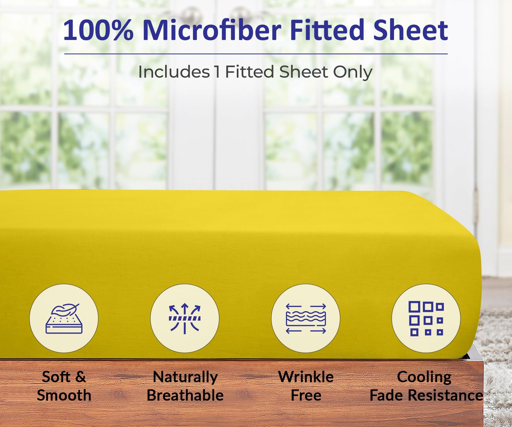 Royale Linens Fitted Sheet - Brushed Hotel Quality 1800 Soft Wrinkle & Fade Resistant - Bottom Sheet - Deep Pocket Stretches Up to 16" - Fitted Sheet Only - Elastic Sheet (Yellow)