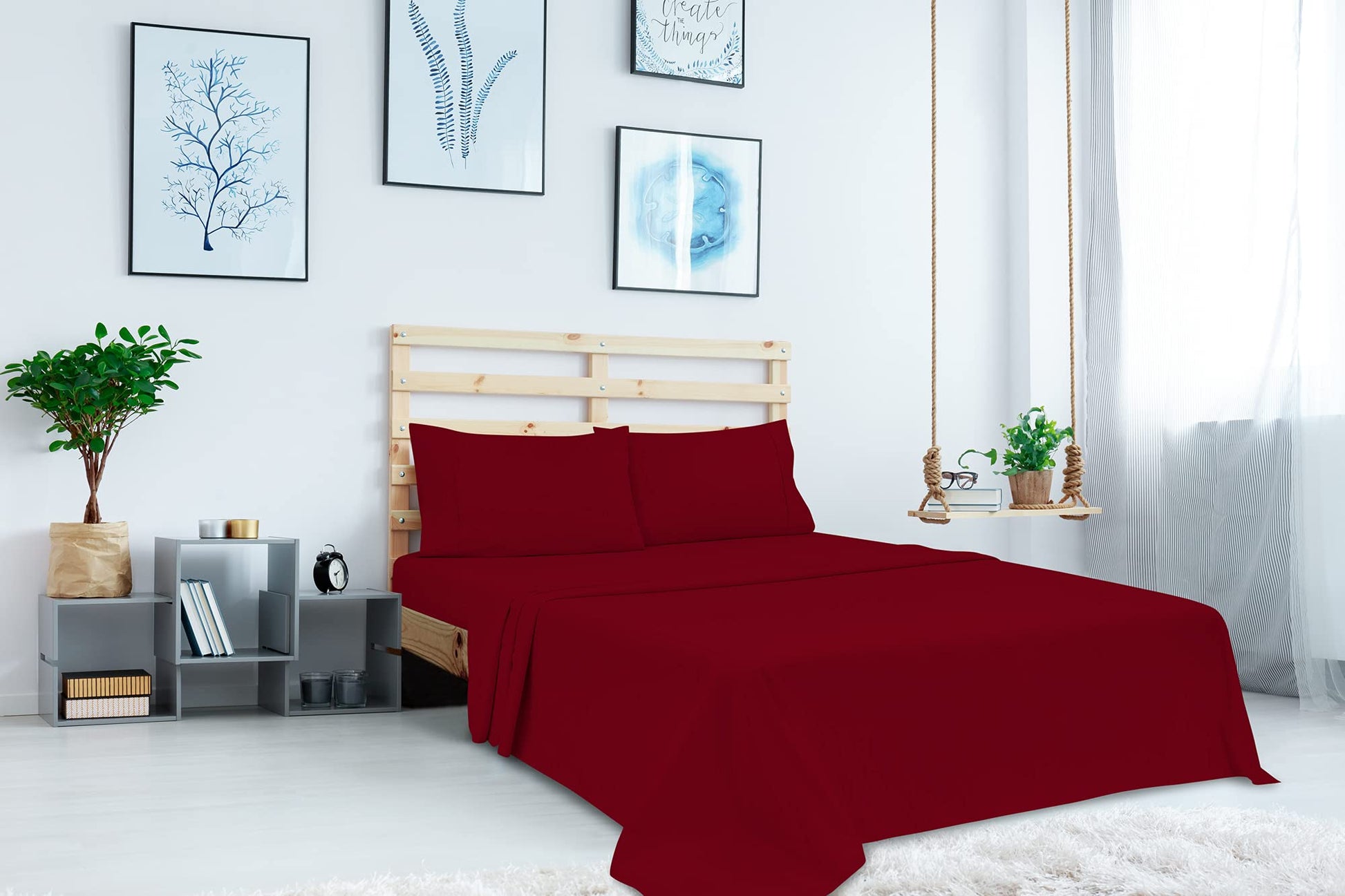 Royale Linens Flat Sheet Only - Brushed 1800 Microfiber - Ultra Soft & Breathable - Wrinkle & Stain Resistant - Hotel Quality Flat Sheet Sold Separately - Top Sheet for Bed(Burgundy)