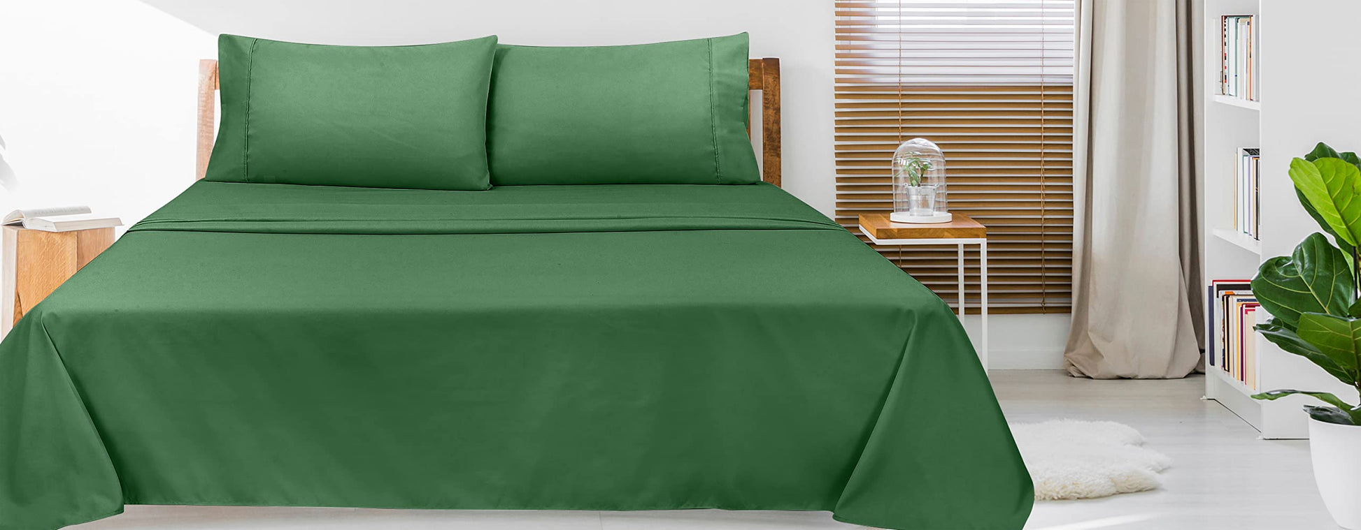 Royale Linens Flat Sheet Only - Brushed 1800 Microfiber - Ultra Soft & Breathable - Wrinkle Resistant - Hotel Quality Flat Sheet Sold Separately - Top Sheet for Bed - (Hunter Green)